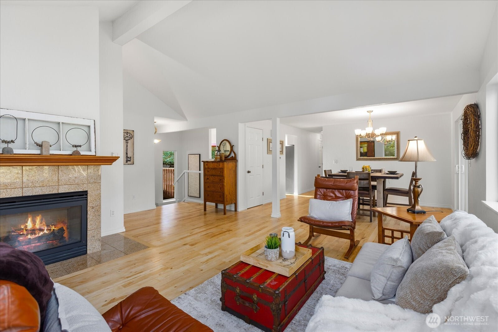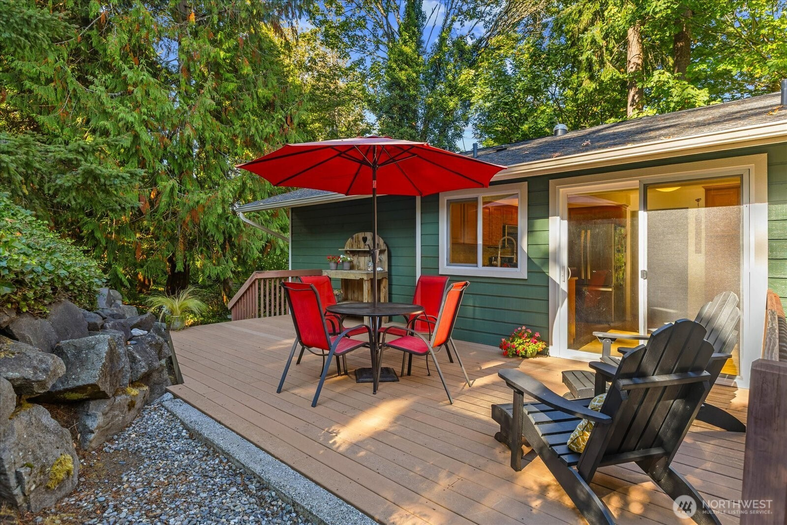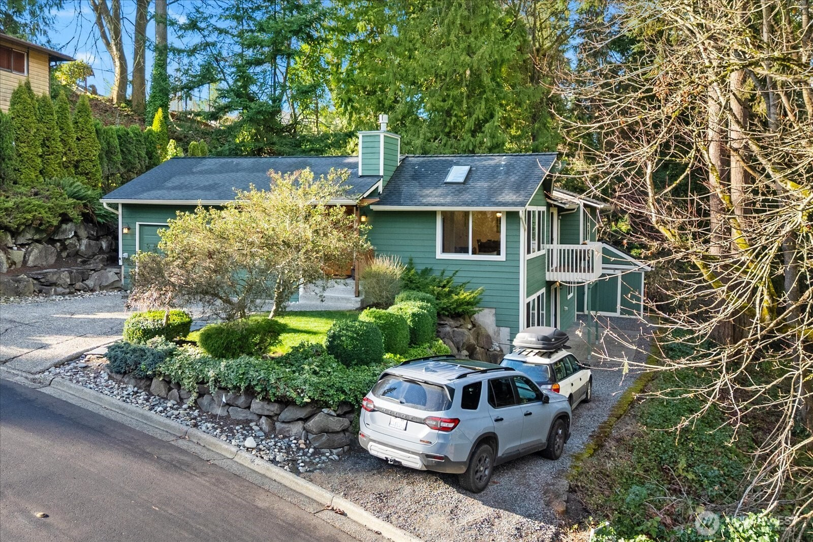 The unpretentious exterior contradicts how large this 1-story with daylight basement lives. Enter to vaulted ceilings, and refinished hardwoods that flow throughout the main level. Treehouse-like views from nearly every room and outdoor space creates a tranquil & immensely private setting. Despite the arboreal outlook, natural light is abundant within due to skylights & extra-large windows. The refreshed, eat-in kitchen connects to a sunny, west-facing deck for convenient outdoor dining. An inviting and open living & dining room layout can host a crowd, but also feels just right for quiet, cozy nights by the fire. Main floor features new paint throughout, spacious primary bedroom with ¾ ensuite bath and walk-in-closet, 2nd bdrm + full bath. The fully finished basement is well-insulated for noise from main floor and offers a distinctly separate living space with high ceilings, 3rd & 4th bdrms, ¾ bath, rec room, library/crafting nook, laundry, and no-stair access to patio and gravel parking for up to 3 vehicles. Find space for all your hobbies & toys in the 2-car garage and 10 x 12 ft shed. Outdoor adventure awaits with nearby Pine Ridge & Yost Park: community pool, tennis/pickle ball & miles of trails. 5 Minute drive to Edmonds’ eats, arts, sunsets & waterfront. Impeccably maintained home, recently painted exterior, low maintenance yard & conveniences like covered gutters allow you more time to relax or play at home or away. {Home inspection & sewer scope reports available.}