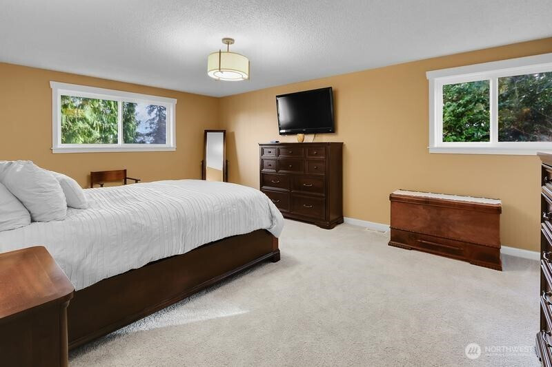 Welcome to this beautiful two-story home in Canyon Park on a spacious 10,019 sq ft lot, offering a thoughtful layout and inviting spaces throughout. A covered front porch welcomes you inside, where the formal living & dining rooms provide flexible areas for hosting, relaxing and everyday use. The bright kitchen includes a built-in eating space, generous cabinetry and a convenient pass through for entertaining. French doors from the dining room flow to the covered back deck w/ exposed beams, extending the living space for year-round enjoyment. The main level also features a huge family room w/ built-in office nook, vaulted ceilings & walls of windows. Upstairs, the large primary bedroom includes a 3/4 bath, walk -in closet & three additional bedrooms, all w/ new carpet. The fully fenced backyard is designed for versatility, with garden beds ready for planting, a large outdoor storage shed, a treehouse and a lighted sports court. Wide-open lawn space accommodates outdoor time and recreation. Mature landscaping surrounds the property, creating a natural backdrop and multiple areas to enjoy. The front deck offers Cascade Mountain views, adding another inviting outdoor spot to unwind. A spacious two-car garage provides additional storage and parking options. Located in the Northshore School District with close proximity to parks, shopping, dining and major commuting routes including I-405 and Hwy 527. Pre-inspected for buyer confidence and ready for it's next chapter!