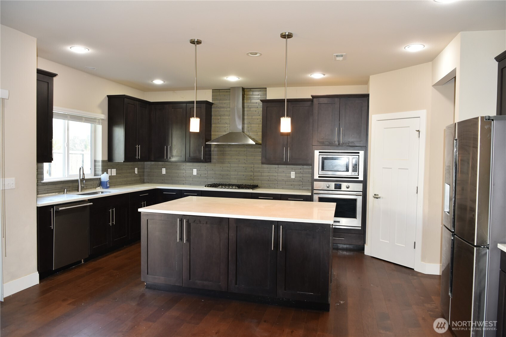 Come live in this dream home, tucked away in a quiet cul-de-sac, featuring 4 spacious bedrooms, a dedicated home office, and 3 full bathrooms. Beautifully appointed features throughout the home including Gourmet kitchen w/island, extensive hardwood floors and upscale cabinets. Extra finish touches like under cabinet lighting and glass tile back splash up to ceiling over canopy hood. built in appliances with 5 burner gas cook top. Guest suite on main living area & Floor to ceiling tiled modern fireplace. Decorated model to see the included features. Two of the bedrooms, balcony and hallway offer breathtaking Olympic mountain view, while the rest of the home is filled with abundant natural light throughout the day. Enjoy a generous backyard, an inviting living/family room, and a serene balcony perfect for relaxing or entertaining. The primary suite boasts a large walk-in closet and a private en-suite bathroom for added comfort. Built in 2017, the home is in excellent condition and move-in ready. The attached two-car garage includes a dedicated storage area for added convenience. Located in a peaceful, friendly neighborhood with nearby parks, playgrounds, and access to top-rated schools. A wonderful neighborhood overall as well as with great parks, play areas and top schools - Ruby Bridges Elementary, Skyview Middle and North Creek Senior High.