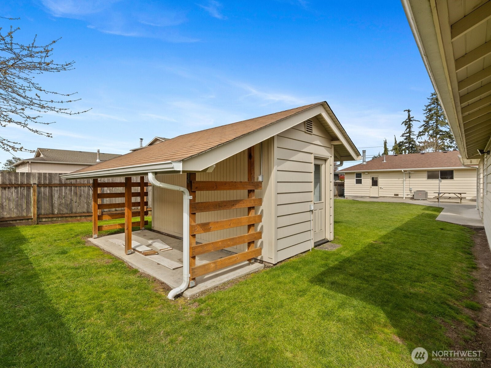 Rare opportunity in Edmonds! Situated on a double lot totaling 22,466 SF, this property offers incredible potential to build a second home or DADU. The home features 3 bedrooms and 2 3/4 baths, with Andersen sliding patio doors in the main living area and bonus room that fill the space with natural light and open to a deck and concrete patio—ideal for indoor/outdoor living. Exceptional shop and garage space! The fully finished, heated 3-car detached garage includes separate 200 amp service, 4-220V outlets, multiple 110V outlets, ventilation fan, compressed air plumbing, skylights, attic storage, and shop sink. The attached garage offers updated electrical (2017), multiple 220V/110V outlets, washer/dryer hookups, attic storage, and fiber optic readiness. Ample gated parking with room for RV and boat parking adds versatility. Additional features include a powered garden shed and a fully fenced setting with black metal fencing and dual gated entries, plumbed for electricity. Minutes to downtown Edmonds and the waterfront—shops, dining, parks, and beaches nearby.