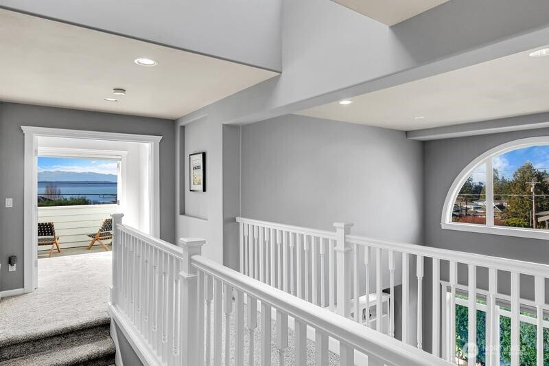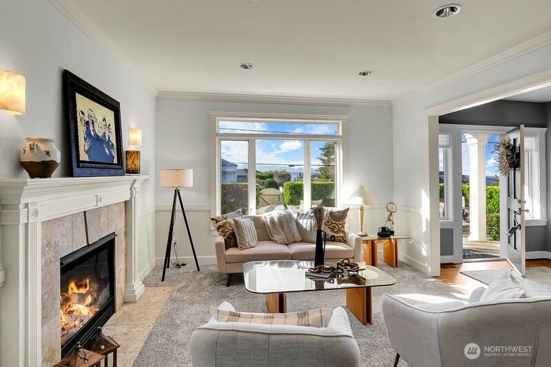 (503) 893-8874Edmonds Bowl West-facing 4-bed view home perched for privacy & sweeping sunset views. Blending timeless charm w/ modern livability. Thoughtful millwork, hardwoods & airy spaces w/ effortless flow. Soaring ceilings, walls of windows & built-in media center. Chef’s kitchen w/ large quartz island, SS appl & French doors to outdoor entertaining. Custom wine nook w/ quartz serving station. Formal dining & living w/ tray ceilings & gas fireplace. Multiple patios, firepit, lush mature landscaping & fully fenced yard. Luxe primary suite w/ Olympics, Whidbey & Sound views + spa-inspired 5-pc bath. All baths updated. $10k Smart Hunter Douglas blinds. Detached 2-car garage & ample parking. Walkable location near shops, dining, waterfront & ferry.