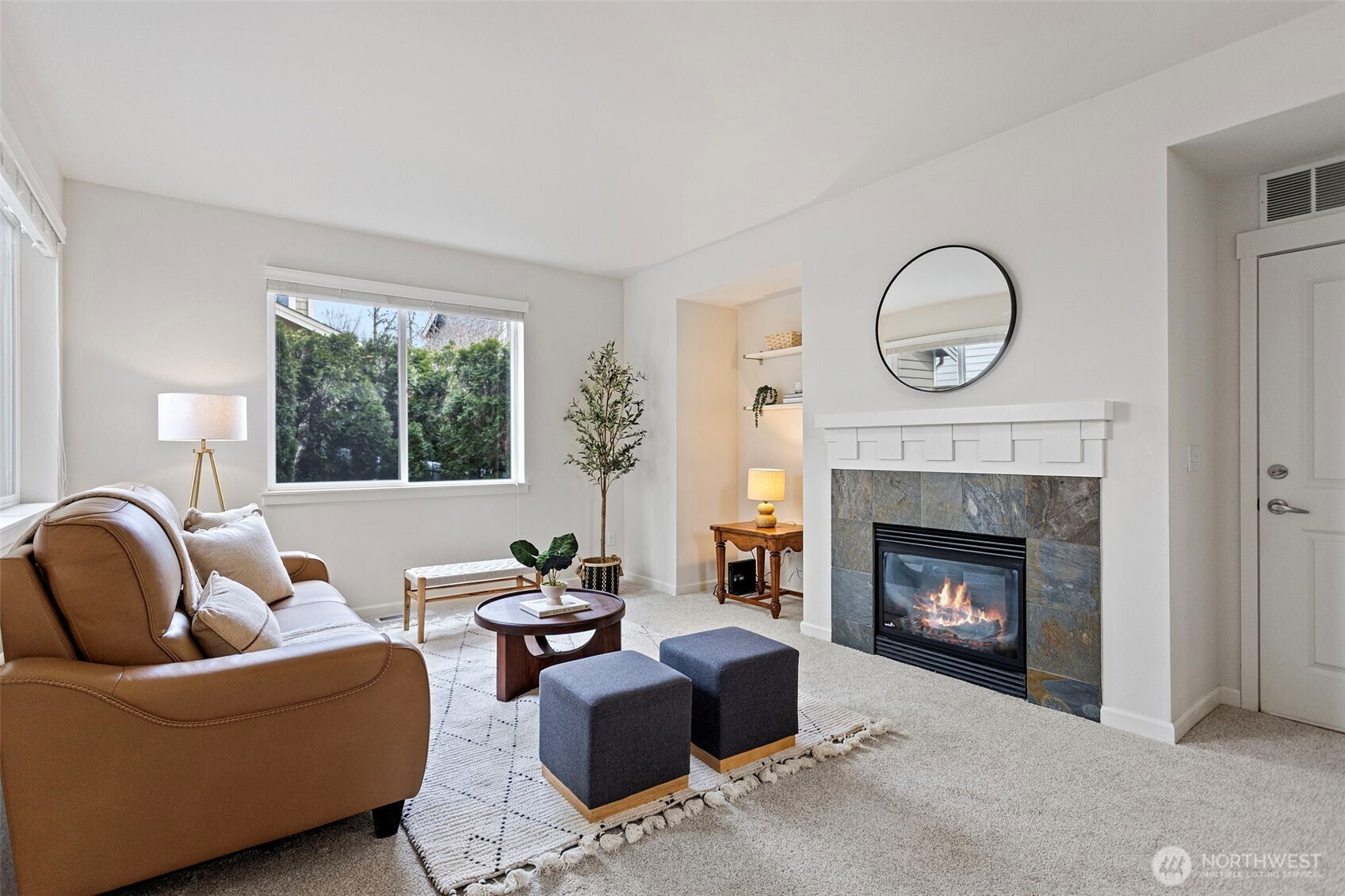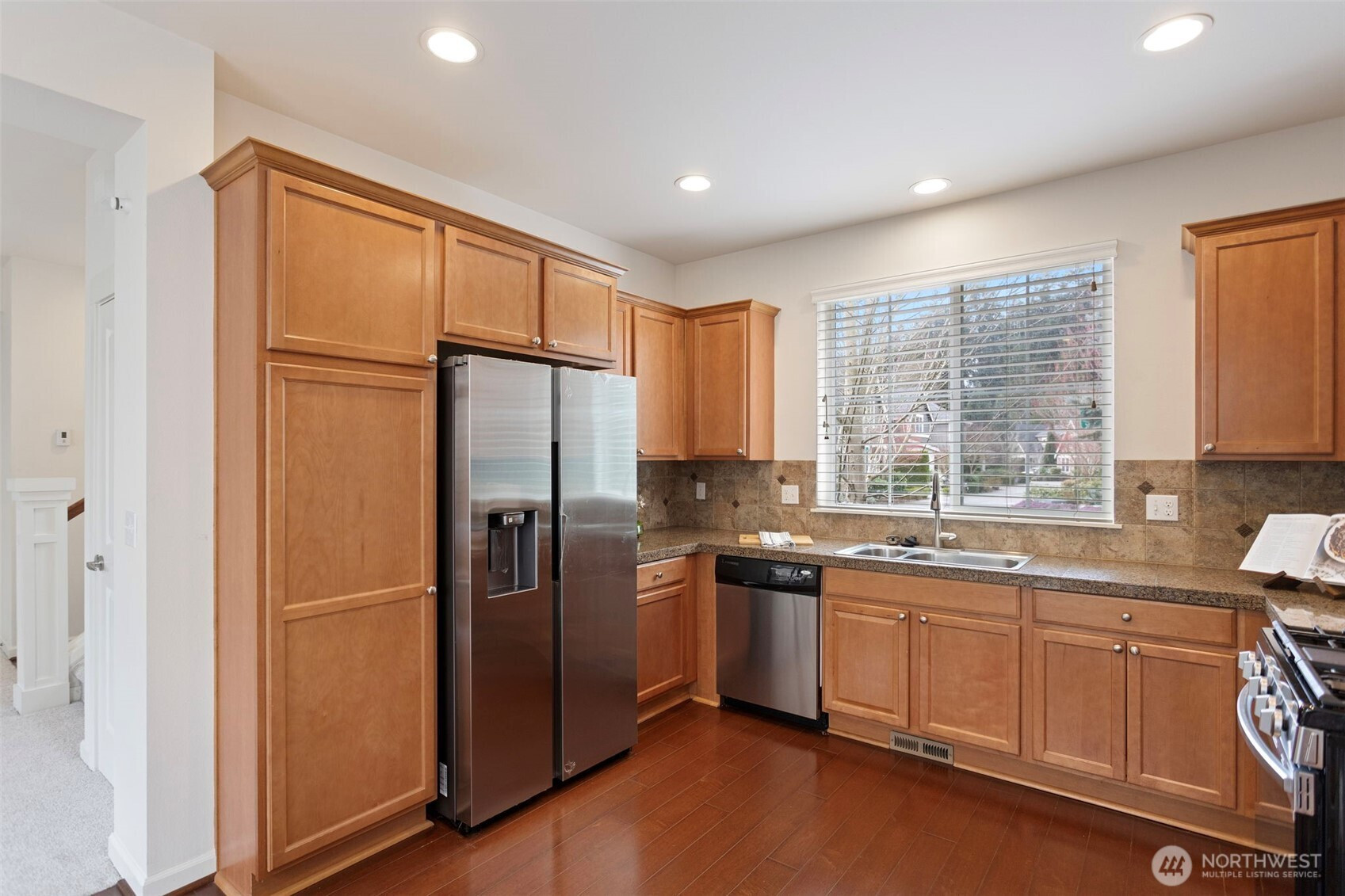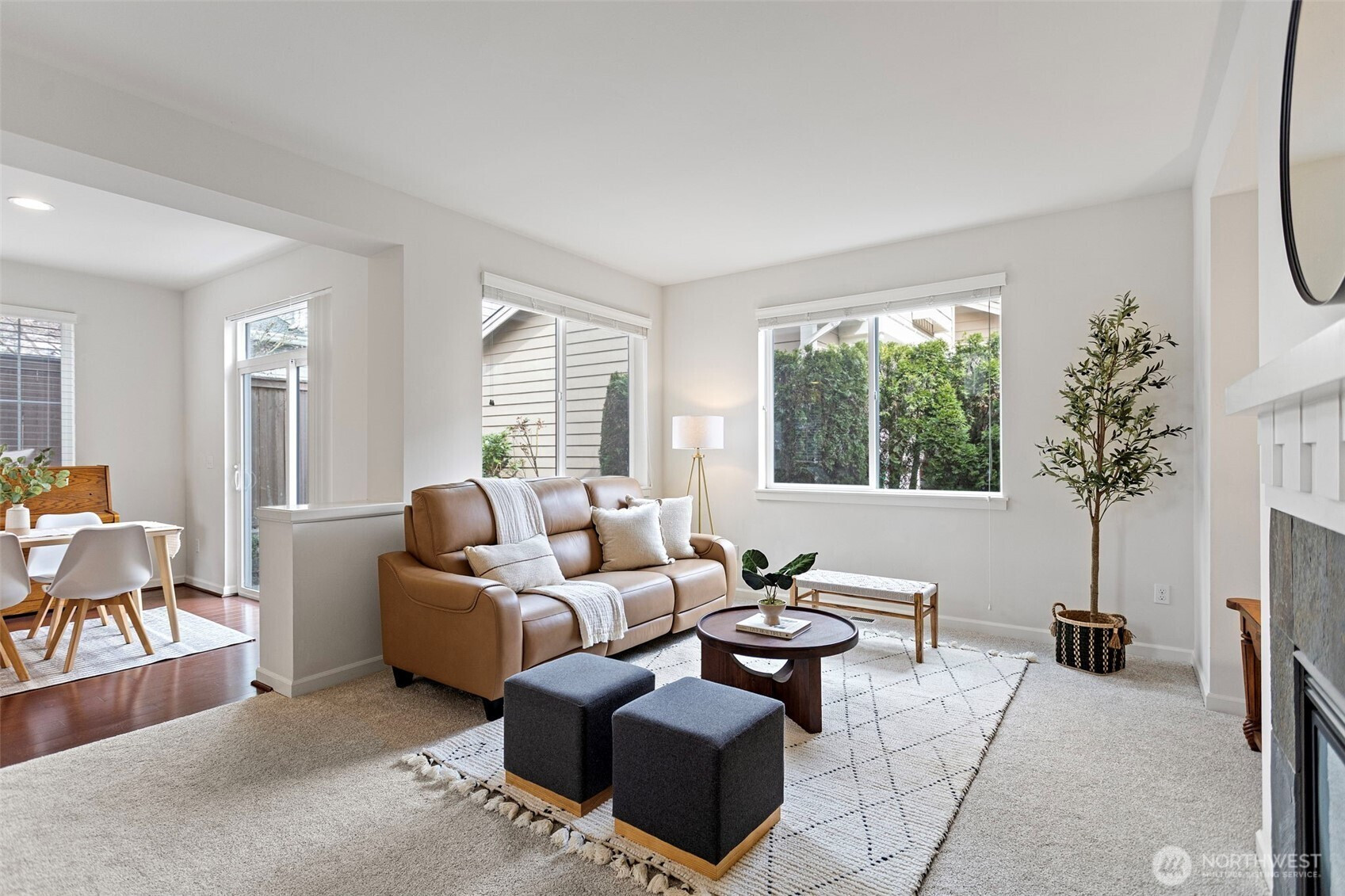 Welcome to this move-in ready, well-maintained home in the desirable Kimura Gardens community of Bothell, located within the highly sought-after Northshore School District. Brand-new carpet throughout adds a fresh touch, while the home offers a bright and comfortable layout filled with abundant natural light and a thoughtfully designed floor plan for everyday living.The main floor features a spacious living and dining area with a cozy gas fireplace, creating a welcoming space for relaxing or entertaining. The kitchen includes stainless steel appliances, a gas range, and ample cabinet storage, with convenient access to the private patio and yard.Upstairs, the spacious primary suite offers a 5-piece bath and walk-in closet. Two additional bedrooms—each with their own walk-in closet—provide great storage and flexibility. A full bathroom and convenient upstairs laundry area complete the upper level. Washer, dryer, and refrigerator are all less than one year old, adding extra value and convenience.Additional highlights include A/C, a 2-car garage, and a desirable corner lot location. The Kimura Gardens community features parks, walking trails, and play areas, and is conveniently located near Canyon Park shopping, I-405, and vibrant downtown Bothell.