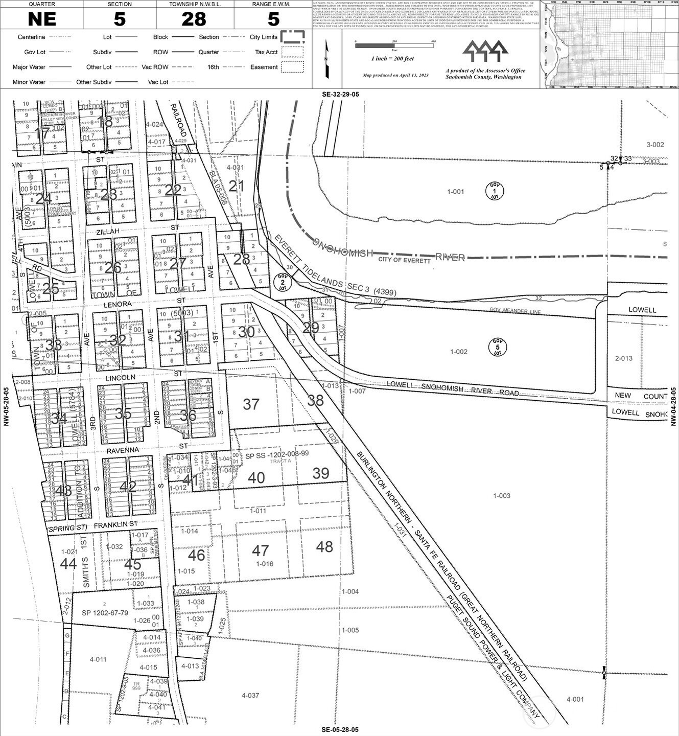 Envision your next project on this rare 1.77-acre plat in desirable Lowell, Everett—two tax parcels (28050500102100 & 28050500103200) with R-1 single-family zoning and big-picture potential. Perched above the Snohomish River valley, this wooded hillside setting offers sweeping river, valley, and Cascade views with room to design modern homes, duplexes (per code allowances), or clustered cottage-style residences that step with the terrain (buyer to verify). The sloped topography adds character and lends itself to terraced yards, daylight basements, and multi-level floorplans that capture light and vistas from every angle. Utilities are nearby with water and sewer available in the area—bring your civil engineer, architect, and imagination to unlock the full potential of this unique infill opportunity (buyer to verify all utilities, access, and buildability with the City of Everett). Surrounded by green space yet close to Everett, I-5, and regional job centers, this is a compelling canvas for a builder, small developer, or custom home vision in one of Everett’s most historic neighborhoods