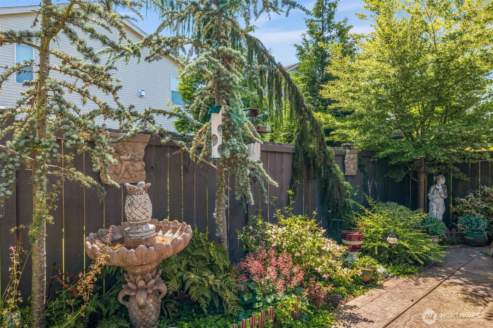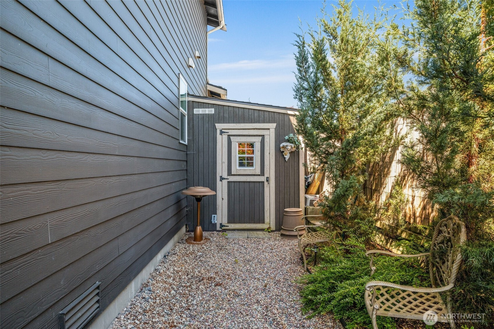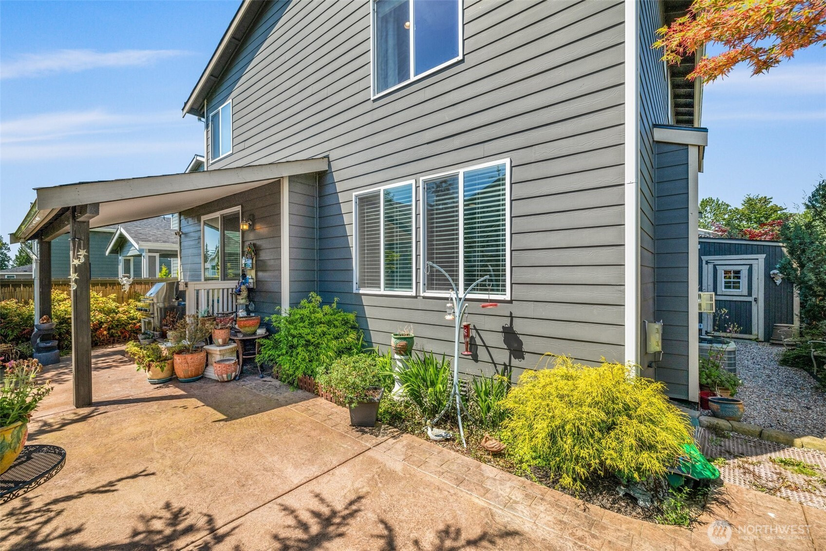 Stunning 5 bed/2.75 former model home situated on a spacious fenced private corner lot featuring a lush garden sanctuary, covered custom patio, Viking gas bbq, landscape lighting & in-ground sprinklers. An elegantly designed light-filled main floor featuring an inviting great room plan w/hardwoods, chefs kitchen, custom walk-in pantry, & large island opening to the great room w/gas fireplace & adjacent dining area, ¾ guest bath & a versatile bedroom w/French doors & custom closet. Upstairs boasts a spacious master suite w/vaulted ceilings & luxurious bathroom w/custom walk-in closet, an additional full bath & 3 bedrooms & large laundry room w/custom cabinetry. Custom built outdoor shed w/electricity & too many other features to list here.