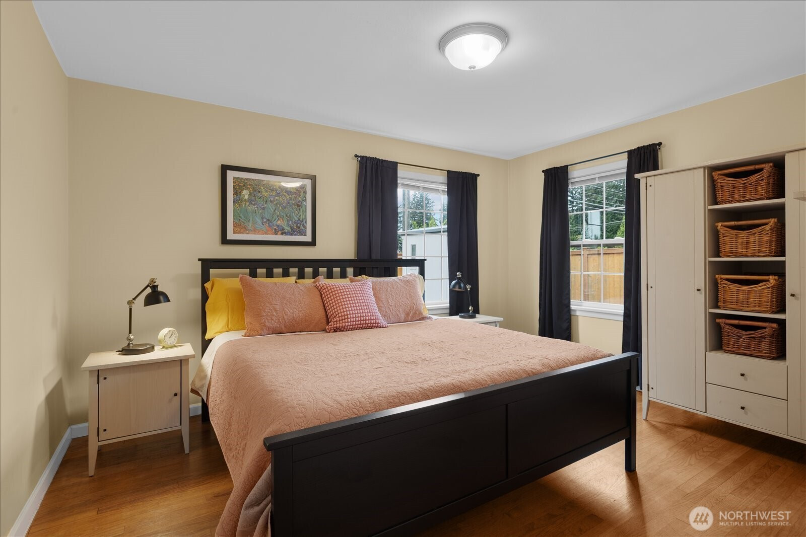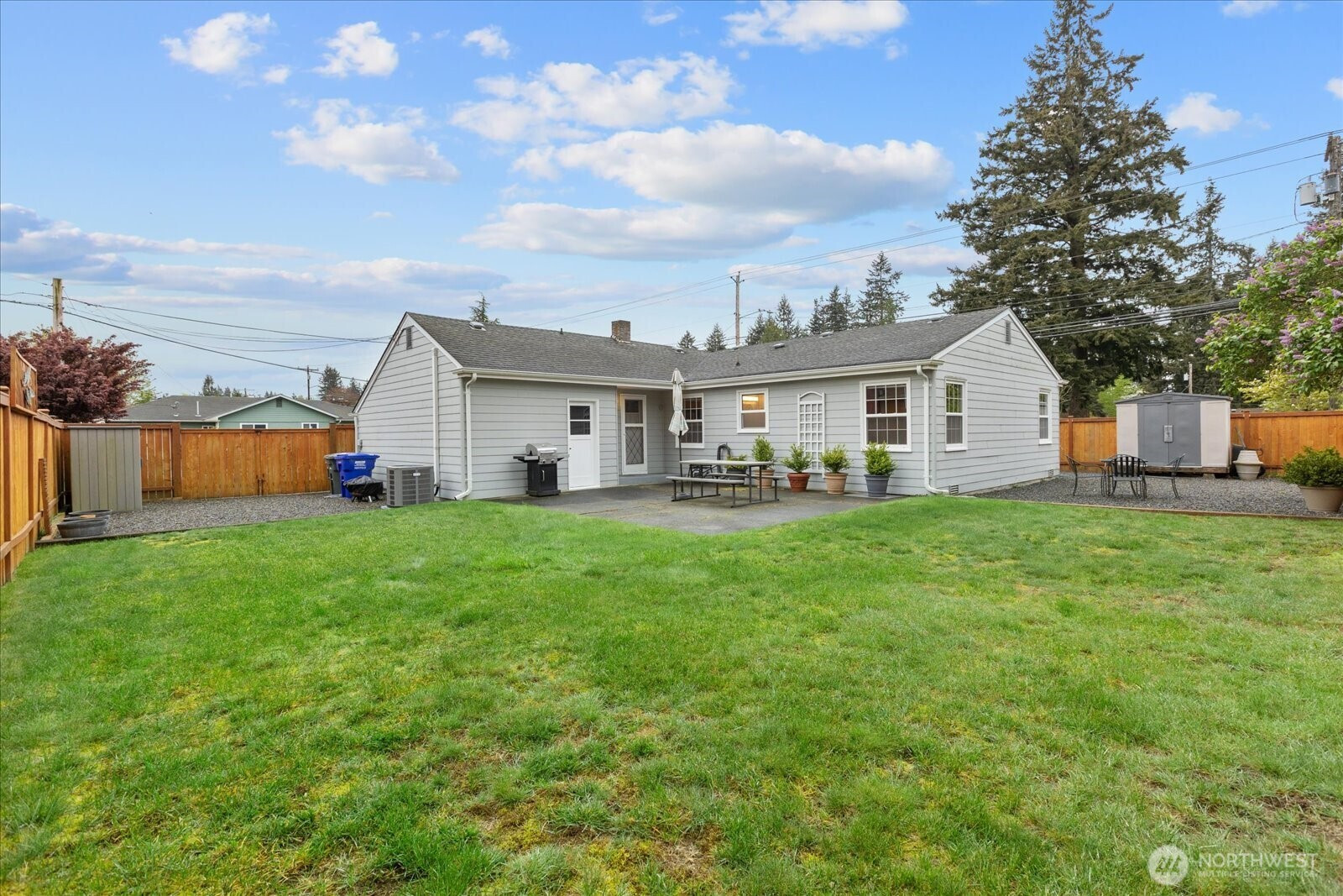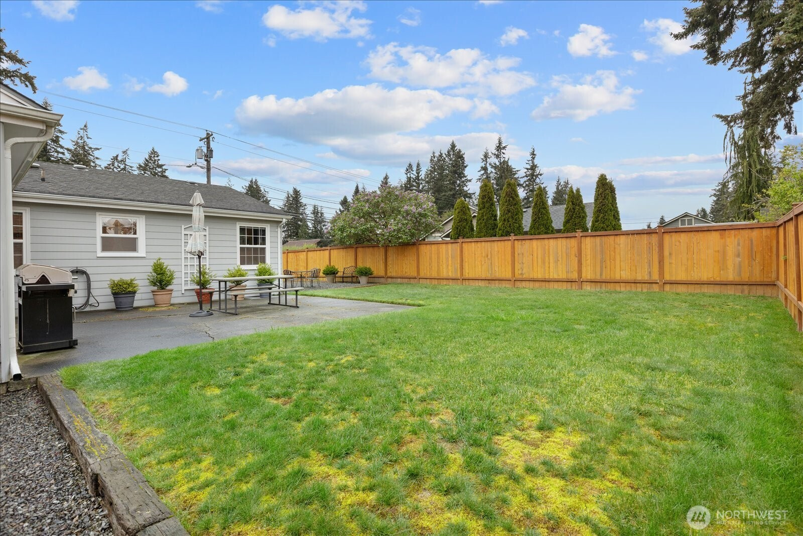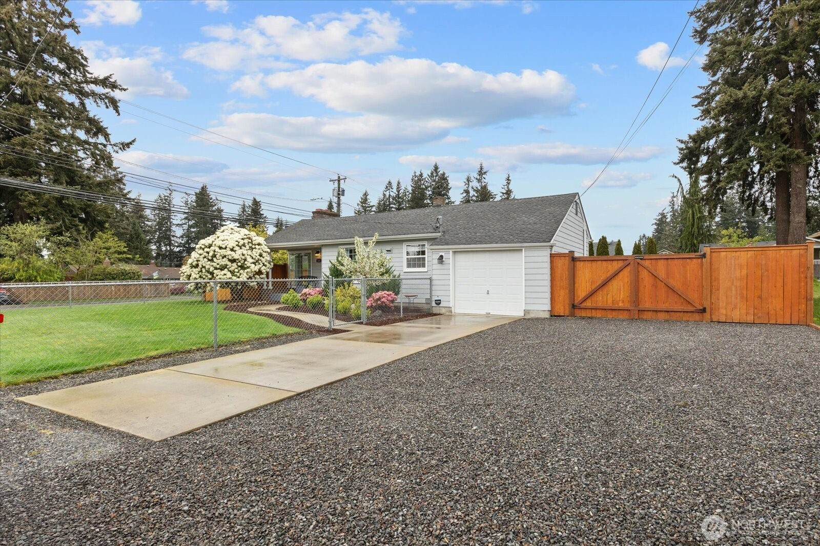 Lovely 3 bedroom, 1 bath rambler in a convenient location just minutes to Boeing—ideal for easy commuting and everyday living. This move-in ready home has been lovingly cared for by the current owners for 30 years keeping it in pristine condition. It features beautiful hardwood floors, adding warmth and character throughout, along with ample storage to keep everything organized. Enjoy the flexibility of RV or boat parking with an oversized gate, plus a fully fenced yard offering privacy and space to relax, garden, or entertain. Recent updates this year include new Levelor blinds and fresh front yard landscaping, creating a clean, welcoming first impression. Over the last 5 years, thoughtful improvements include a new matching Maytag washer and dryer, a new 6-ft wooden fence fully enclosing the backyard, a new chainlink fence enclosing the front yard, and a new driveway and front walkway. Within the last 8 years, a forced air heating and cooling heat pump with updated ductwork has been installed for year-round comfort. Comfortable, functional, and well-maintained—this home offers great value in a location that keeps you close to everything.