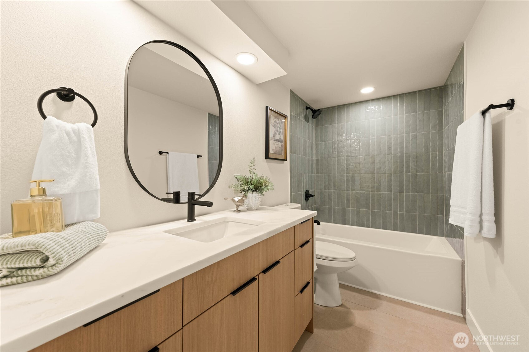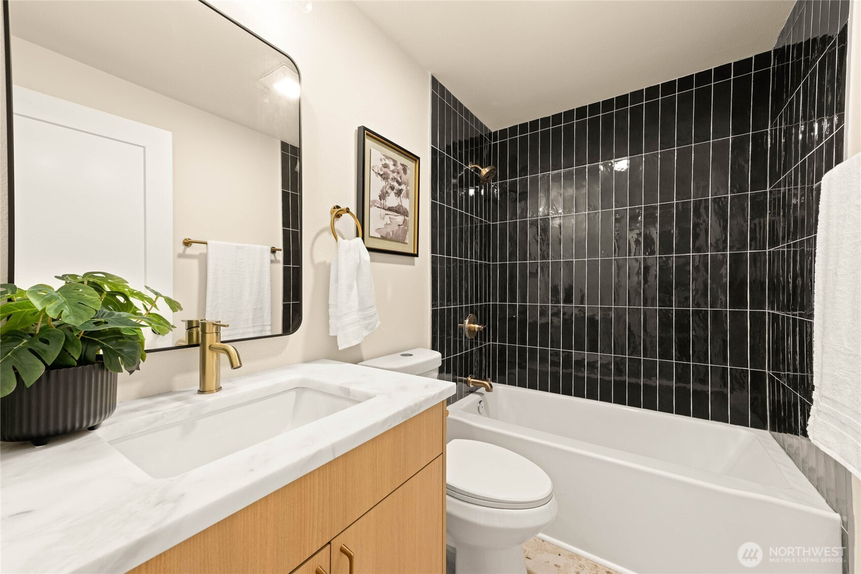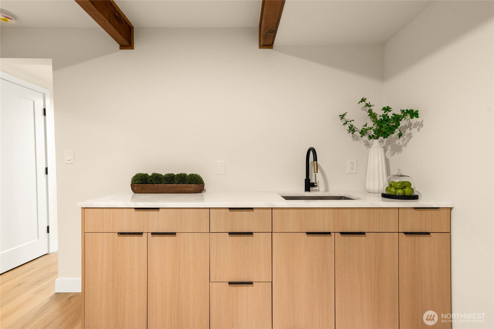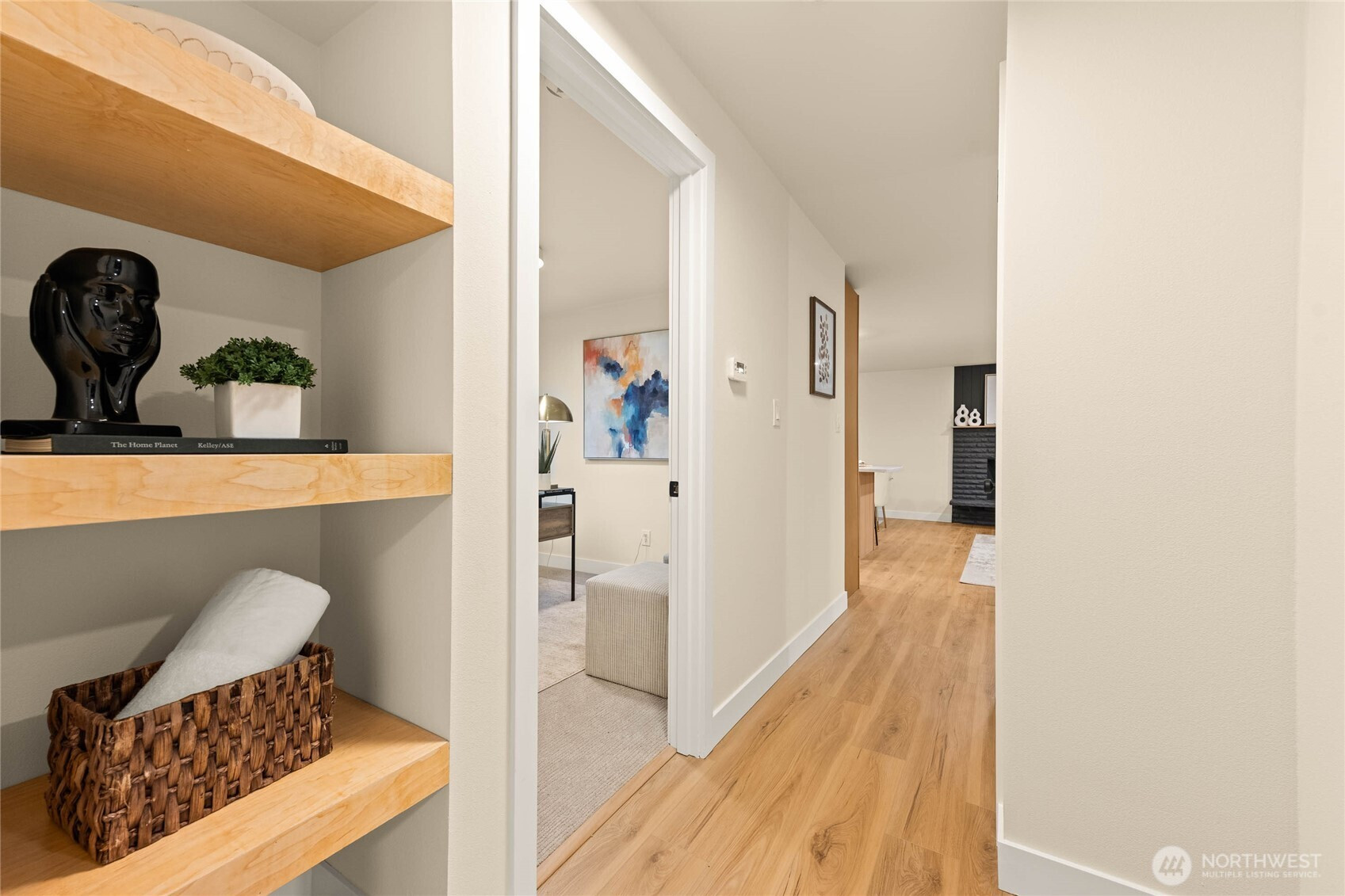 A thoughtfully remodeled home, with an organic modern aesthetic- this nearly 2,000 sq ft residence lives generously with well-balanced spaces and intentional design. The primary suite features an expansive walk-in closet and a beautifully finished ensuite w/ full tile, dual sinks, and an oversized walk-in shower. The lower level showcases the original brick fireplace, adding a subtle mid-century modern feel, paired with exposed wood beams and a custom dry bar with mini fridge & cabinetry—ideal for entertaining. Outdoor living is equally inviting, with a large deck overlooking an 8,276 sq ft lot, offering ample space for year-round enjoyment. RV parking, extensive driveway parking, & extra-deep attached one-car garage. A truly turnkey home!