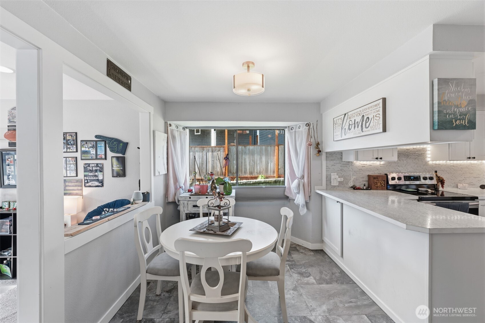 Beautifully updated rambler set on a spacious quarter-acre lot in a prime location! This light-filled home features large windows and an elegant glass entry, creating a warm and inviting first impression. The kitchen is equipped with stainless steel appliances, a stylish mosaic backsplash, and functional layout ideal for everyday living and entertaining.Thoughtful upgrades throughout include solid wood shaker doors, detailed millwork, and generous walk-in closets. A durable tile roof enhances curb appeal while offering long-term value, and a new water heater (Aug 2025) adds peace of mind. Stay comfortable year-round with A/C mini-splits heat pump. Step outside to a private backyard patio perfect for relaxing or hosting, plus a versatile sport court area with space for RV or additional parking. No HOA—enjoy flexibility and freedom in how you use your property.