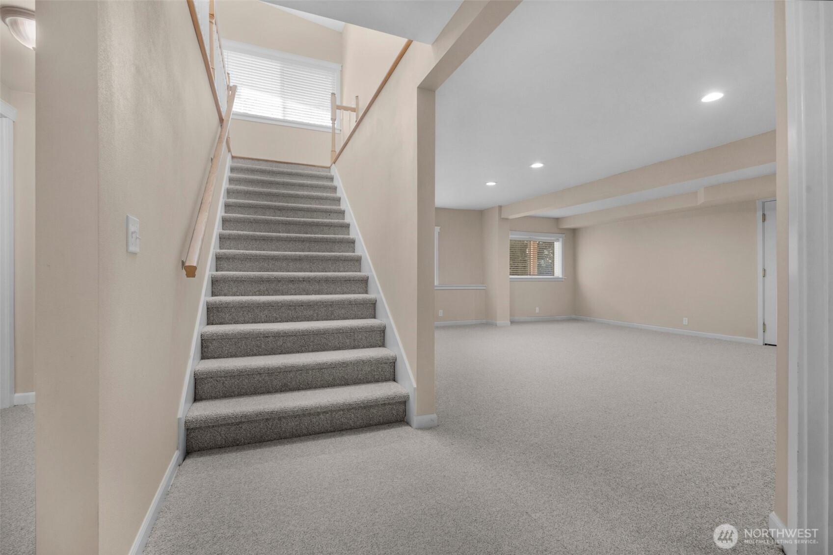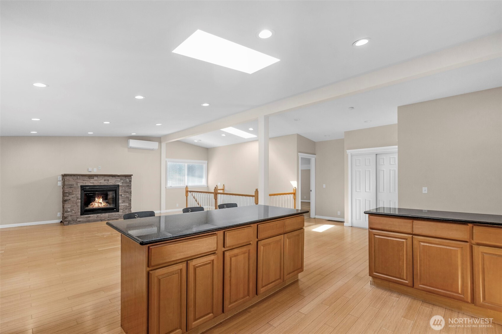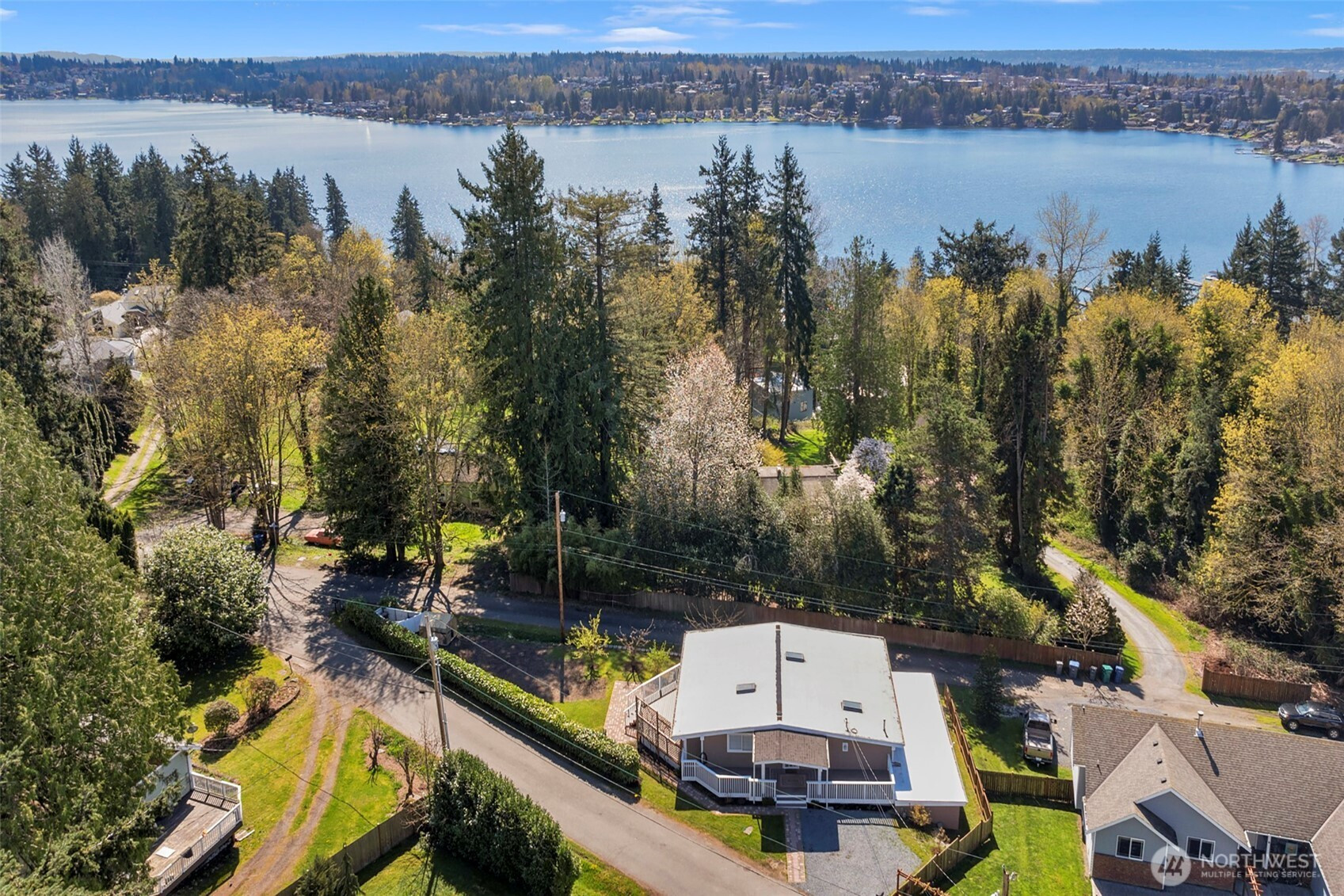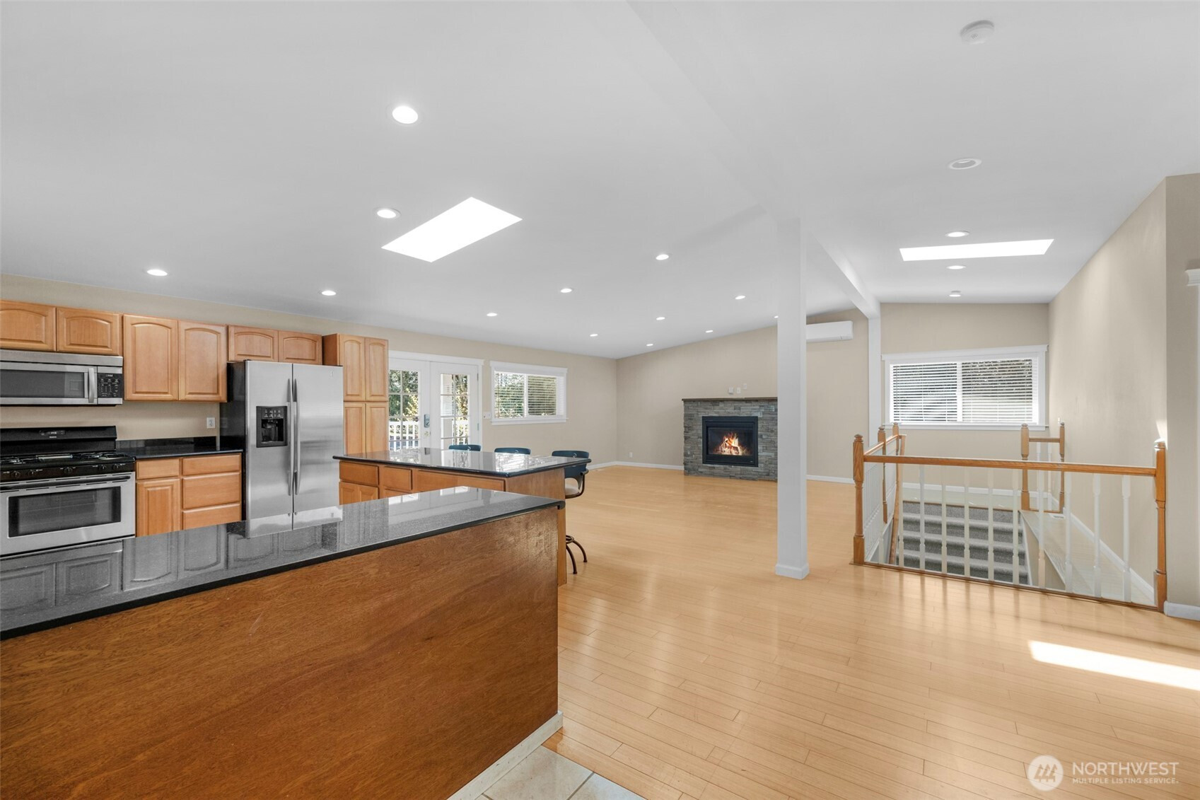 Mid-Century Modern gem in the heart of Lake Stevens beautifully refreshed and thoughtfully upgraded. This 4-bedroom home blends timeless character with modern comfort. A light-filled, open floor plan flows into a well-appointed kitchen with granite countertops, maple cabinetry, and a large island with eating bar—ideal for everyday living and entertaining. The main-floor primary suite offers a custom bath with walk-in shower and jetted soaking tub. The lower level provides a spacious rec room and potential for a second kitchen with level entry—perfect for multi-generational living or guests. Enjoy expansive wraparound Trex decking with new railings and extra-large eaves, creating covered outdoor living space ideal for year-round enjoyment. Outside, a fertile garden space, greenhouse, cherry trees, Italian plum tree, grapevines, and blueberry bushes create a private gardeners’ retreat. Additional features include a natural gas fireplace, tankless water heater, and ductless mini-split system. Tandem two-car garage. Quiet setting on a non-through street, just minutes from Lundeen Park , Downtown Lake Stevens, and Lake Stevens High School. This is a move-in-ready home offering space, flexibility, and location.