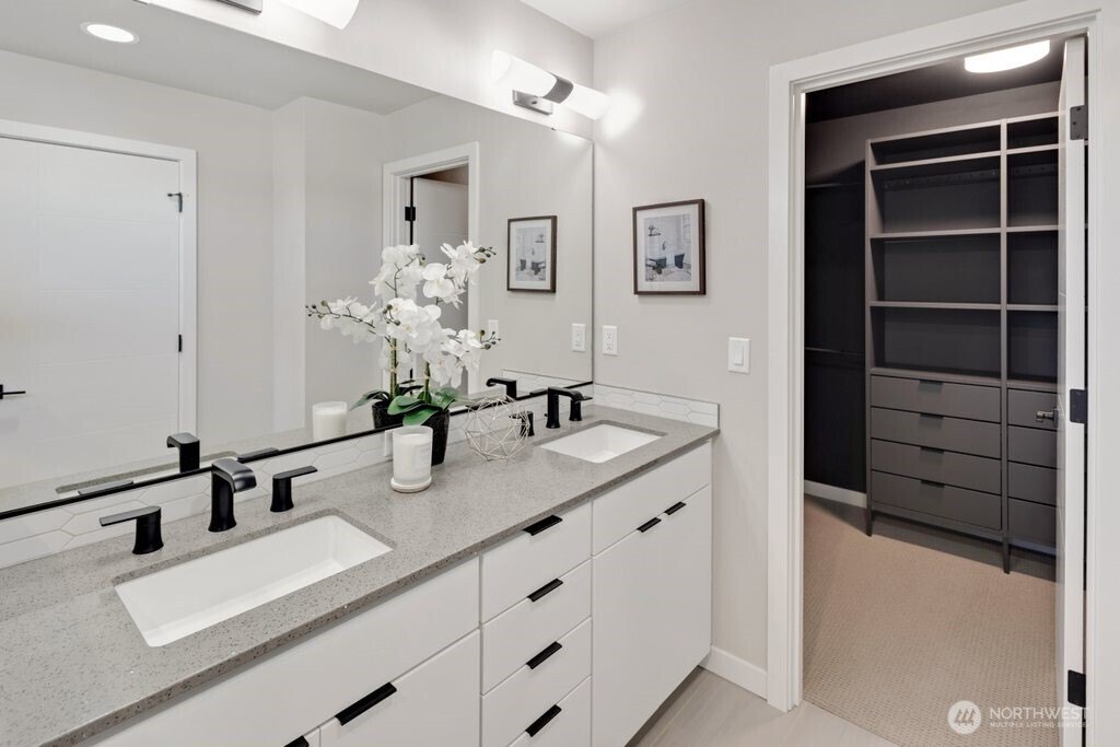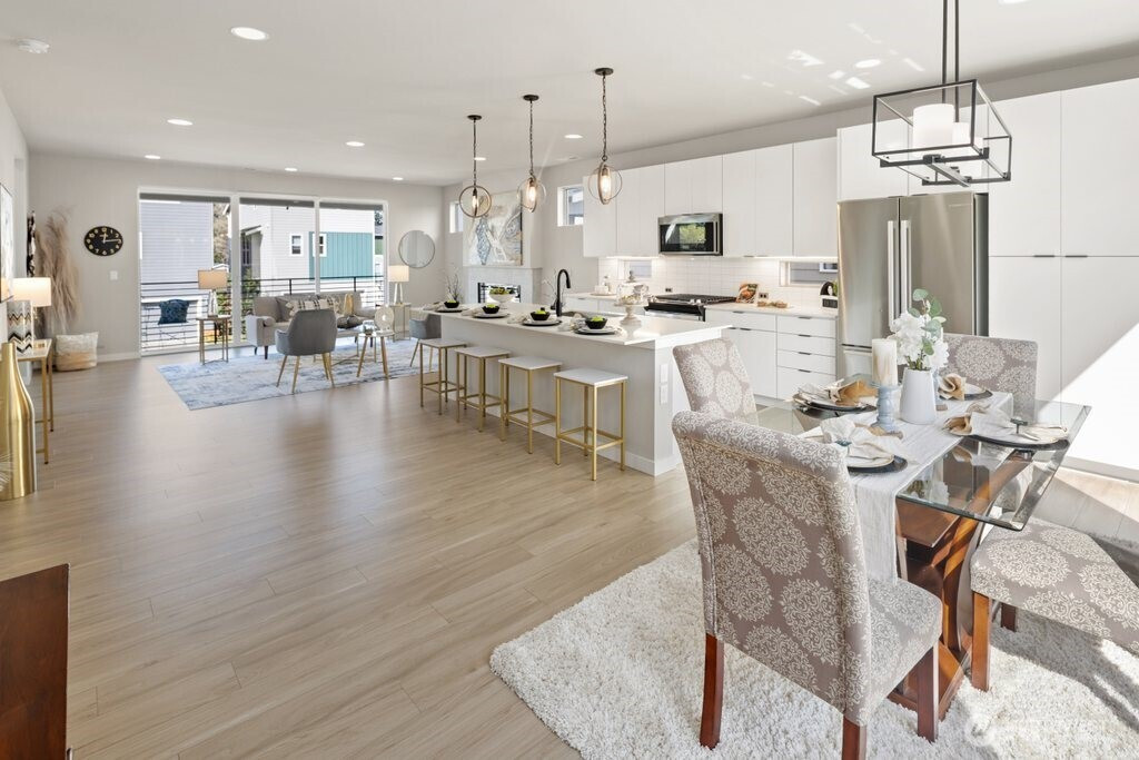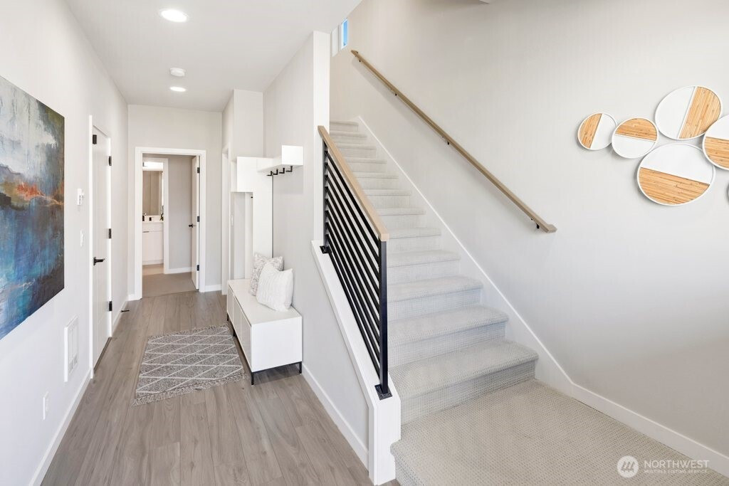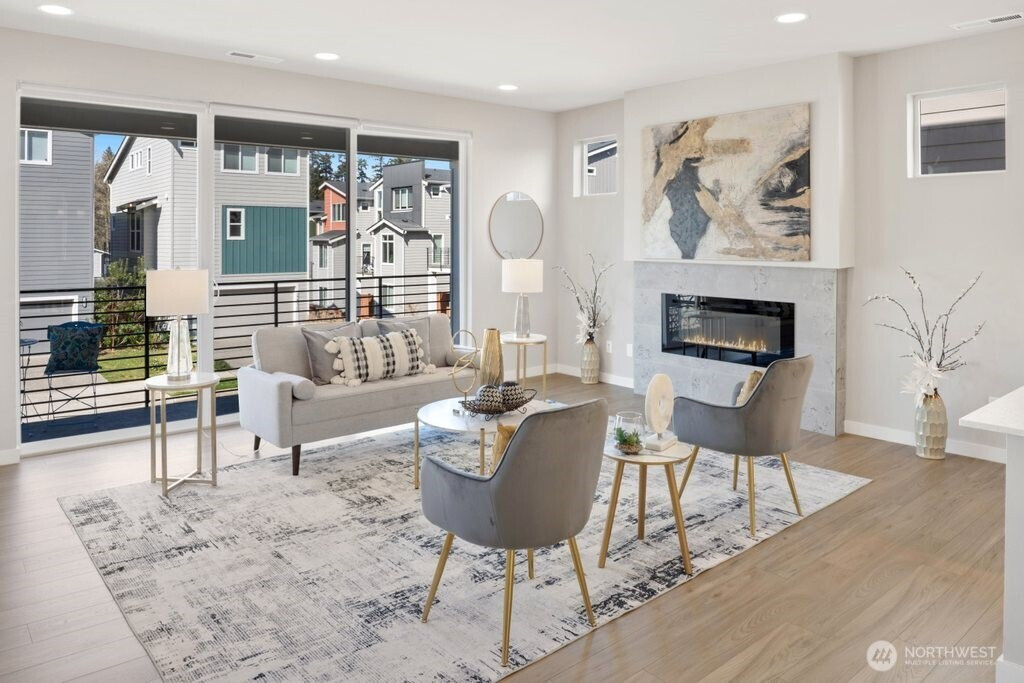 Step inside and immediately feel at ease - this better-than-new 4 bedroom 3.5 bath home offers luxury and tranquility in a quiet community close to I-5 and the light rail. Spread out in multiple outdoor spaces, perfect for entertaining any type of gathering, and always colorful thanks to crisp landscaping and automatic sprinklers. Enjoy a large great room with a sleek electric fireplace, modern kitchen cabinets and white quartz countertops, and durable yet stylish LVP floors. A rare bonus space on the main level is perfect for formal dining, office, or family/game room close to the kitchen! Bask in natural light as you retreat upstairs to your spacious primary suite, complete with tiled shower, water closet and walk-in closet. The upper floor also features second and third bedrooms, laundry, and even a cozy loft space, perfect for a desk, reading nook or Peloton. The lower level adds versatility with an additional large bedroom and full bath, providing flexible space for guests, rec room, or potential ADU/MIL suite. Ample storage, tall ceilings, and a 2 car garage round out the interior. The backyard is fully fenced, and the low HOA dues maintain a pristine community and private park. And if all that isn't enough, enjoy lower electricity costs thanks to a solar panel system. Pre-inspected, freshly painted throughout, and organized. Don't miss this one!