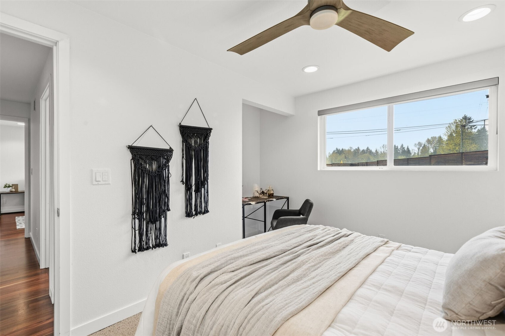 Meticulously upgraded 4-bedroom, 1.75-bath home. Thoughtfully designed living space blending timeless materials with modern functionality, creating a warm yet refined atmosphere throughout. The main living areas showcase stunning East Indian rosewood flooring, complemented by a custom marble fireplace surround with cozy natural gas. A separate family room provides flexibility for today’s lifestyle. The chef’s kitchen is both elegant and highly functional, featuring thick slab marble countertops, custom soft-close cabinetry, under-cabinet outlets with integrated speakers, and a premium KitchenAid appliance package with double oven. A custom stained glass pocket door adds a unique architectural touch. The spa-inspired bathroom offers a true retreat, complete with a ½-inch glass shower enclosure, multiple body jets, and rain shower system, along with a heated towel rack, custom cabinetry topped with marble. The entire top floor is a dedicated primary suite retreat, featuring new LVP flooring, updated cabinetry, and versatile spaces for a home office, reading nook, or lounge. Additional upgrades include powered Hunter Douglas blinds, high-end dimmable lighting, in-wall TV mounting access, sleek Johnson Controls glass thermostat, and central A/C with a natural gas furnace. Outside, enjoy a $25,000 Brazilian redwood fence built to last 75 years, custom illuminated retaining wall, Rain Bird irrigation system, and outdoor kitchen readiness—perfect for entertaining year-round.