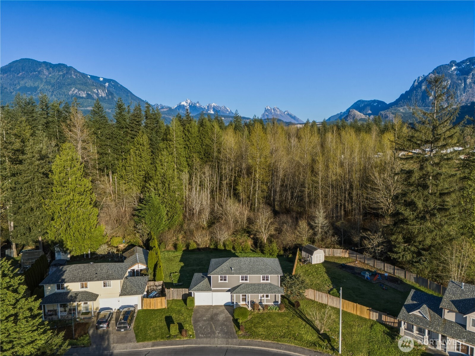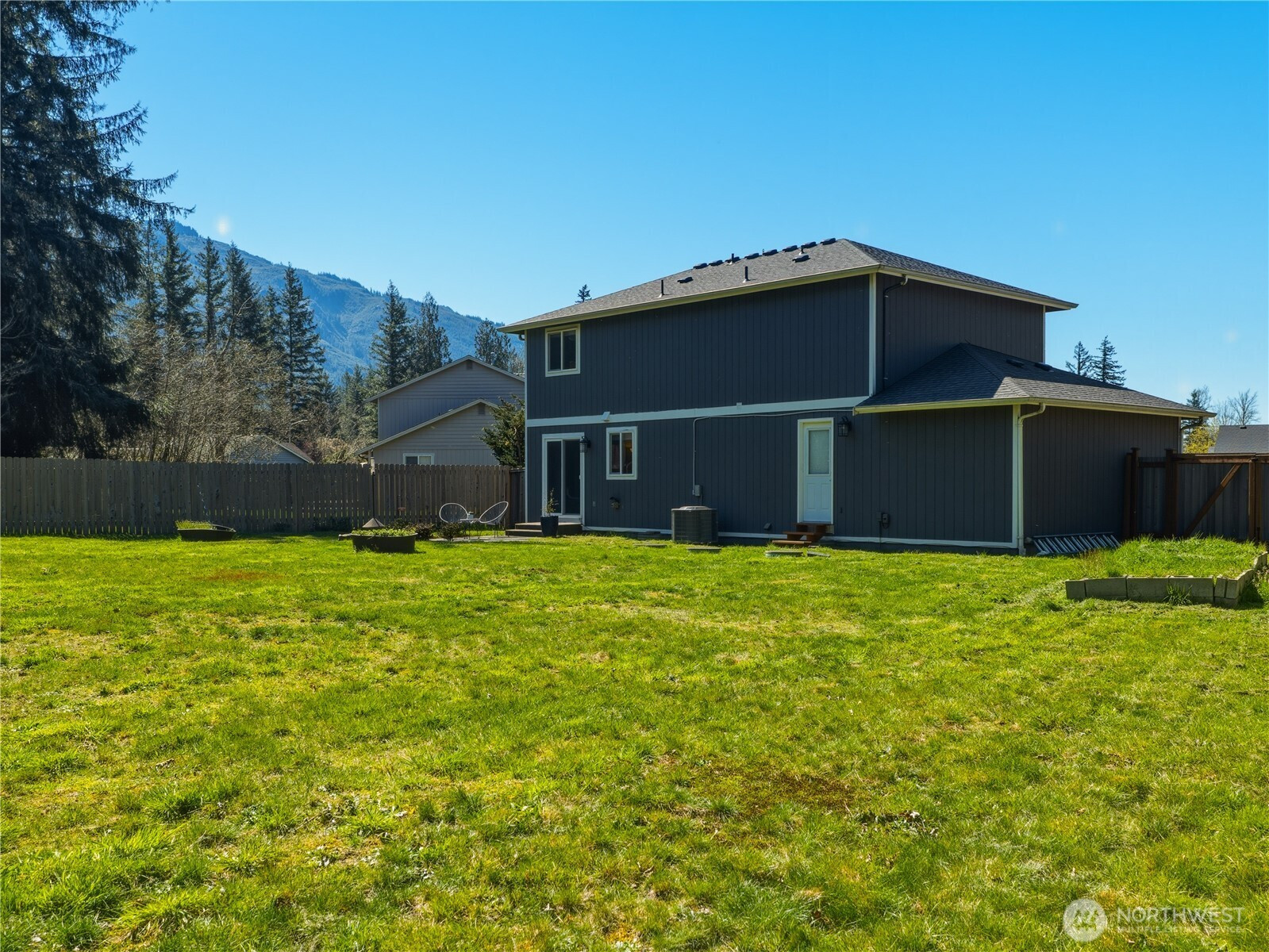 Mountain views with modern luxuries! This beautiful Gold Bar home starts you off in a cozy living room with gas fireplace and elegant built ins. Light and bright dining room showcases views of the generous, 1/3 acre yard backing up to a peaceful, nature filled greenbelt. Catch glimpses of hummingbirds during your morning coffee on the cute patio and pick herbs out of your raised garden beds for dinner. Cooking made easy on the gas stove and easy clean up on the granite countertops. Upstairs you will find another living room/flex space and 3 well sized bedrooms. Highlights of primary bedroom include walk in closet and full bath ensuite. The well thought out layout has another full bathroom upstairs and two sunlit bedrooms on opposite side of home. Featuring a 2 car garage with possibility of RV parking on the side, you will have ample storage for tools and toys. Close to Wallace Falls, countless trails and the Skykomish River, this home is surrounded by the beauty of the Cascades! Coffee shop and grocery store just minutes away. Come see for yourself today!