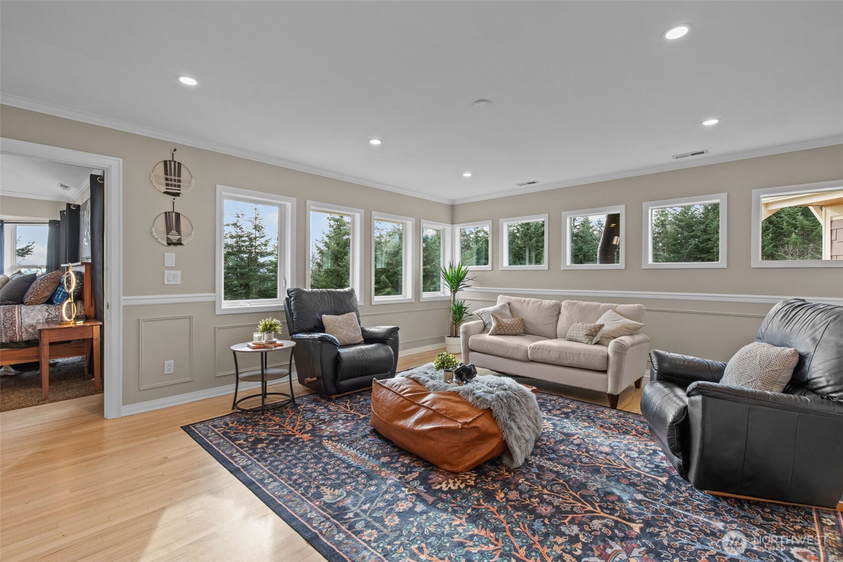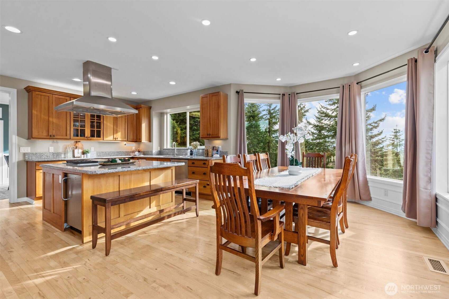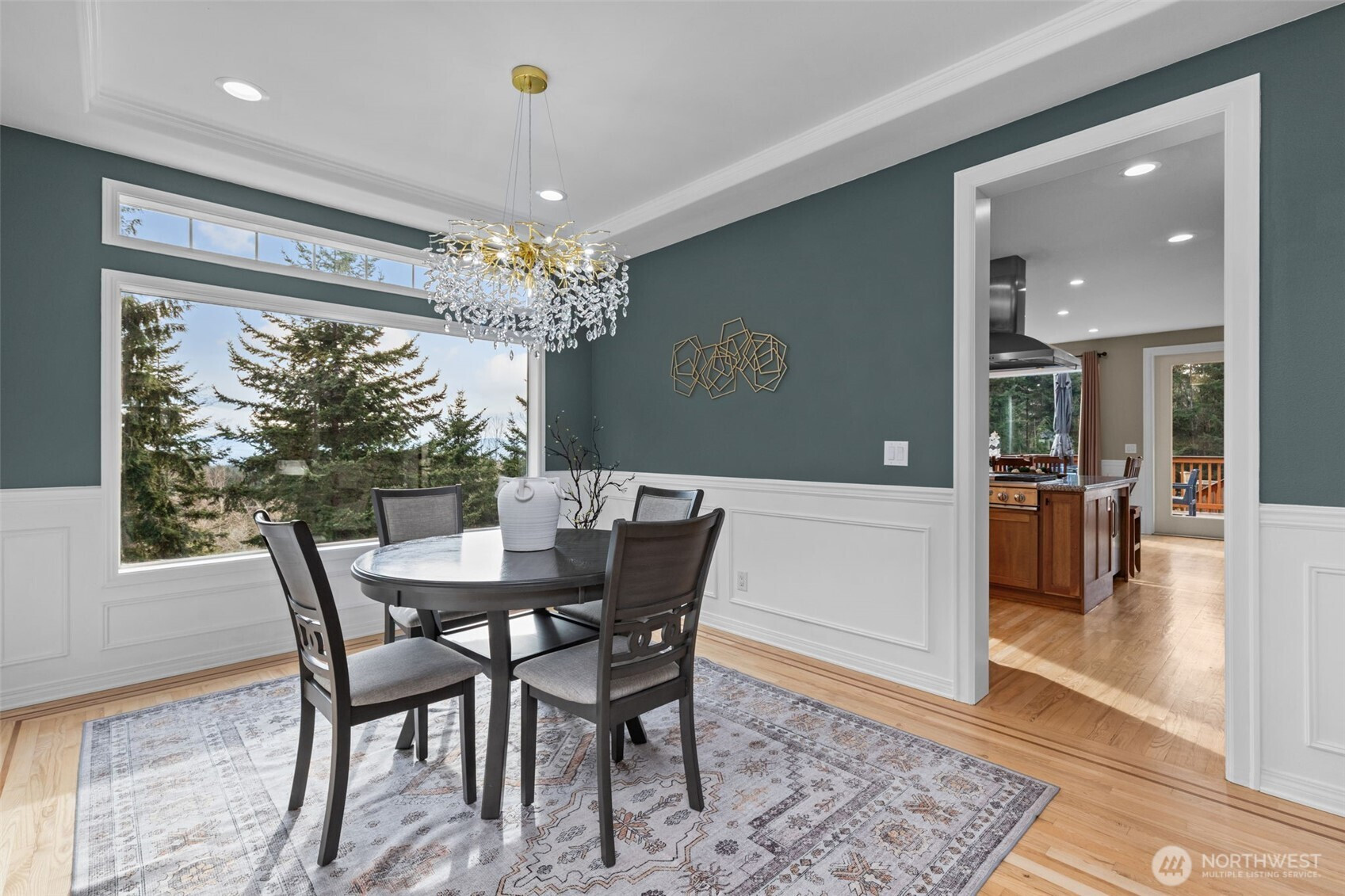 Set on nearly 27 acres with sweeping Mt. Rainier views and expansive timberland, this property offers exceptional privacy, a true Northwest setting, and convenient access to Redmond and the Eastside. The open-concept design features a chef's kitchen, abundant natural light, and seamless indoor-outdoor living with French doors opening to an oversized deck. The primary suite enjoys mountain views, a fireplace, spa-style five-piece bath, and dual walk-in closets. Three additional vaulted-ceiling bedrooms, a rec room, and bonus space are located upstairs. The main level includes a two-story entry, stone fireplaces, private office, full bath, and garage with an electric vehicle charger, plus a whole-house generator for peace of mind. Recent updates include refreshed landscaping, interior paint, and updated lighting and fixtures. Wraparound decking, fenced yard, backyard fire pit, and a private trail leading directly to King Lake Cellars complete this serene retreat