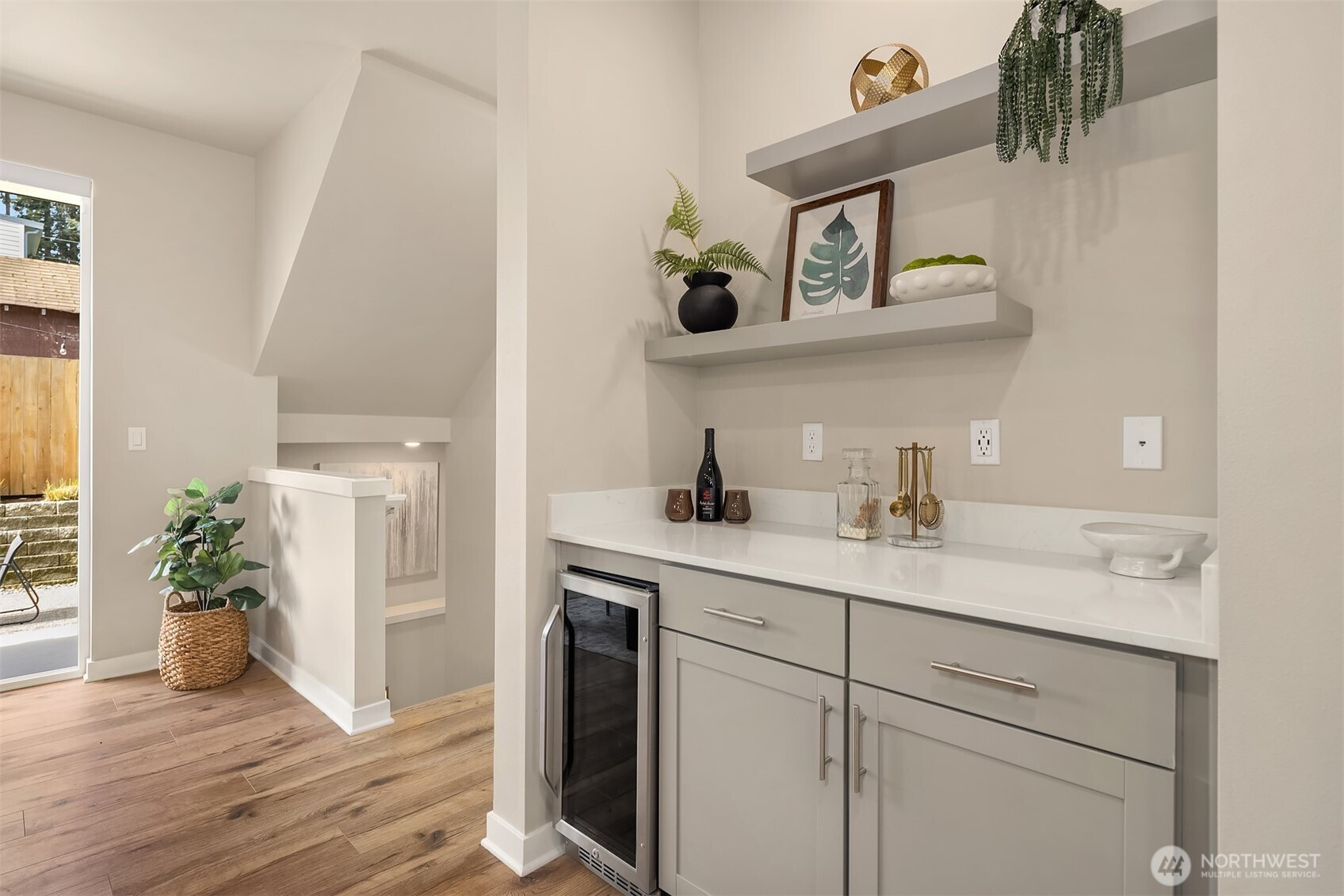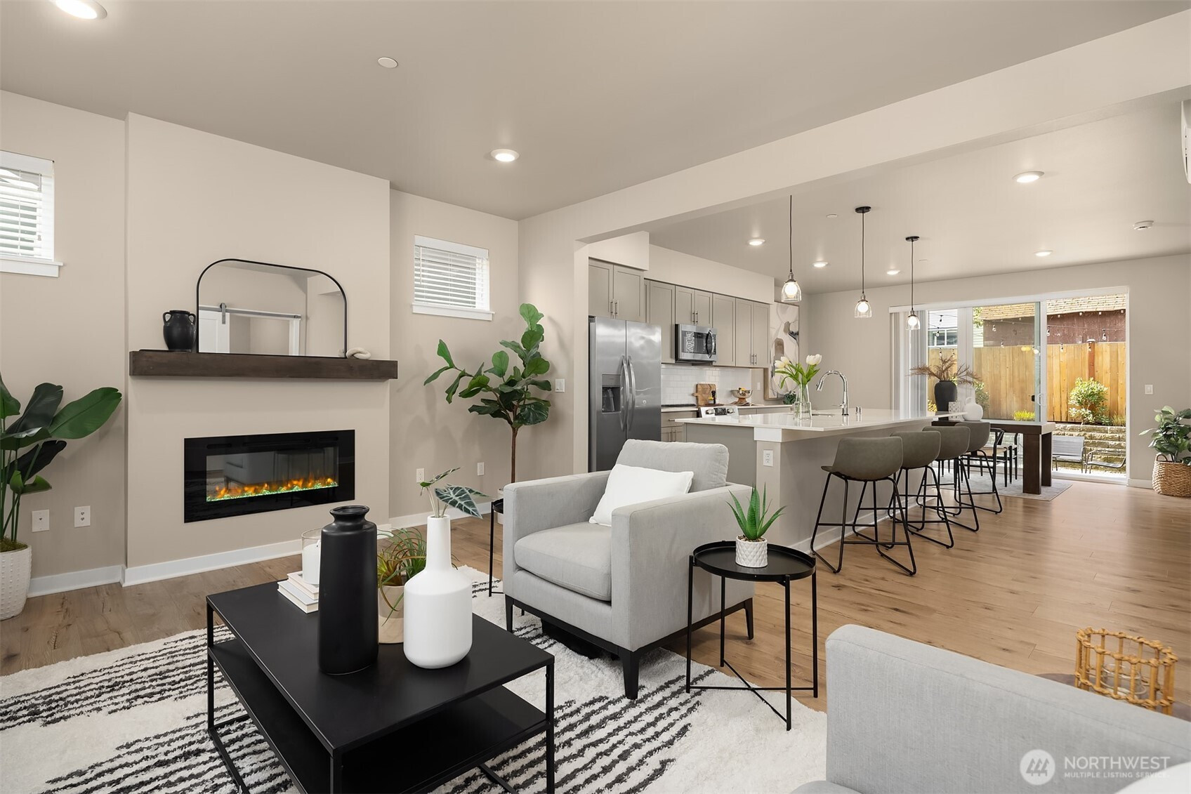 This beautiful 4 bedroom 3.5 bath home is located just minutes from the many shops and dinning opportunities that await you in nearby downtown Edmonds & the spectacular waterfront. Entertain outside in the private landscaped backyard. A large patio and covered deck with built-in heaters are perfect for year-round activity. Inside the spacious open concept 2nd floor you'll find the large living room with cozy fireplace. The kitchen features an amazingly large island, quartz countertops, seperate bar area with wine fridge and walk-in pantry. The spacious dining area offers a great view of the light filled backyard. The 2nd floor also features a powder room and perfect work from home private den. The third floor has two guest bedrooms, a full guest bathroom and a large light filled primary suite with walk-in closet and large en-suite bathroom. The home has high efficiency temperature controlled comfort from heating & A/C delivered by the modern mini split system. Spacious 2 car garage parking and large driveway. This home is just minutes to I-5, Hwy 99, I-405, Kingston Ferry & public transportation including the newly extended light rail perfect for commuting to the airports, Seattle or Bellevue.