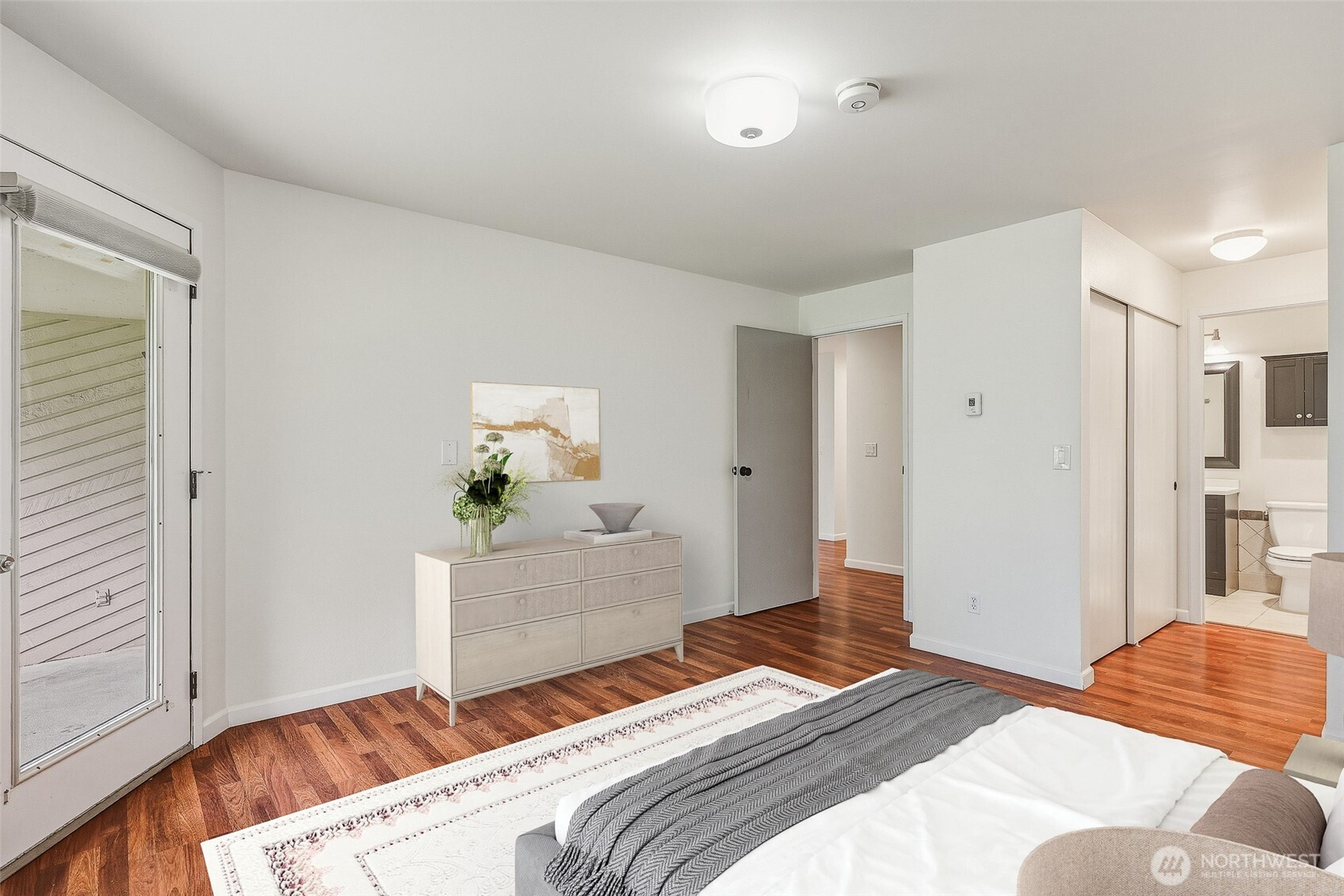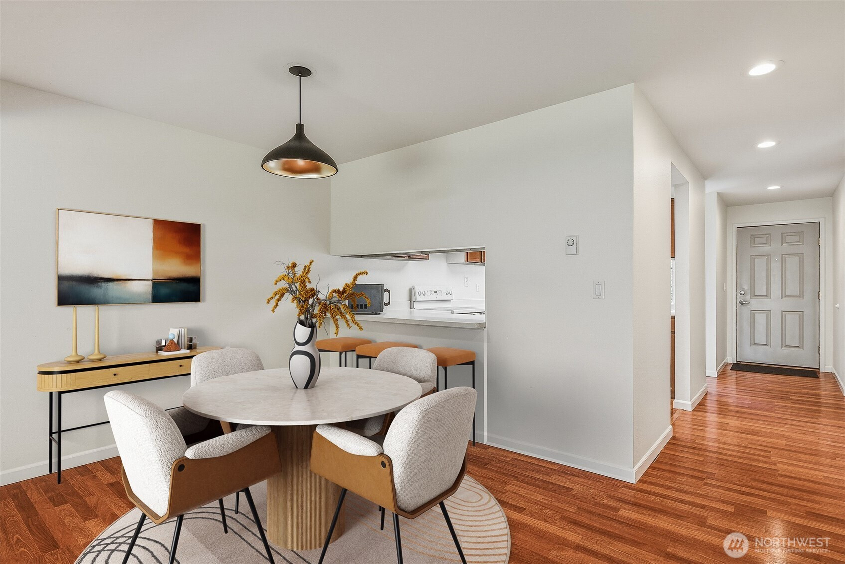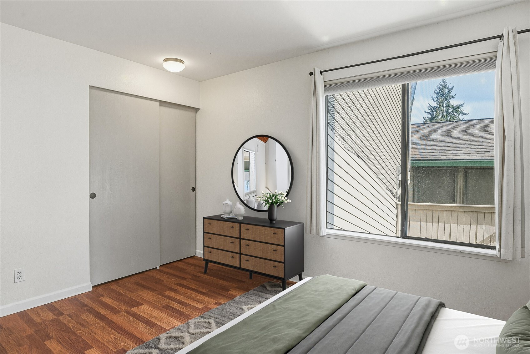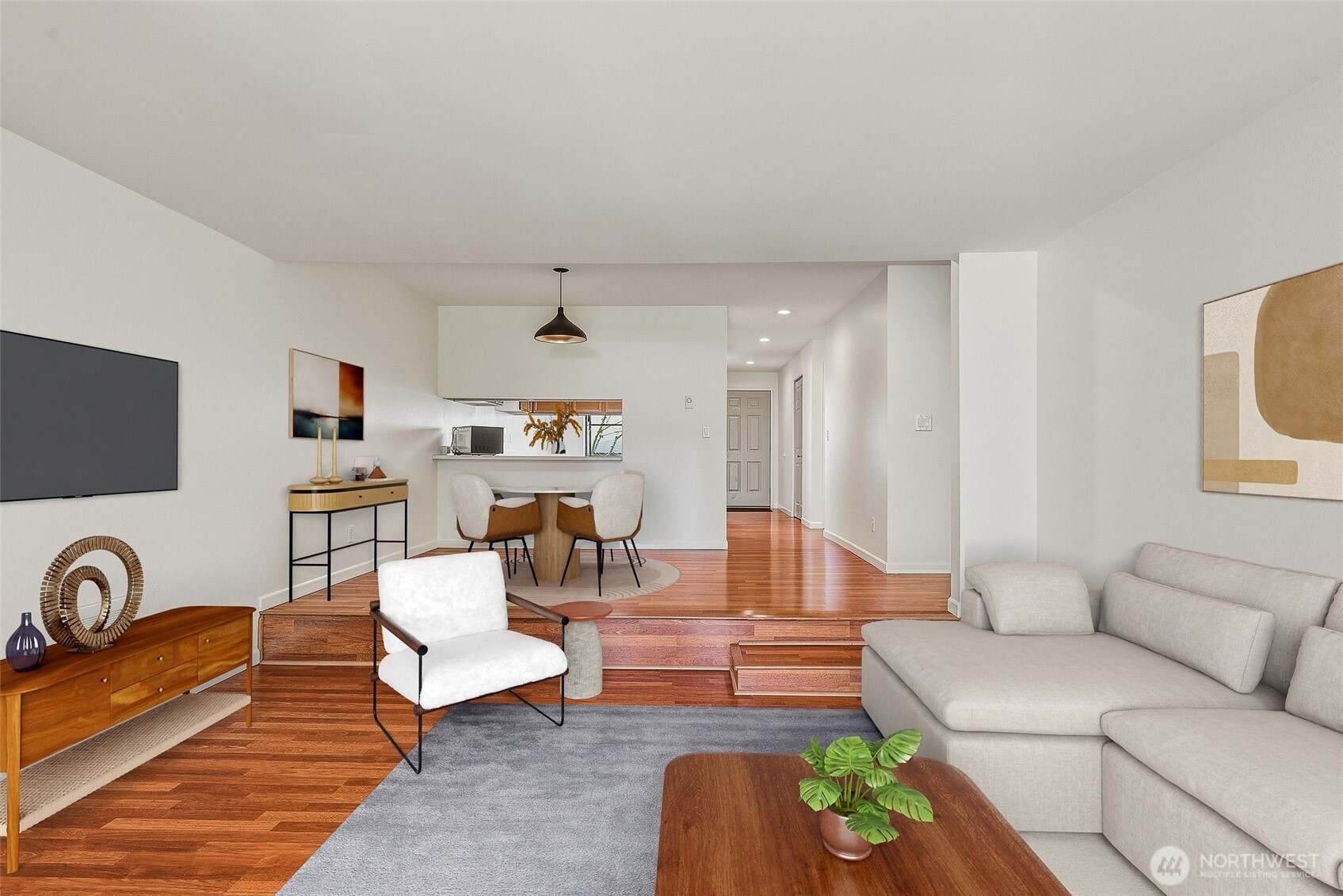 Experience a park-like setting tucked away from the hustle, offering a seamless blend of comfort and convenience in this beautifully updated one-level residence. The open floor plan flows effortlessly, anchored by a real wood-burning fireplace that creates a warm, inviting atmosphere for relaxation or entertaining. A chef-friendly kitchen boasts expansive counter space perfect for hosting. Significant recent investments provide long-term peace of mind, including a full $25k renovation of the main bathroom and a complete update of all plumbing throughout the unit. Practicality meets style with updated digital thermostats dimmable lighting, and an abundance of storage. The thoughtful layout ensures maximum privacy between sleeping quarters making it an ideal retreat for residents and guests alike. Step outside to your private balcony to overlook lush green space or take advantage of the community features including a swimming pool clubhouse sport court and exercise room. You will appreciate the private individual garage plus an additional dedicated parking spot. The location is truly unbeatable for those seeking an active lifestyle you are just a short stroll from the scenic Interurban Trail and the shores of Lake Ballinger. Commuting is effortless with the Transit Center and the Light Rail just minutes away providing quick access to downtown Seattle and the airport. With 99 Ranch Market and Country Farms nearby this home represents a rare opportunity for ease and accessibility