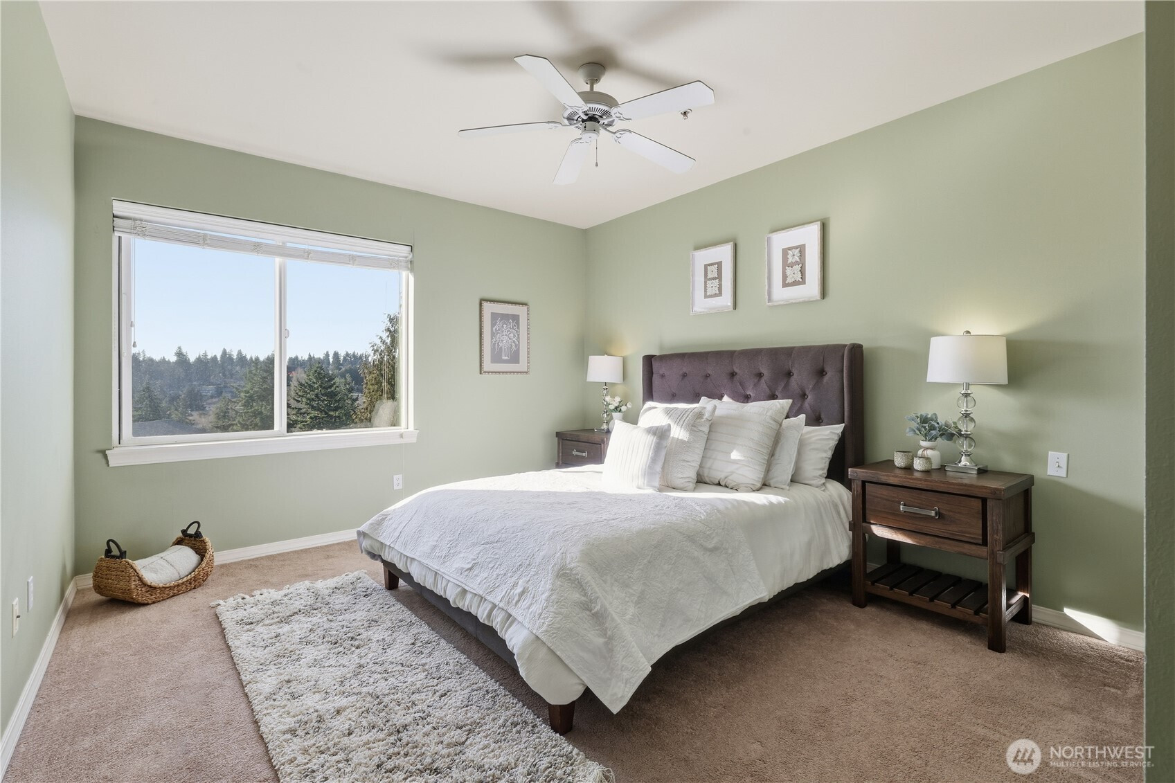 This spacious 2 bedroom + den, top-floor condo offering peaceful, territorial views and exceptional privacy. This quiet, light-filled home also boasts an open living area centered around a cozy gas fireplace and sliders to a private, view deck. Spacious kitchen with breakfast bar, French doors opening to a true den—ideal for a home office, or guest space and in-unit laundry with more storage. Primary suite features a walk-in closet, private 3/4 bath and beautiful views. Condo includes a single-car garage with extra storage, plus an additional designated parking space and several guest parking spots. Enjoy friendly neighbors and an unbeatable location just 1 mile to Light Rail, with easy access to the Interurban Trail, Lake Ballinger for swimming, kayaking and picnics, and Nile’s Golf Course —the perfect balance of tranquility and convenience.