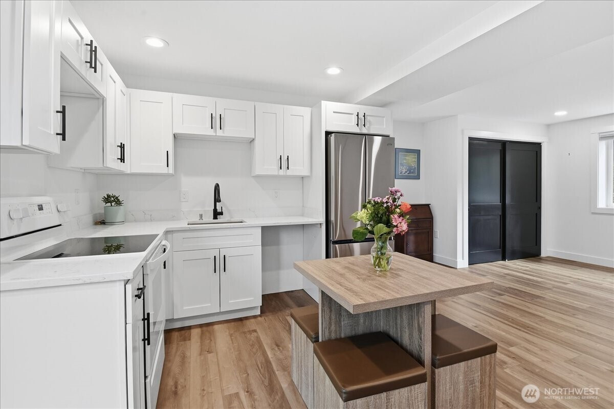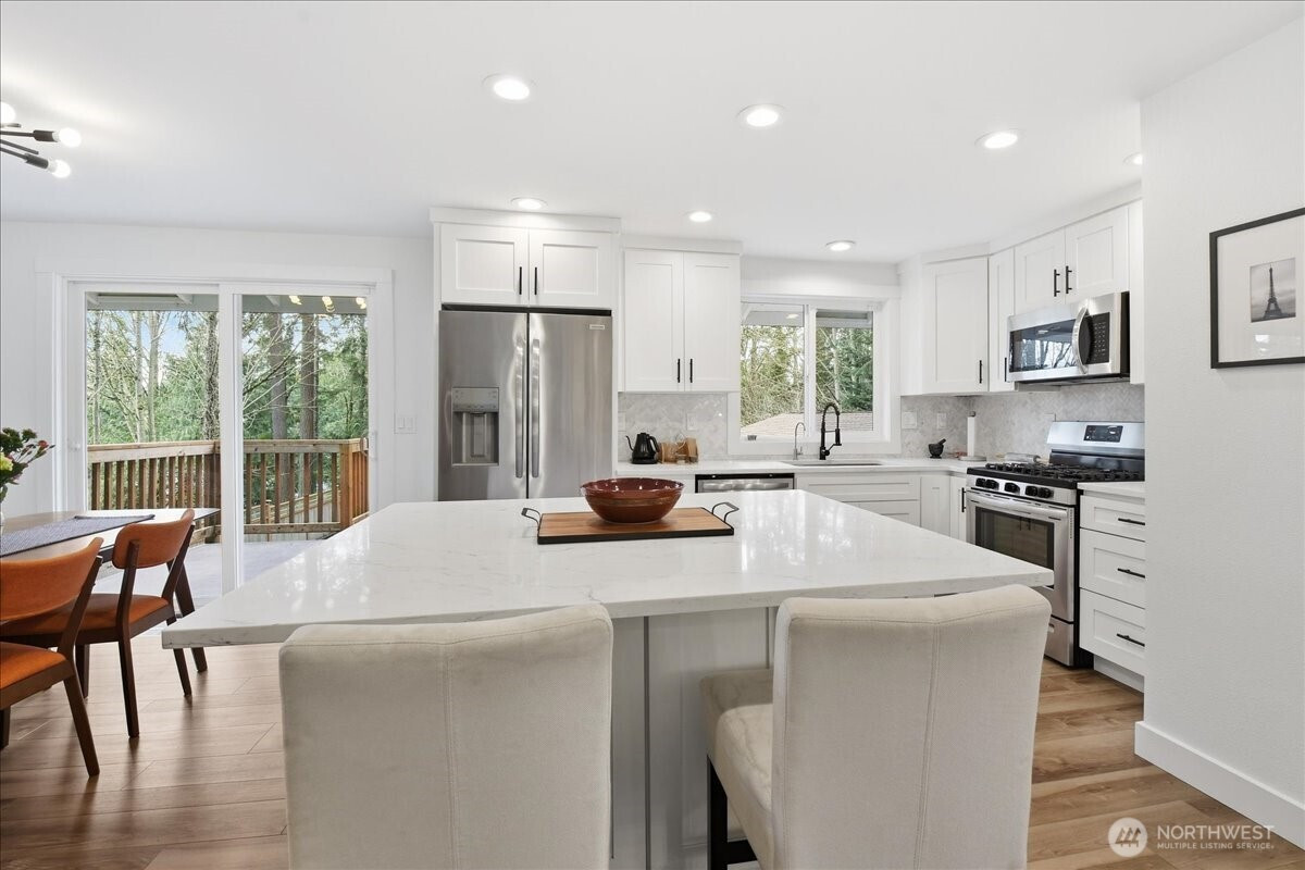 Need a little more room? With a 17,860 sqft lot you have plenty. It comes with it's own private woods to explore and build stuff in. Outside, the fully fenced rear yard offers plenty of space to play, garden, or relax. From summer BBQs on the expansive deck to cozy evenings on the patio, this outdoor space is made to be enjoyed year-round. Nice big seperate garage/shop waiting for your projects. Lots of parking behind the fence, several out front. The lower level has a seperate living space with it's own kitchen, full bath and laundry. If you don't need it that way it also blends in to the home as just more space. or an office? There is also a large play room with direct patio access making parties easy. Too much screentime? Behind the back fence is a private fully fenced woods waiting to be explored. This great home was fully remodelled 3 years ago and still shows as new with a Chef's Kitchen, Quartz Counters, big breakfast island and stainless steel appliances. It backs up to Brier Elementary school and its so quiet that you can hear owls hooting at night.