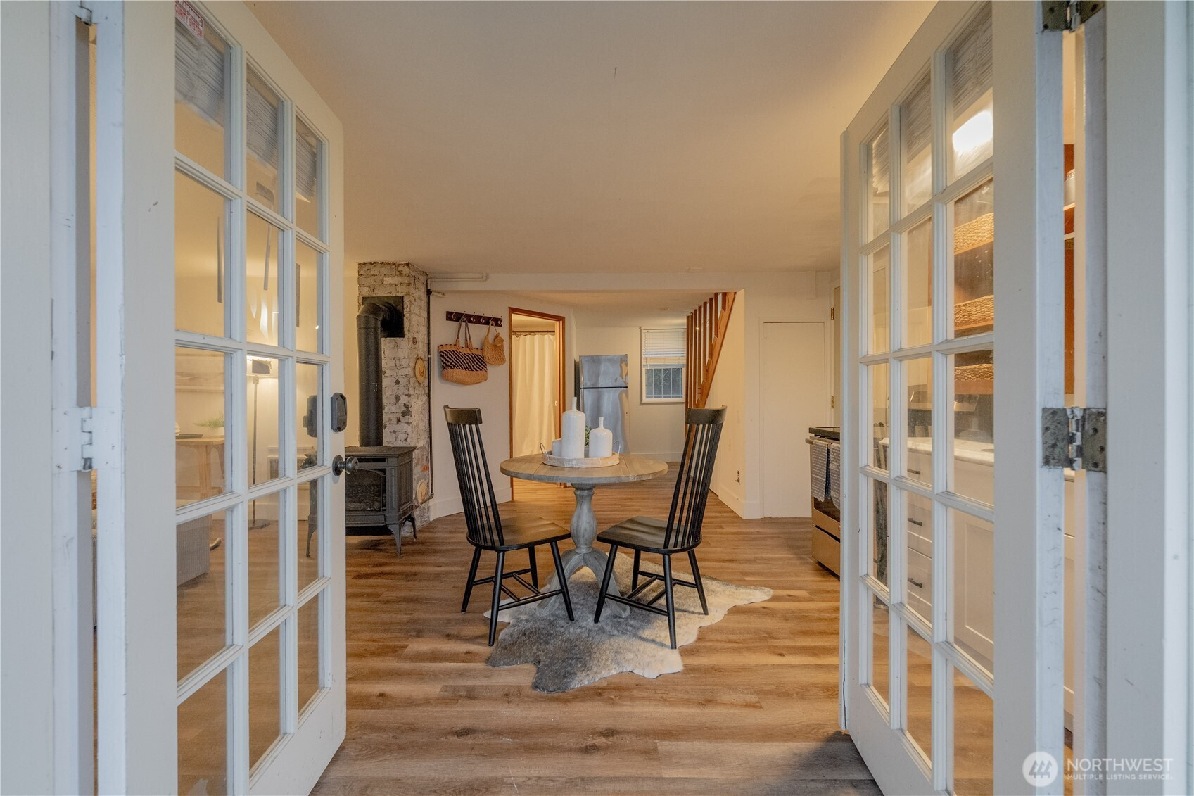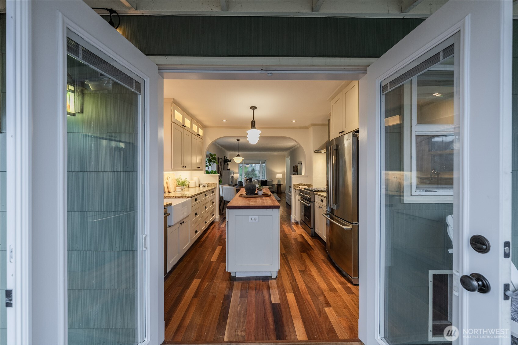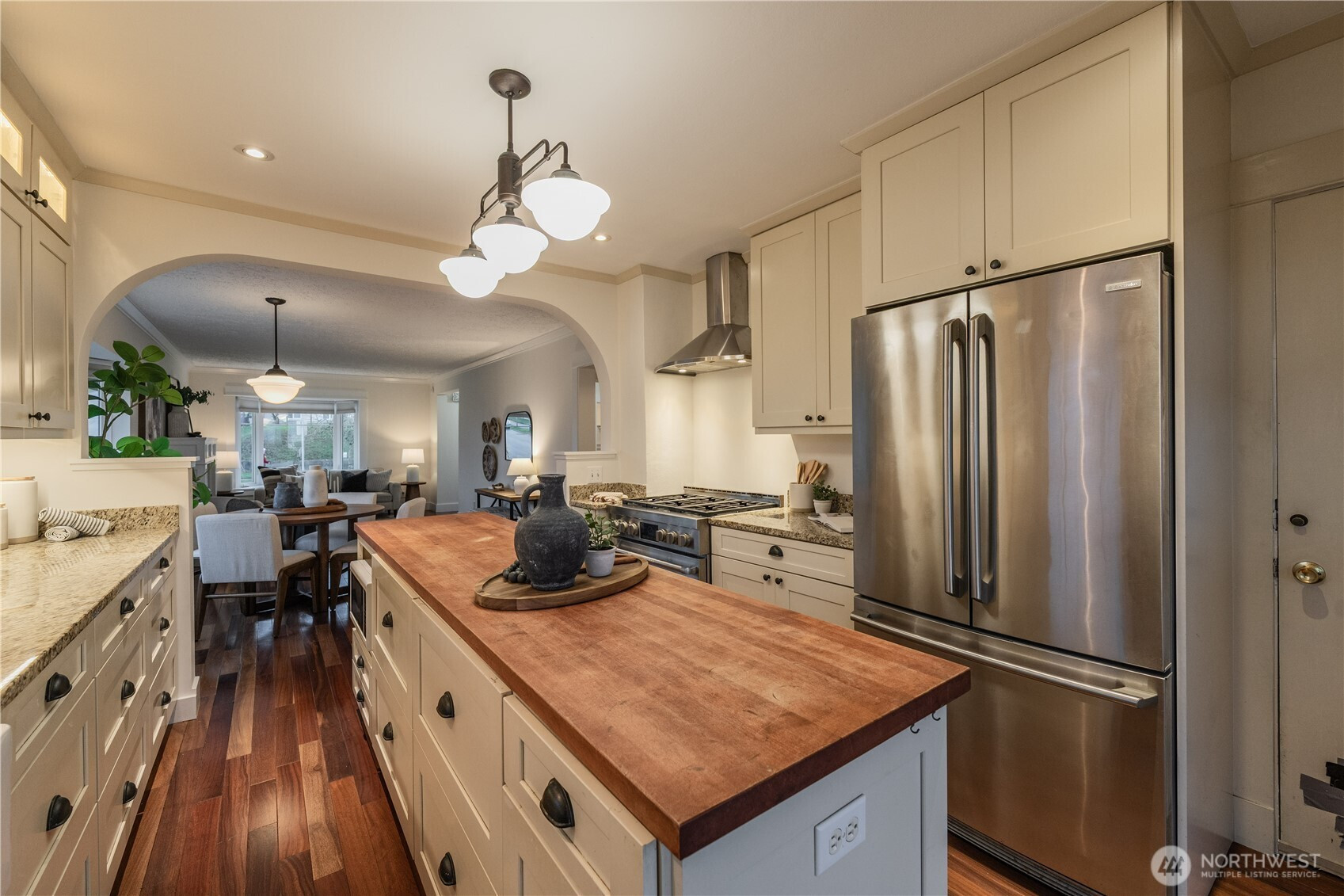 Sweeping views of Port Gardner Bay, Jetty Island, and the neighborhood P-Patch set the tone for this versatile corner-lot home. Freshly painted interior and a roof replaced in 2020 provide a clean start. The updated kitchen opens to generous living spaces and a large west-facing deck—ideal for sunsets and taking in the water views. The lower level offers flexible living options, complete with a second kitchen, making it well suited for multi-generational living, guests, or a private home office setup. Terraced garden beds offer opportunity for future landscaping or urban gardening. A massive attached two-car garage provides exceptional storage and workspace, complemented by rare off-street parking and additional street parking on the corner lot.Located just blocks from dining, the hospital, and the pedestrian bridge to the Everett Marina and farmers market, this home combines views, flexibility, and convenience in one compelling package.
