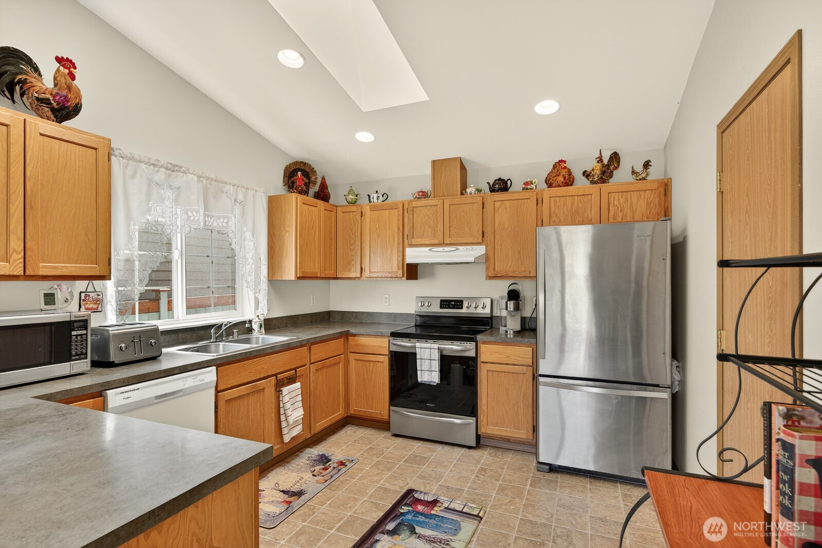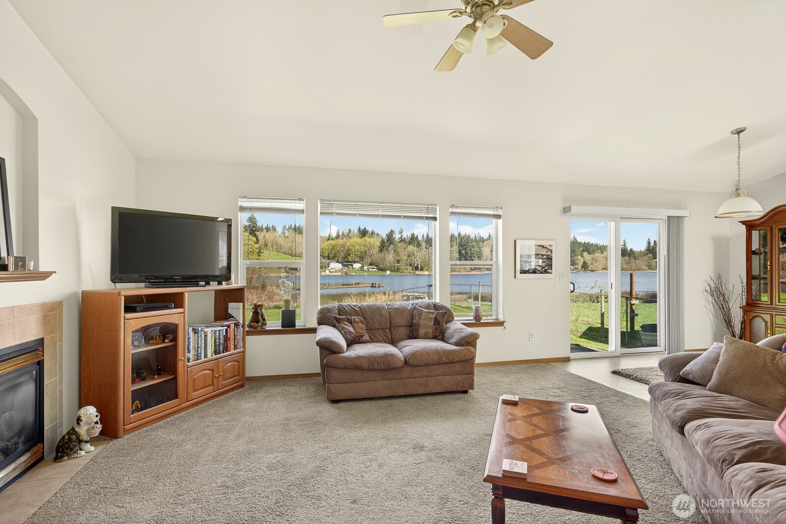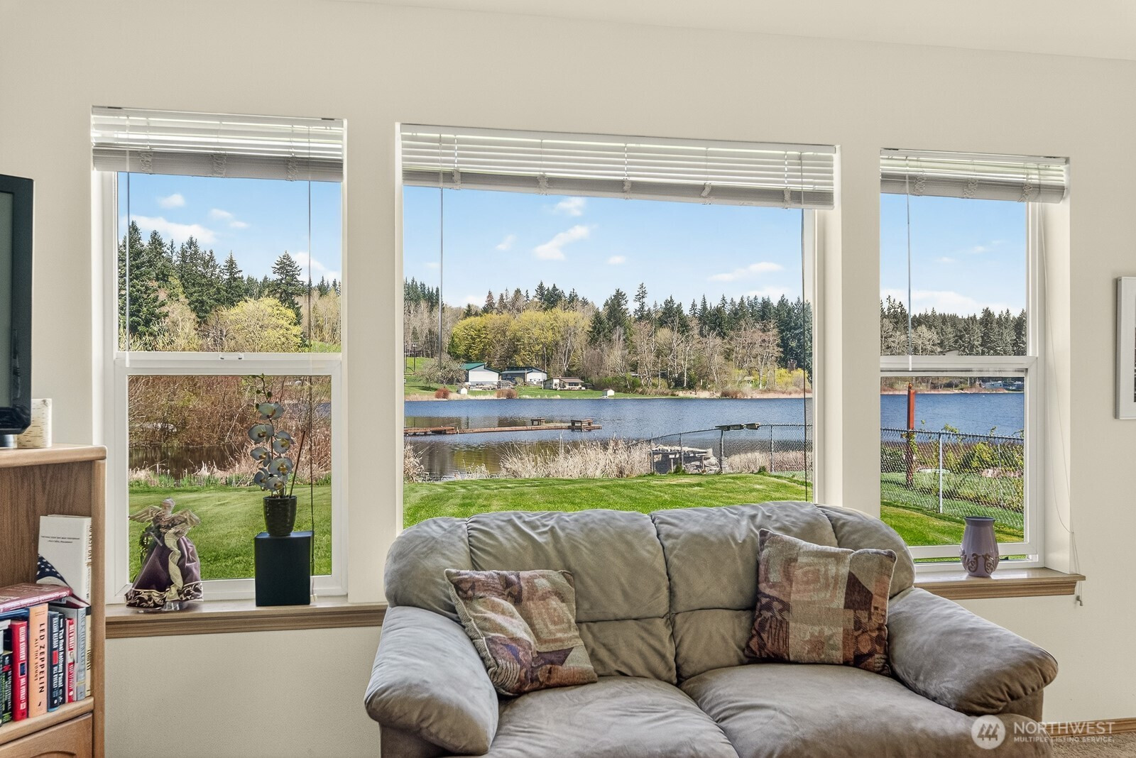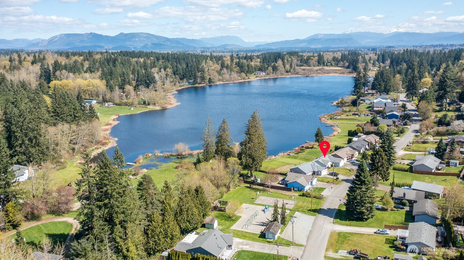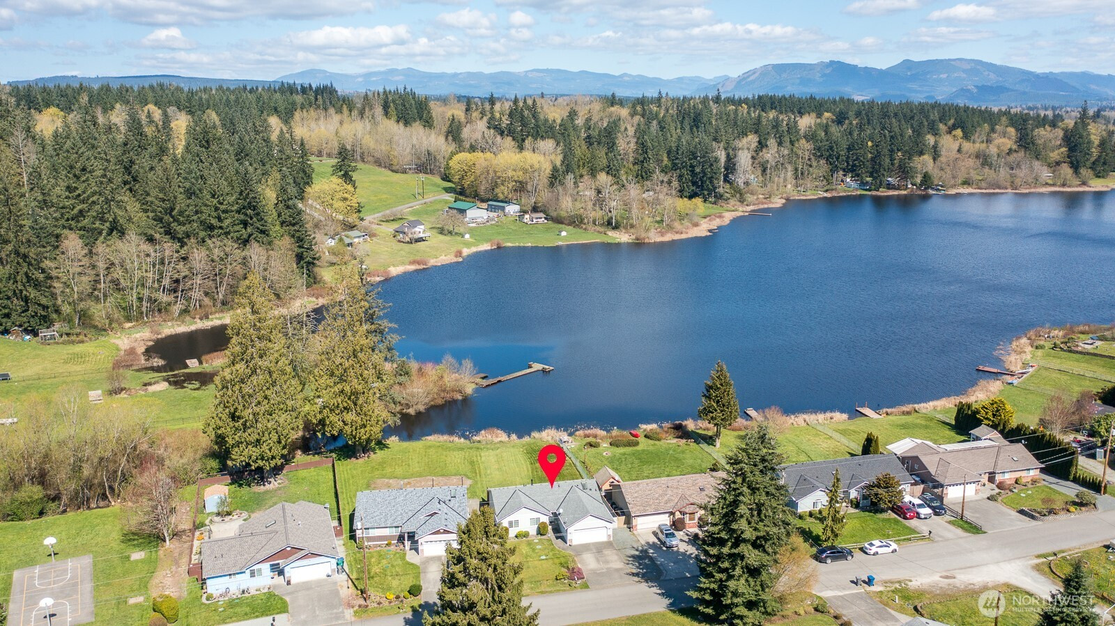 Welcome to the desirable Sunday Lake Community! This well-maintained rambler offers 60 feet of waterfront in a peaceful, scenic setting. The home features 3 bedrooms, 2 full bathrooms, and 1,328 square feet of comfortable living space with a cozy gas fireplace and functional floor plan. Recent updates include a new roof and new gutters with leaf guard screens for added peace of mind. Large, open concept kitchen with updated stainless-steel appliances, large pantry, tons of cabinets, and countertop space-chef's kitchen! Step outside and enjoy the large, level lot with low-maintenance landscaping and a private patio—perfect for relaxing or entertaining. John Deere riding lawn mower included! Spacious 2-car garage with plenty of storage space. Beautiful waterfront and mountain views! Conveniently located a few homes down from the community park and private dock. Just minutes to I-5 and local amenities, this property offers the perfect blend of tranquility and accessibility.