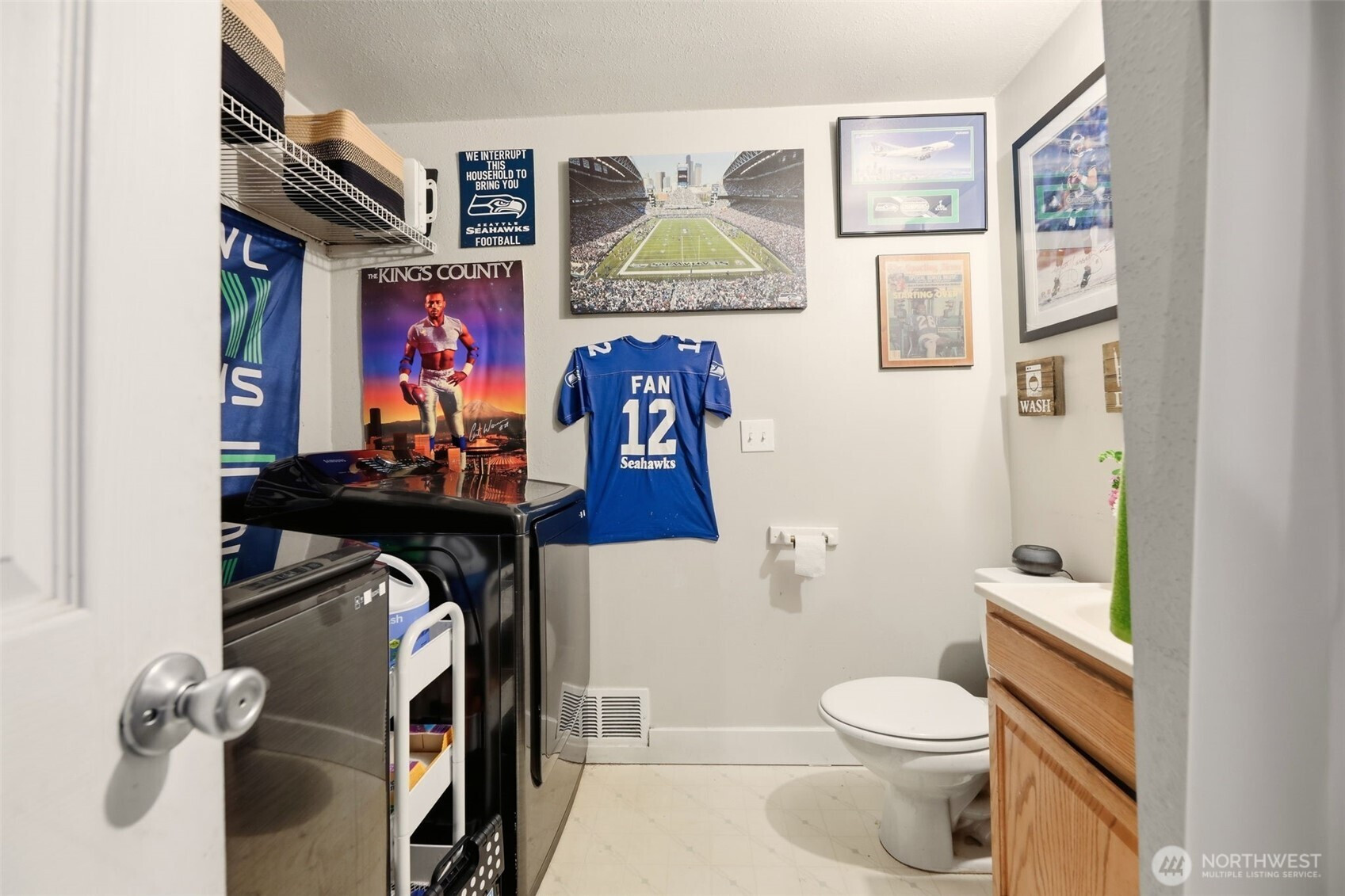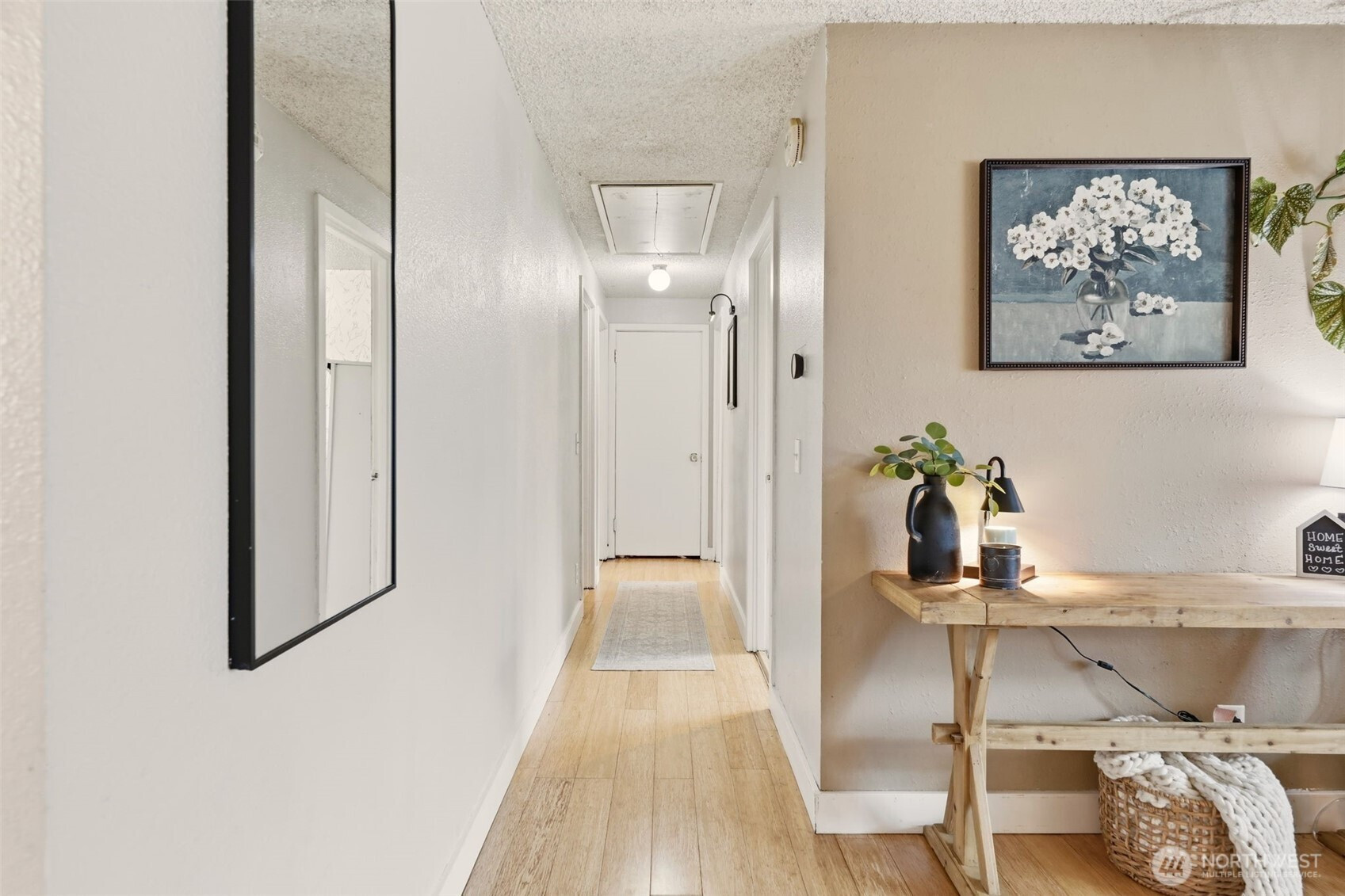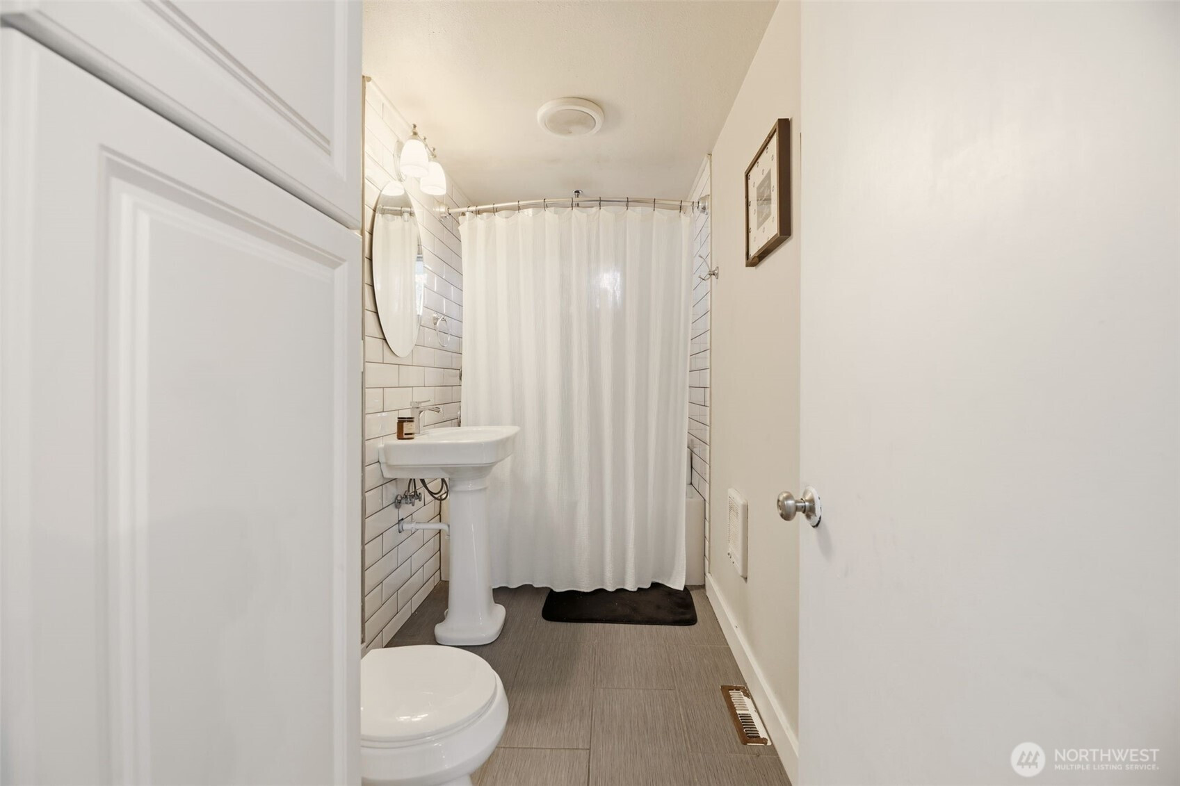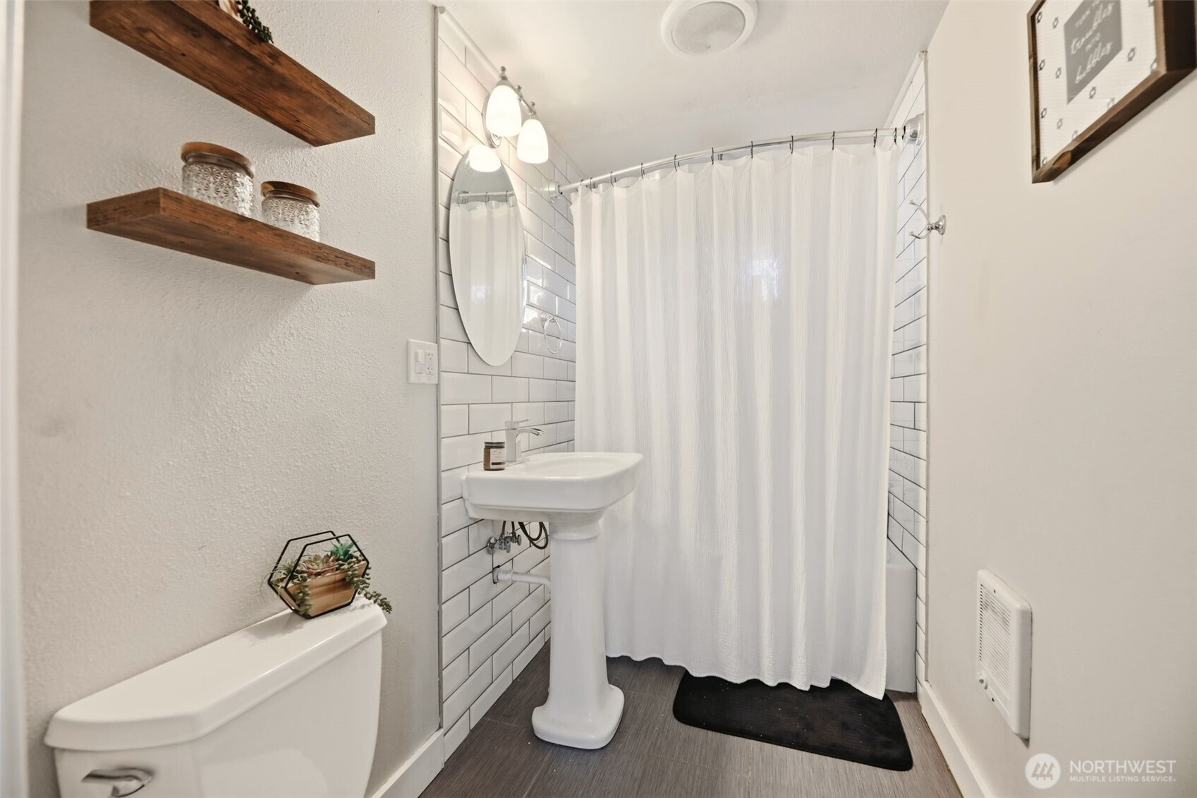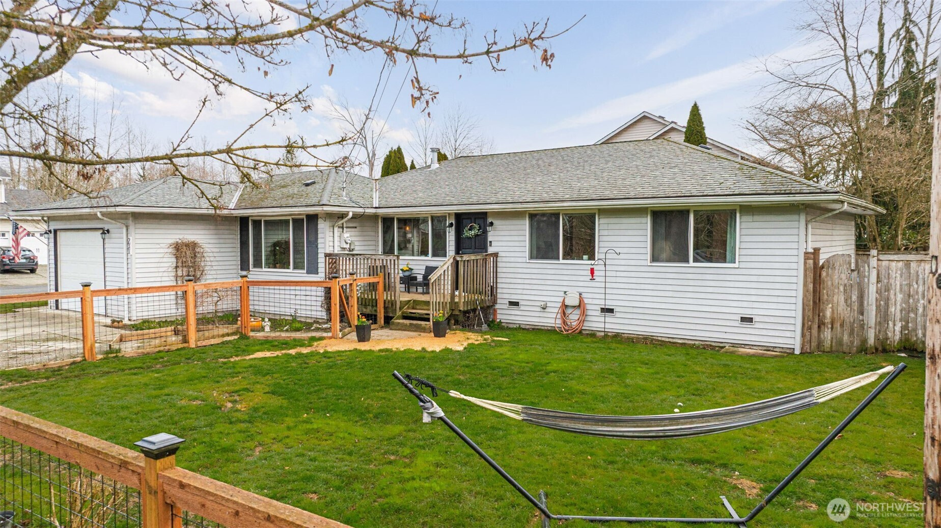 Beautifully situated on a corner lot in the heart of Lake Stevens, this move in ready home offers space and flexibility. Featuring 3 bedrooms plus a versatile bonus room and 1.75 baths, the layout includes a generous dining room perfect for gatherings. The beautifully updated bathroom showcases stunning tile work and elevated finishes. The spacious bonus room with attached bath is currently used as an additional living area but could function as a private primary suite or guest retreat. Incredible fully fenced front yard creates standout curb appeal, with additional fenced backyard space. Roof is only 10 years old and brand new hot water heater in garage. One car garage, ample parking, and attic storage with pull downstairs. Close to shops, parks, and highway access.