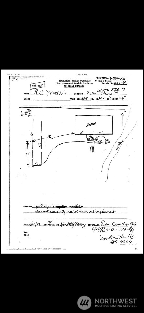 A river does run through it... Let's go back to the year 1927 almost 100 years ago when this house was built. Woodinville was barely reaching its mid to late 30s. Well, the foundation is strong the walls have Fallen a victim of time and Mother nature, and is ready to be restored to its Past glory. Yes, it has a bridge, yes, it has out buildings. Yes, it is close to over 100 wine tasting rooms. Yes, it is 5 acres... and Yes, it needs some TLC. It is ready for someone with a vivid imagination and a 19th century work habit! Only the brave of heart will be ready to take on this project. Please do all your research of access, water, sewer, and power for a home that was lived in for decades.