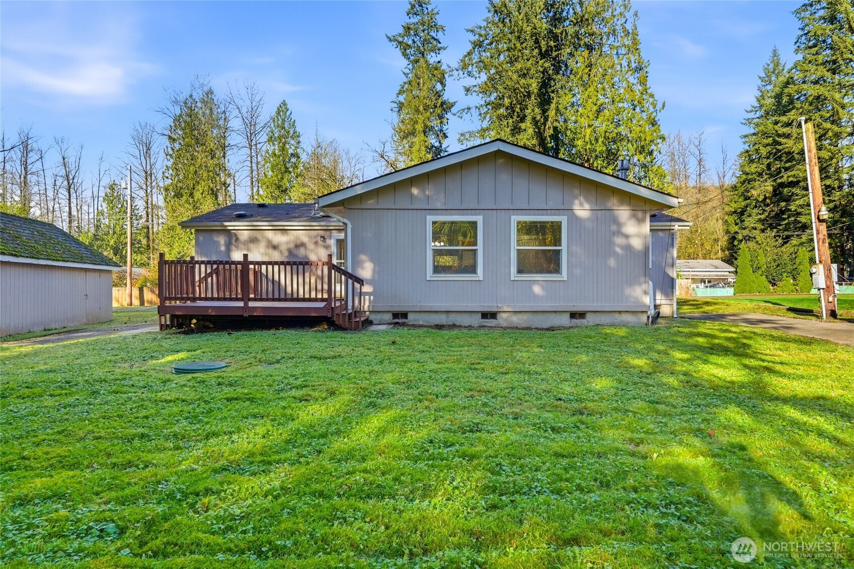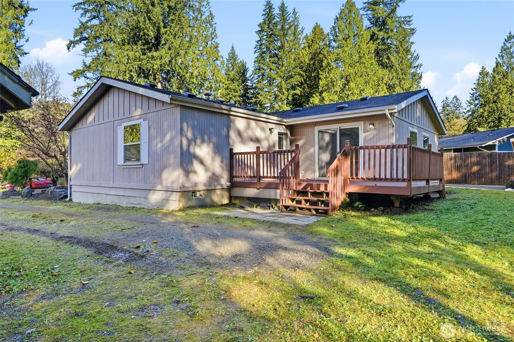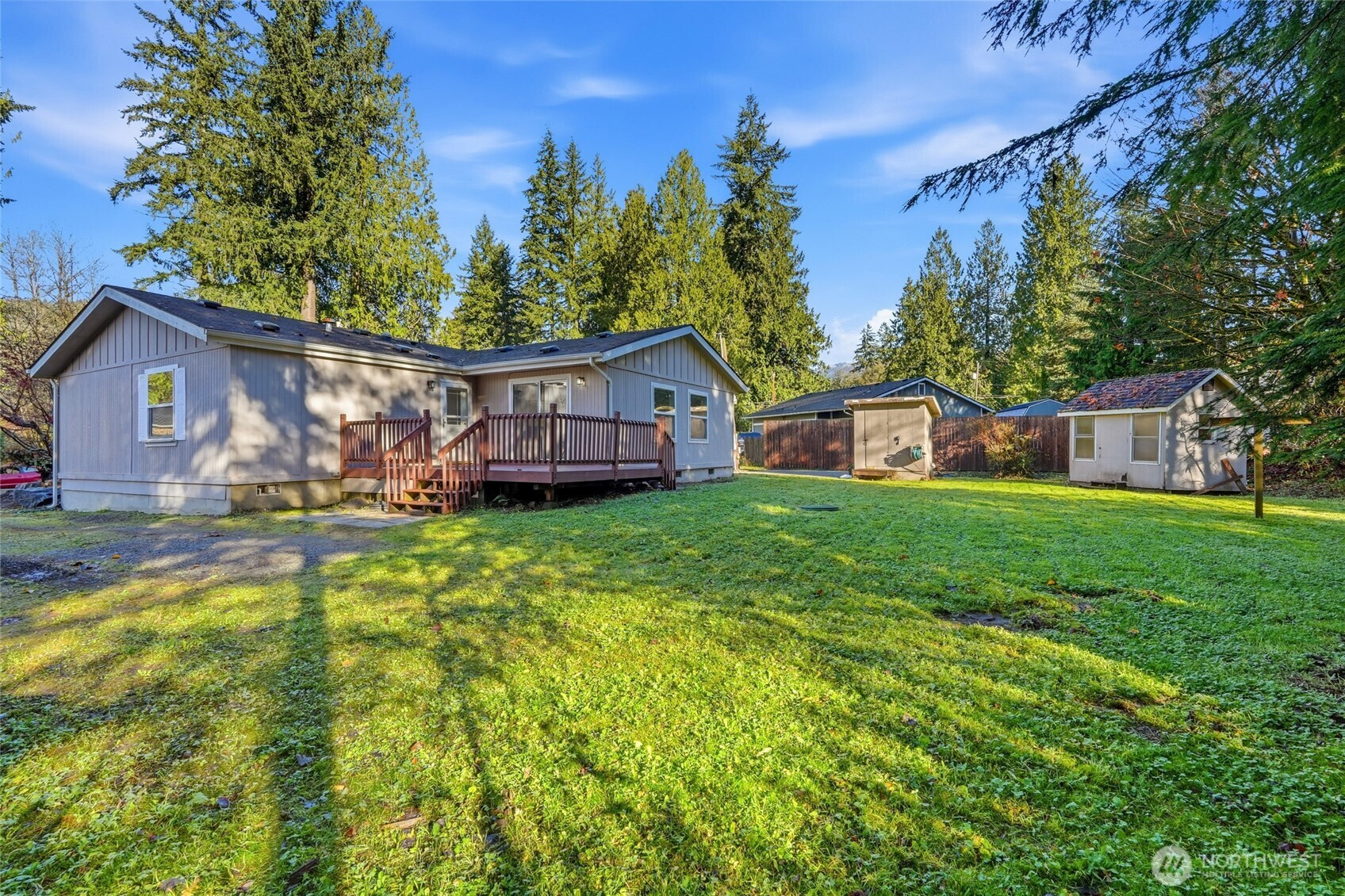 Situated on a level, usable lot just shy of a half-acre, this darling home features a detached 2-car powered garage (ideal for a shop!) w/ RV or boat parking, outbuildings (studio/storage), & separate pump house. With fresh interior paint & new flooring throughout, 2 spacious living areas + a cozy corner fireplace, spacious kitchen w/pantry + dining area, & utility/mud room off back deck - it is turn-key and ready to move in! Primary suite includes ensuite & large WIC with other 2 bedrooms on opposite side of home-(privacy!). Across from Canyon Creek & near Mountain Loop Hwy, enjoy hiking, kayaking, fishing, & all-season outdoor adventures. Relax & retreat on the deck listening to the river & savor the peace of this quiet neighborhood.