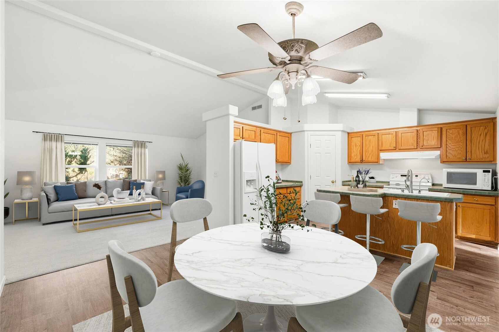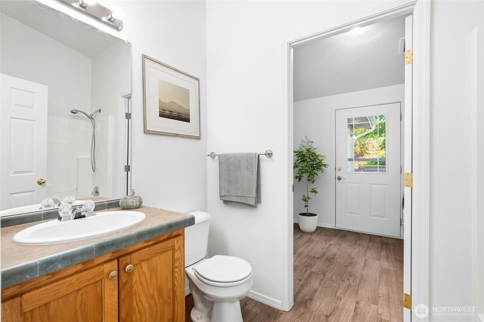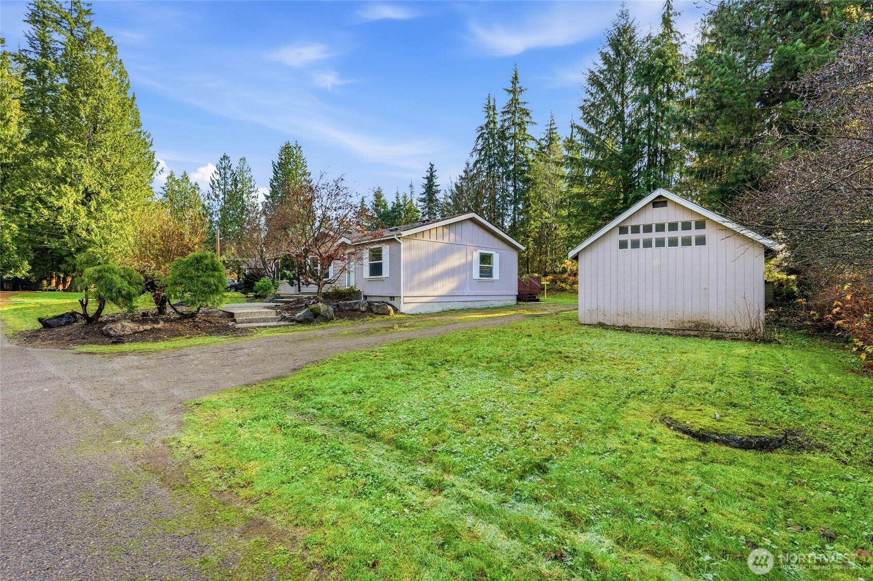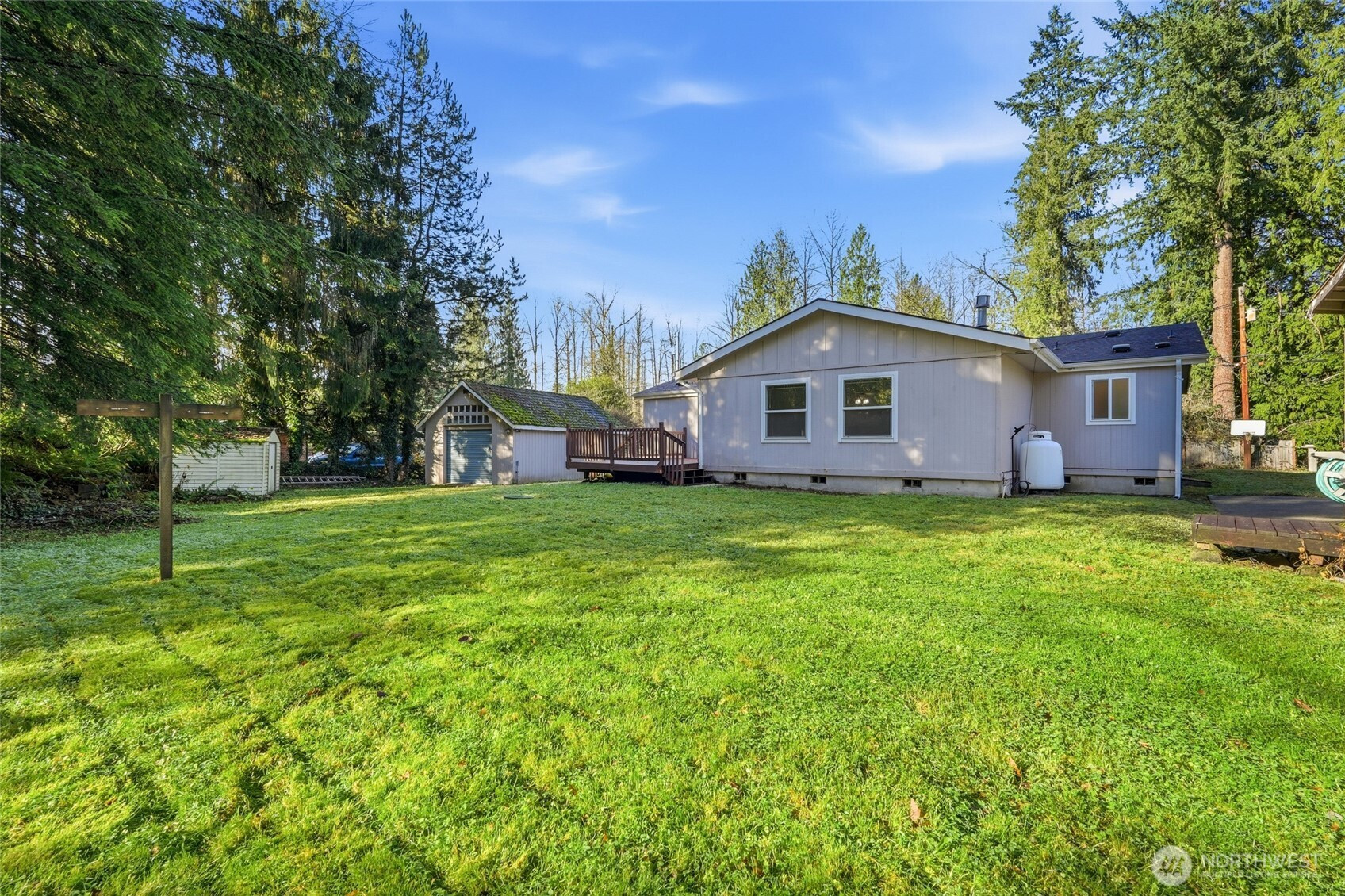 Situated on a level, usable lot just shy of a half-acre, this darling home features a detached 2-car powered garage (ideal for a shop!) w/ RV or boat parking, outbuildings (studio/storage), & separate pump house. With fresh interior paint & new flooring throughout, 2 spacious living areas + a cozy corner fireplace, spacious kitchen w/pantry + dining area, & utility/mud room off back deck - it is turn-key and ready to move in! Primary suite includes ensuite & large WIC with other 2 bedrooms on opposite side of home-(privacy!). Across from Canyon Creek & near Mountain Loop Hwy, enjoy hiking, kayaking, fishing, & all-season outdoor adventures. Relax & retreat on the deck listening to the river & savor the peace of this quiet neighborhood.