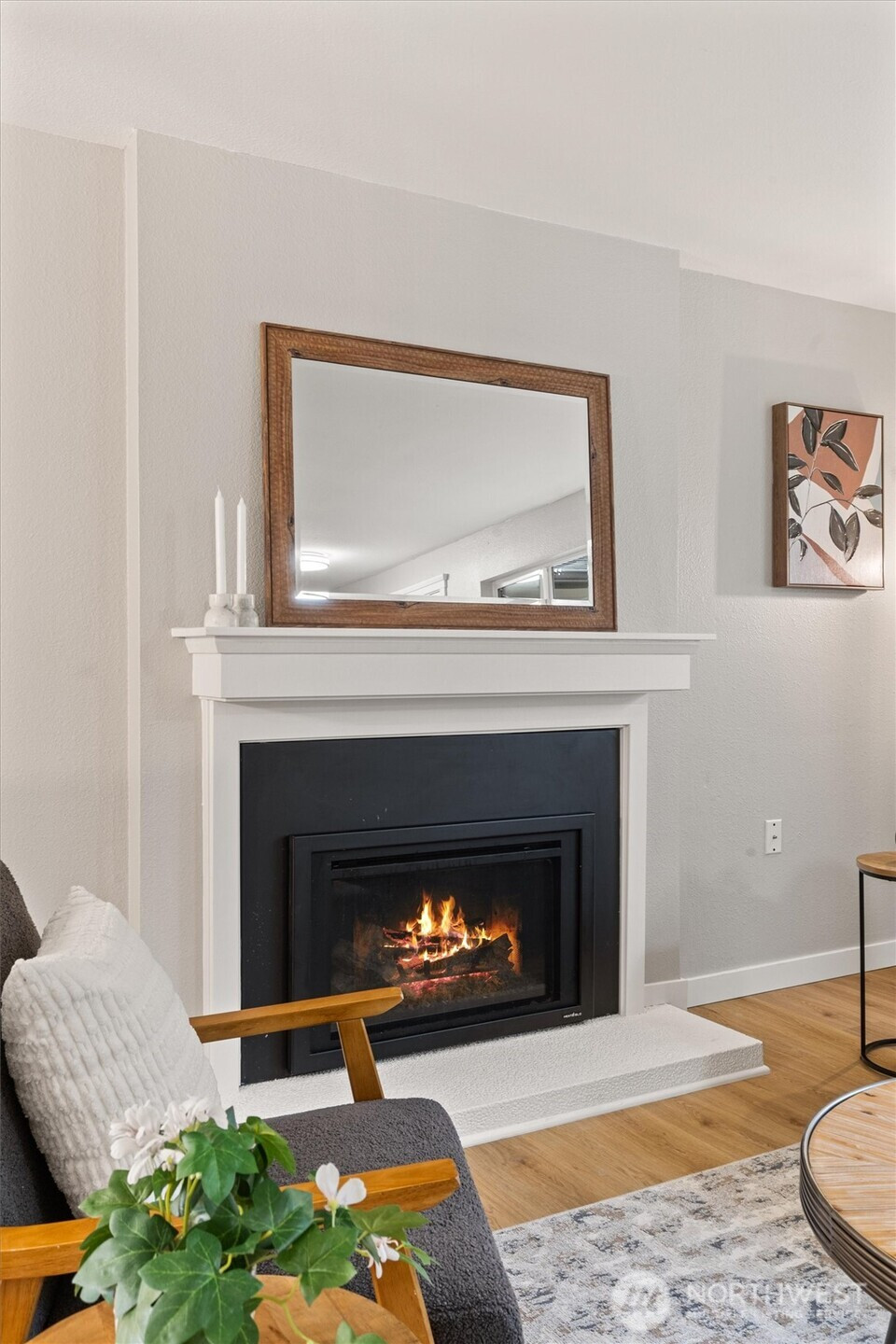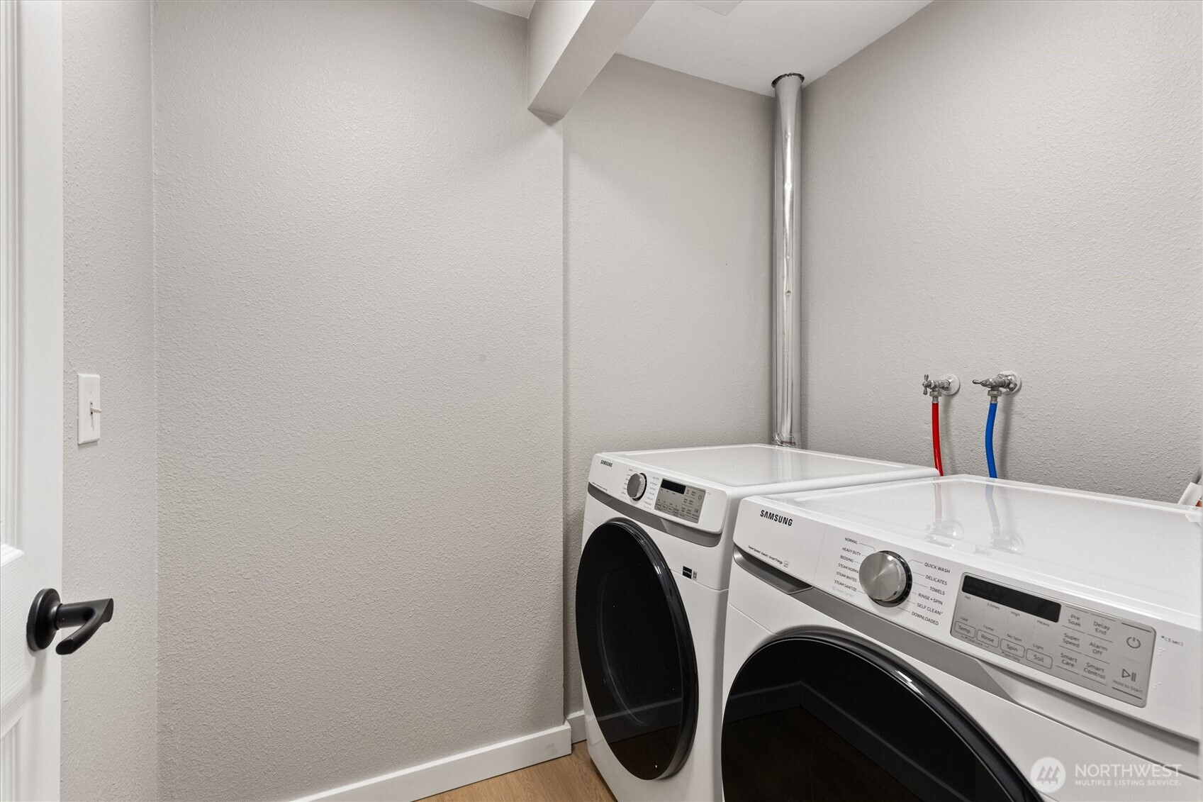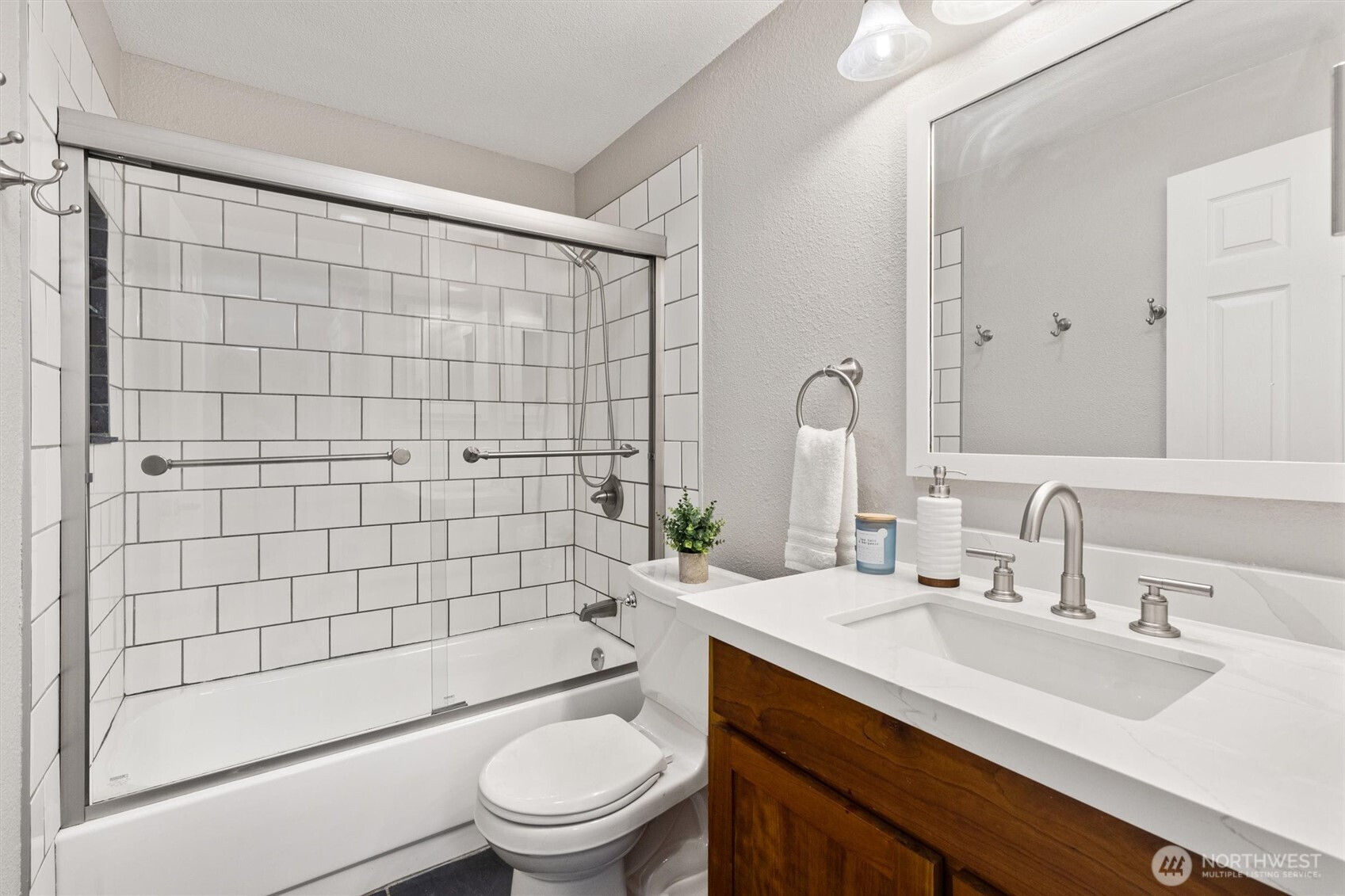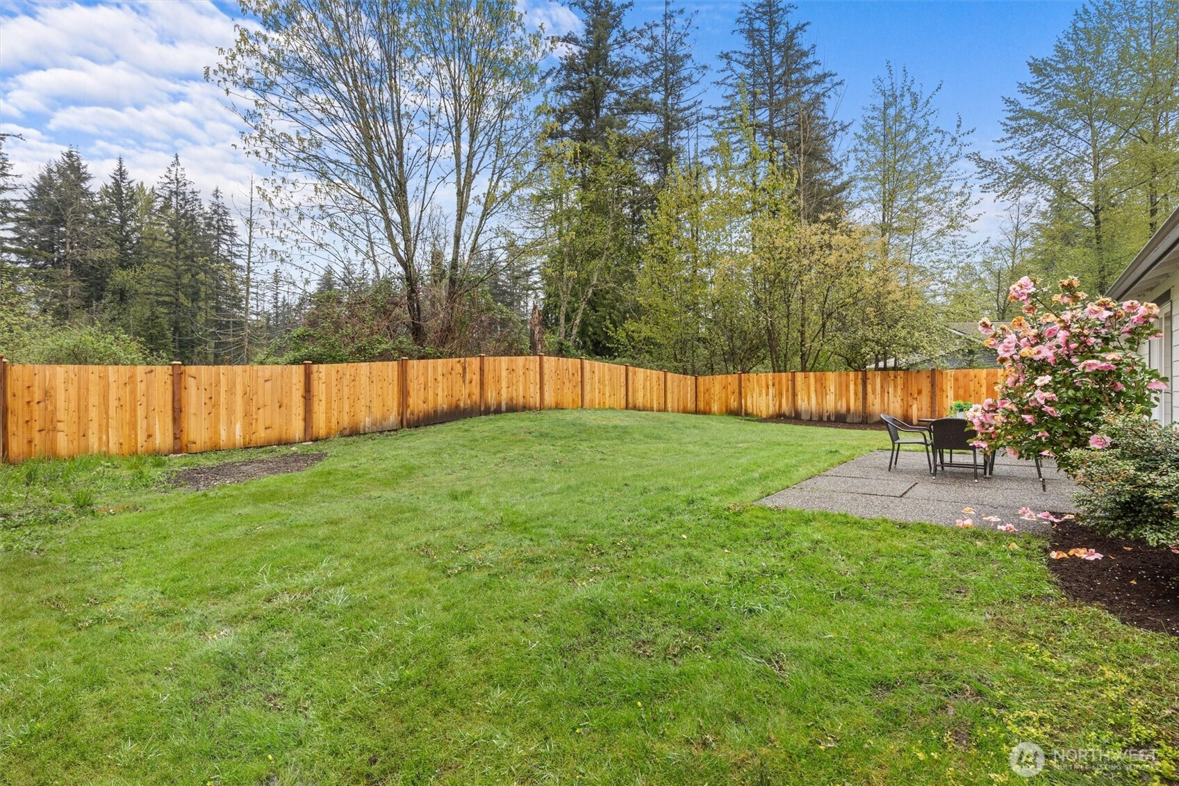 Stylishly updated rambler in the desirable Mays Pond community! This move-in-ready home is tucked on a quiet cul-de-sac and features a spacious, private backyard backing to Mill Creek Community Association open space, offering a peaceful, park-like setting with trees and walking trails beyond. The updated kitchen includes brand-new appliances, new cabinetry, quartz countertops, and tile backsplash. Additional improvements include new luxury vinyl plank flooring, carpet, lighting with adjustable color, hardware, baseboards, interior and exterior paint, washer and dryer, a new 6’ cedar fence, and a newer roof (2023). The living room offers a cozy gas fireplace, and the laundry room is conveniently located inside the home. Step outside to the private backyard and patio—perfect for relaxing or entertaining while enjoying the quiet setting and natural surroundings. Ideally located near schools, parks, SWIFT Transit Line, and Mill Creek Town Center with shopping and dining, as well as golf and tennis clubs, aquatic center, Arena Sports, and more. A fantastic opportunity to enjoy a well-updated home in a location that balances everyday convenience with a peaceful, natural backdrop.