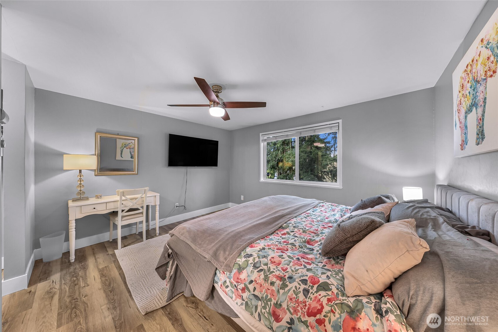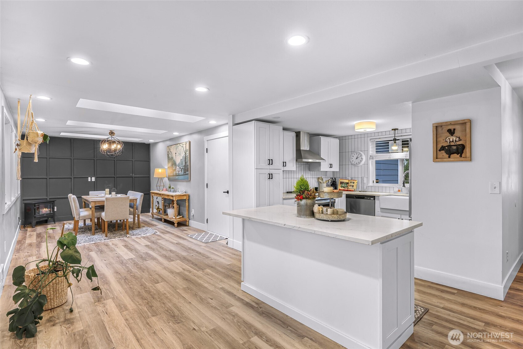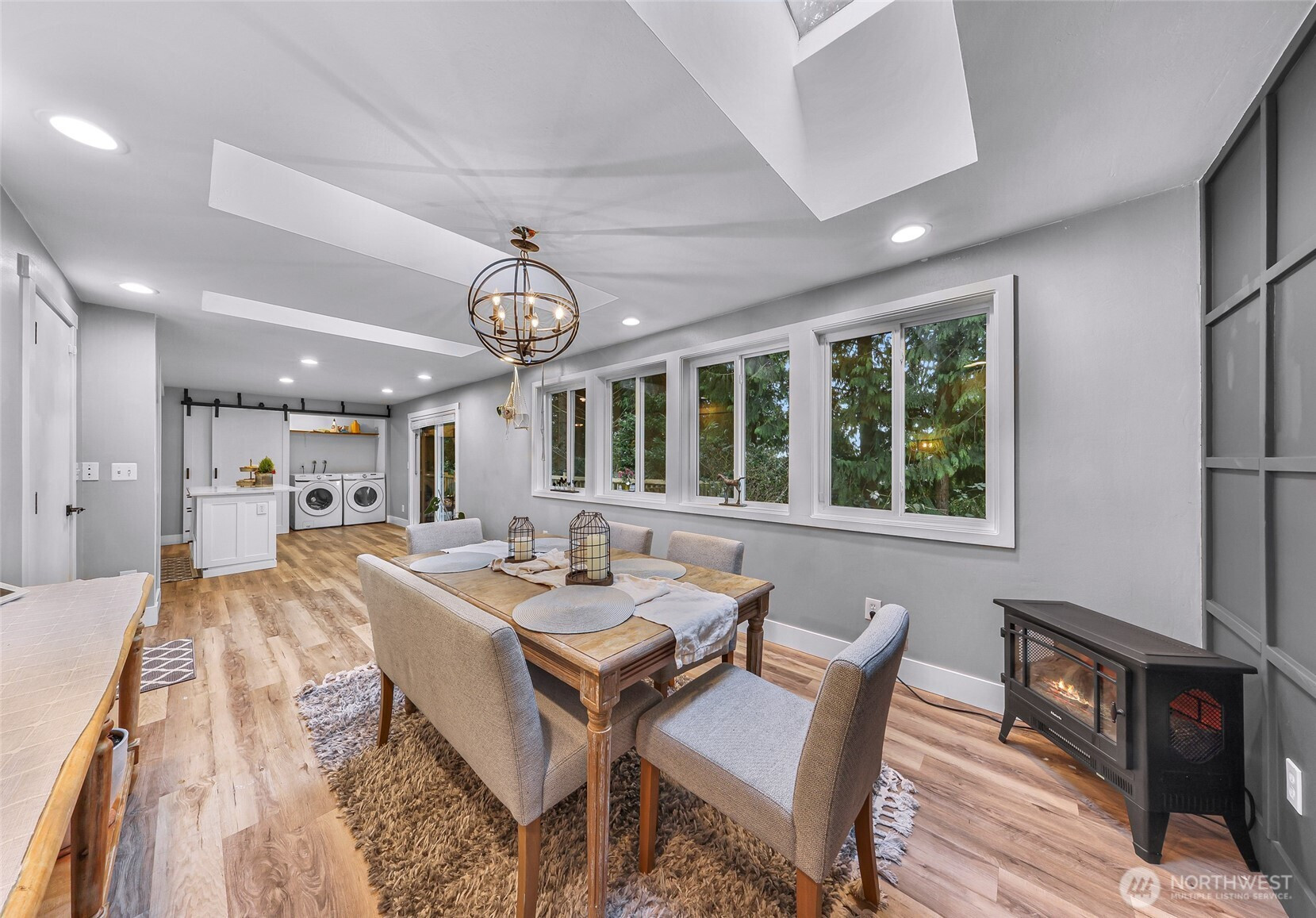 Charming 3-Bedroom Rambler with excellent Sunday Lake Location! Welcome home to this beautifully updated 3-bedroom, 2-bath rambler offering 1,392 sq. ft. of comfortable living space in a quiet, convenient neighborhood near I-5, town and schools. The home is filled with natural light and features a spacious open layout perfect for relaxing or cook up your favorite meals in the fully updated and modern kitchen with stainless steel appliances. This property boasts a spacious 2-car garage, perfect for storage or parking. Inside, you'll find a living room, dining room, and full laundry. Large primary bedroom with updated en-suite bath The home has durable and stylish LVP flooring, adding a touch of elegance. Outside, a fully fenced backyard awaits for outdoor activities, relaxation and room for pets or playing. Experience the perfect blend of comfort and convenience in this move-in ready home. Nearby playground and basketball court. 2 minutes to local school bus stop. Beautiful sunset views. Fresh interior paint. Available fully furnished.