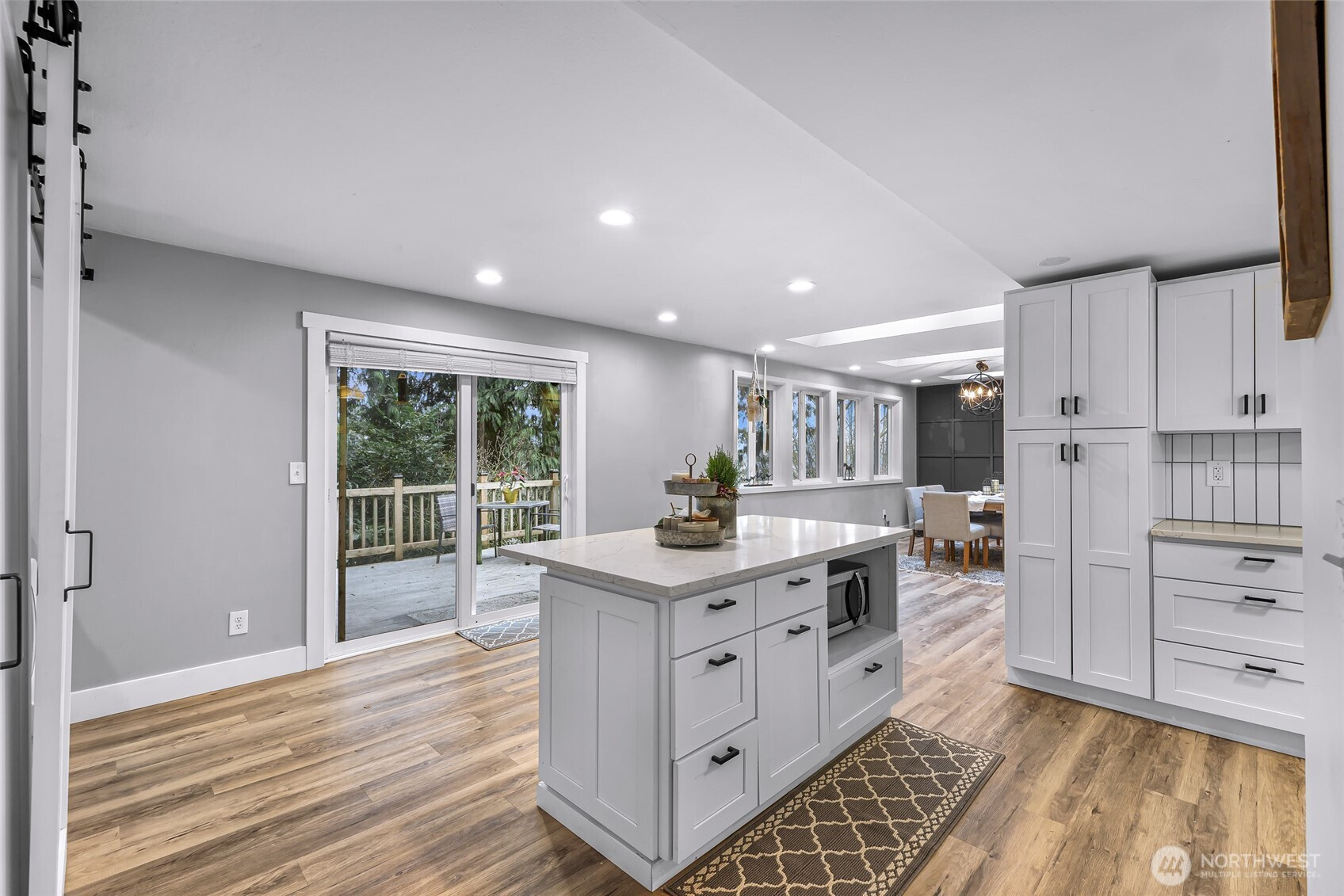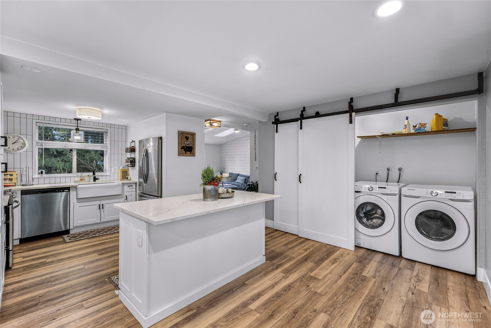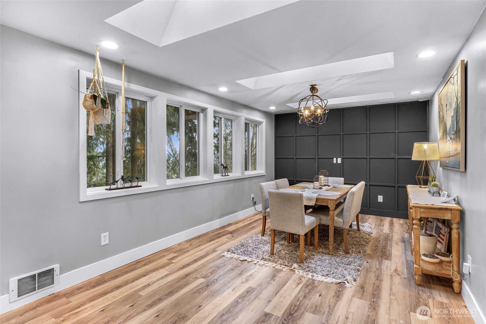 Charming 3-Bedroom Rambler with excellent Sunday Lake Location! Welcome home to this beautifully updated 3-bedroom, 2-bath rambler offering 1,392 sq. ft. of comfortable living space in a quiet, convenient neighborhood near I-5, town and schools. The home is filled with natural light and features a spacious open layout perfect for relaxing or cook up your favorite meals in the fully updated and modern kitchen with stainless steel appliances. This property boasts a spacious 2-car garage, perfect for storage or parking. Inside, you'll find a living room, dining room, and full laundry. Large primary bedroom with updated en-suite bath The home has durable and stylish LVP flooring, adding a touch of elegance. Outside, a fully fenced backyard awaits for outdoor activities, relaxation and room for pets or playing. Experience the perfect blend of comfort and convenience in this move-in ready home. Nearby playground and basketball court. 2 minutes to local school bus stop. Beautiful sunset views. Fresh interior paint. Available fully furnished.