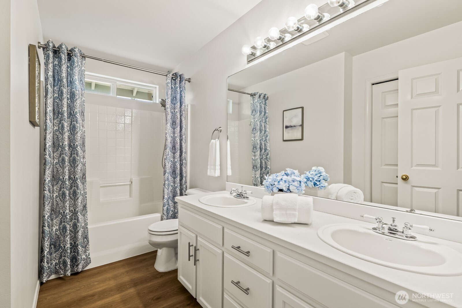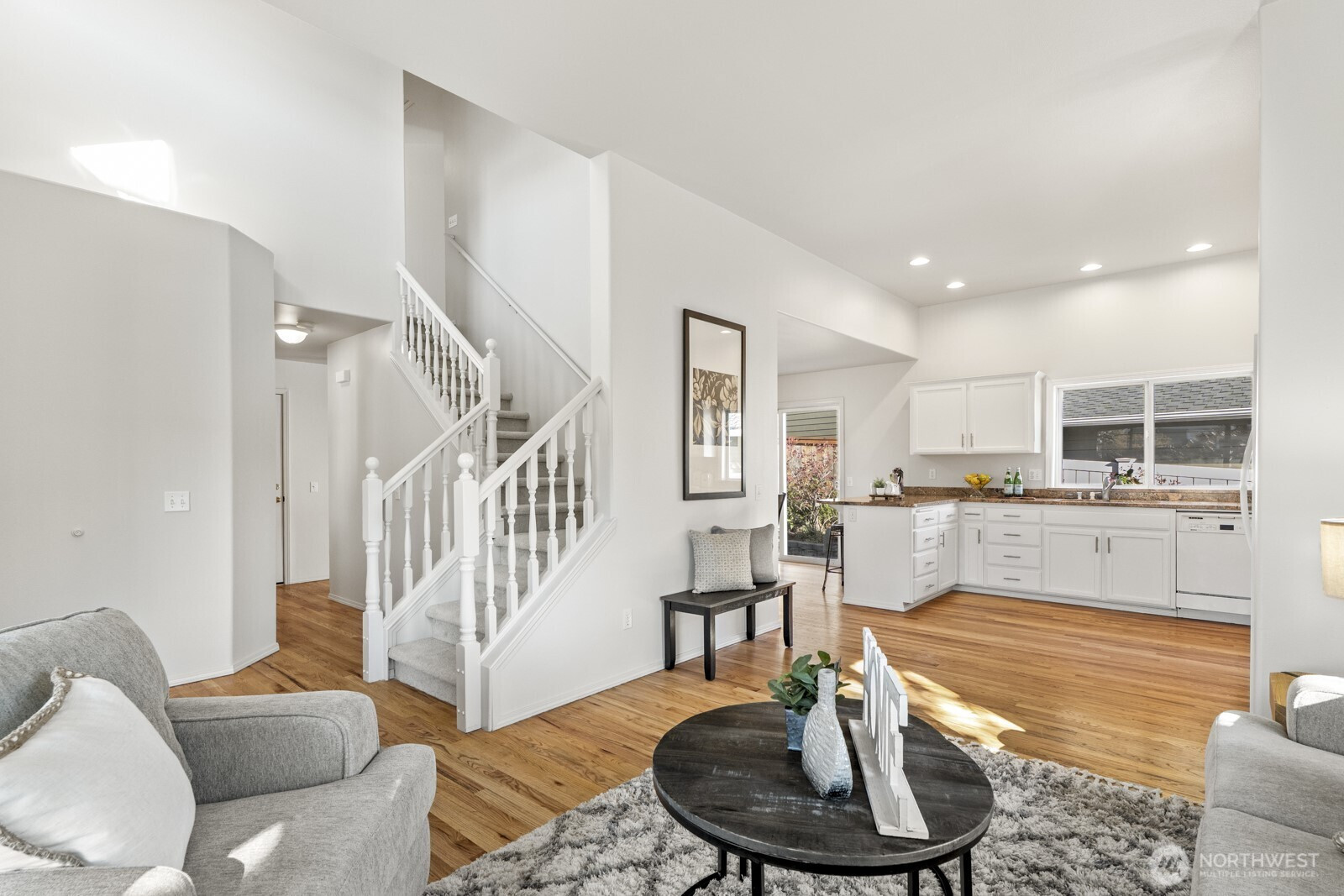 Lovely corner lot in picturesque East Glen! Charming front porch leads to an inviting, open layout with vaulted ceilings, loads of natural light, fresh paint, newly refinished hardwoods, new carpet, granite counters, and more. Connected living spaces perfect for quiet evenings at home, or hosting holiday gatherings. Upstairs, you'll find four bedrooms, including a spacious primary with en suite bath & walk-in closet. Fenced yard with patio, adorable play house, raised beds and plenty of gardening and/or play area. Sidewalk neighborhood surrounded by greenbelt and only steps to Forsgren Park & Shelton View Forest trails. Easy access to I5, I405, and Bothell & Kenmore shopping & dining. Acclaimed Northshore schools. Don’t miss out. Hurry!!