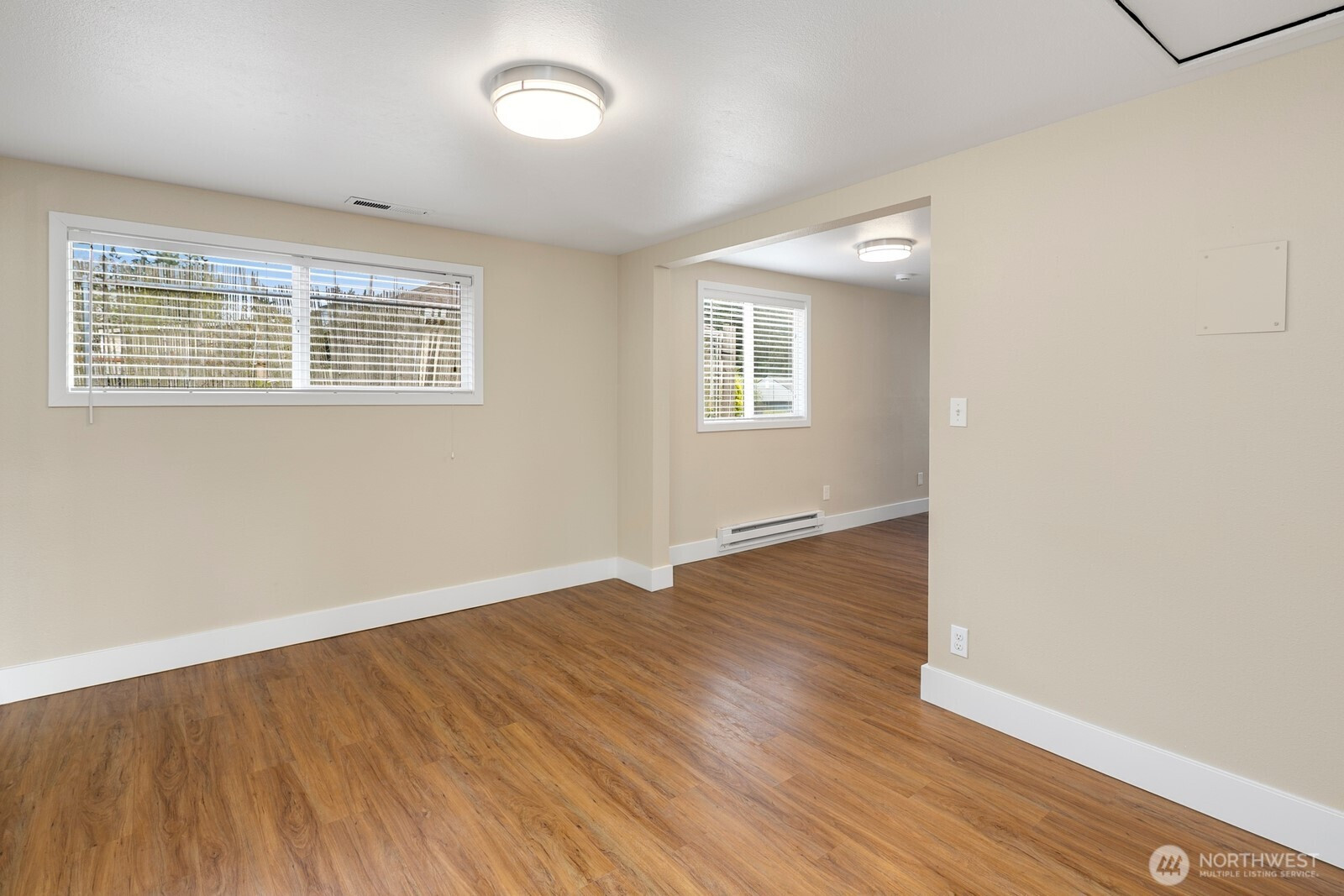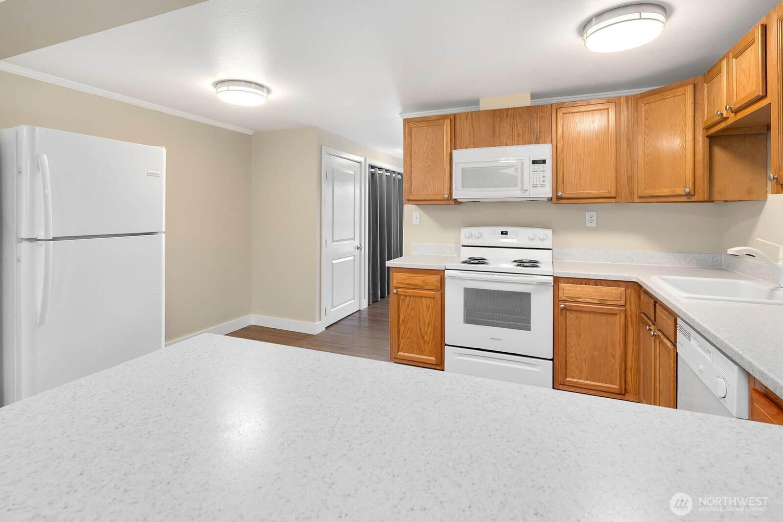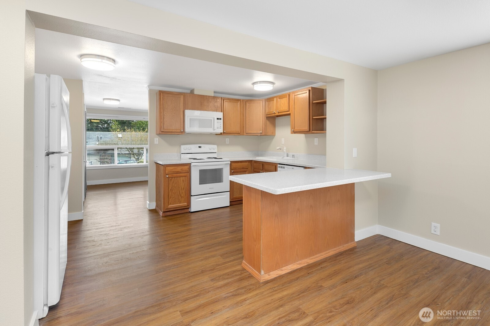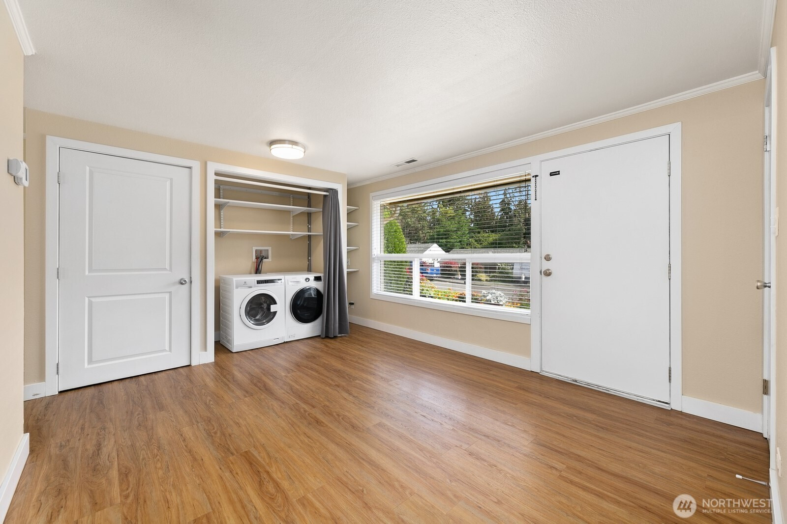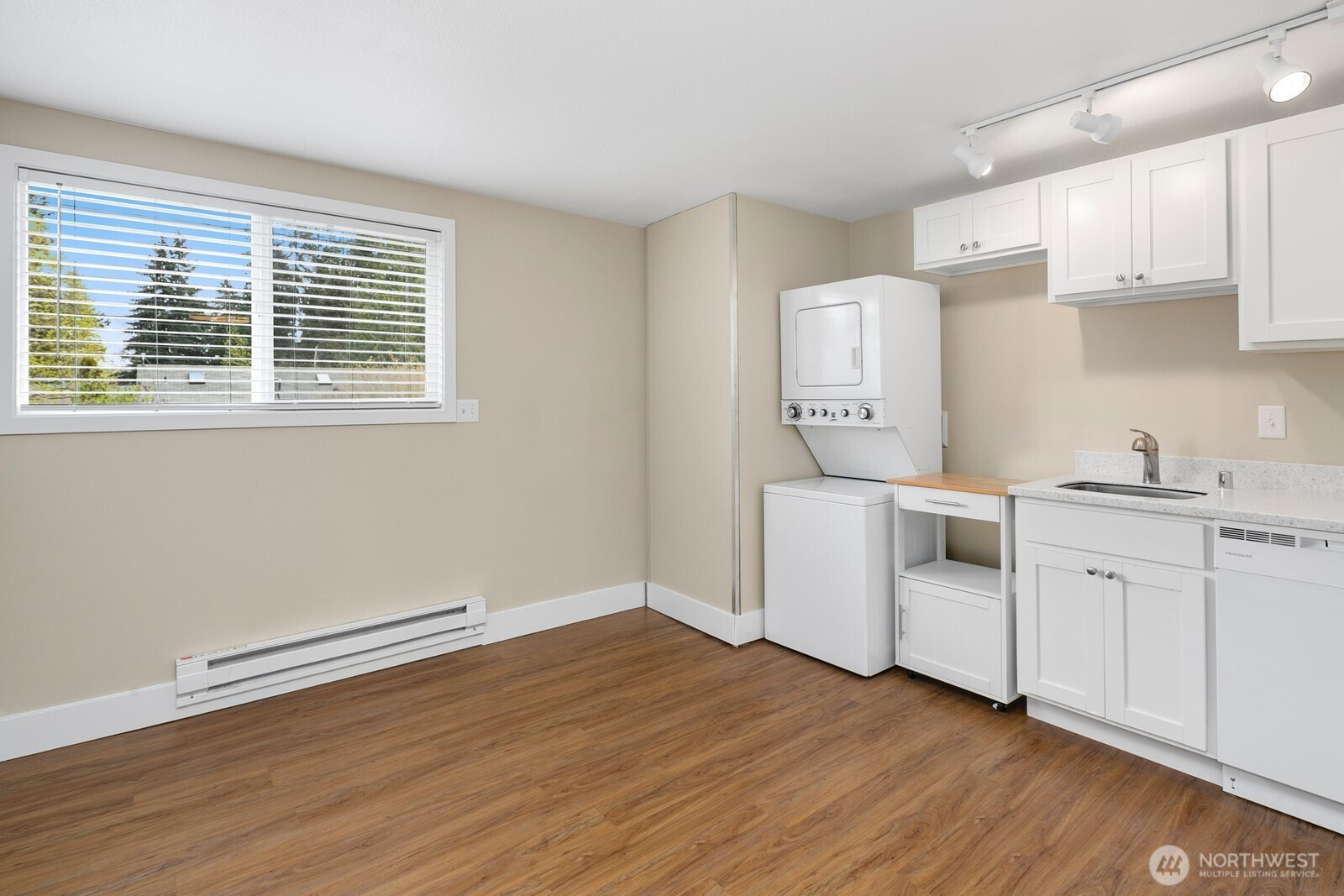 Versatile 4 bed, 2 bath home offering flexibility, space, and future potential. The main living area features an open kitchen and living space, ideal for everyday living and entertaining, along with a full-size washer and dryer. A standout feature of the home is the expansive secondary living area complete with its own kitchenette, bathroom, and separate washer/dryer—perfect for a primary suite, multi-generational living, guest space, home office, or more. Situated on a large quarter acre lot with a huge backyard, this property offers room to enjoy now while also providing long-term upside. Conveniently located near the Mountlake Terrace Transit Station with easy access to I-5, and just minutes to parks, the library, and other local amenities. Located within the Town Center (TC2) zoning district, allowing for potential 4-6 story residential and mixed-use development (buyer to verify). A rare combination of move-in ready living, flexible layout, and future potential in a growing area.