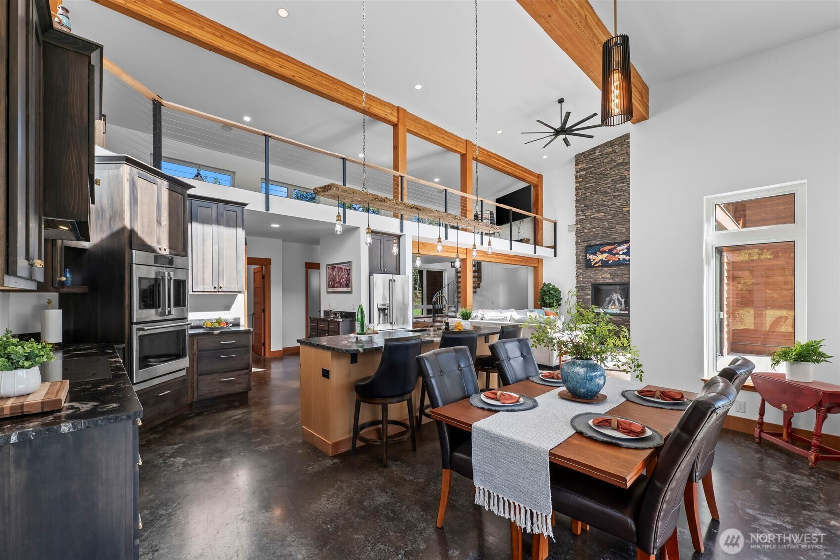 You'll feel at home the moment you walk in. Discover this stunning custom PNW modern contemporary 3 bedroom, 2.5 bath home with main level living designed for comfort and style. Step inside to soaring ceilings, natural wood beam accents, and light-filled open spaces that feel both warm and elevated. The kitchen impresses with a butler's pantry, granite countertops, and premium stainless appliances. Radiant heated floors run throughout the entire home as well as the garage. Outside, unwind on the expansive Trex deck, already plumbed for a hot tub and outdoor kitchen. Enjoy peaceful surroundings just minutes from your own private community beach, the casino, and easy highway access. Set on five peaceful acres, homes like this are a rare find.