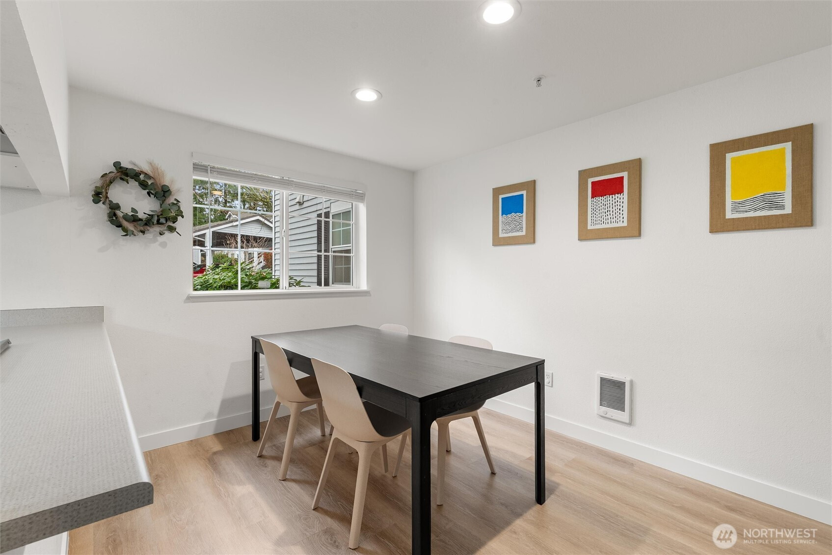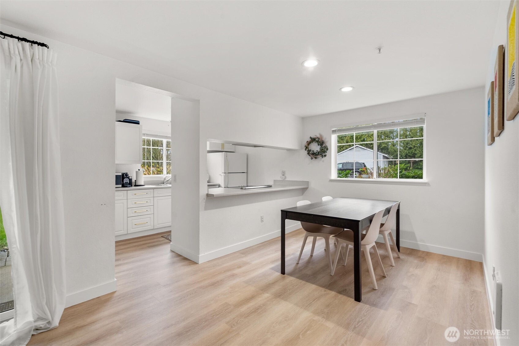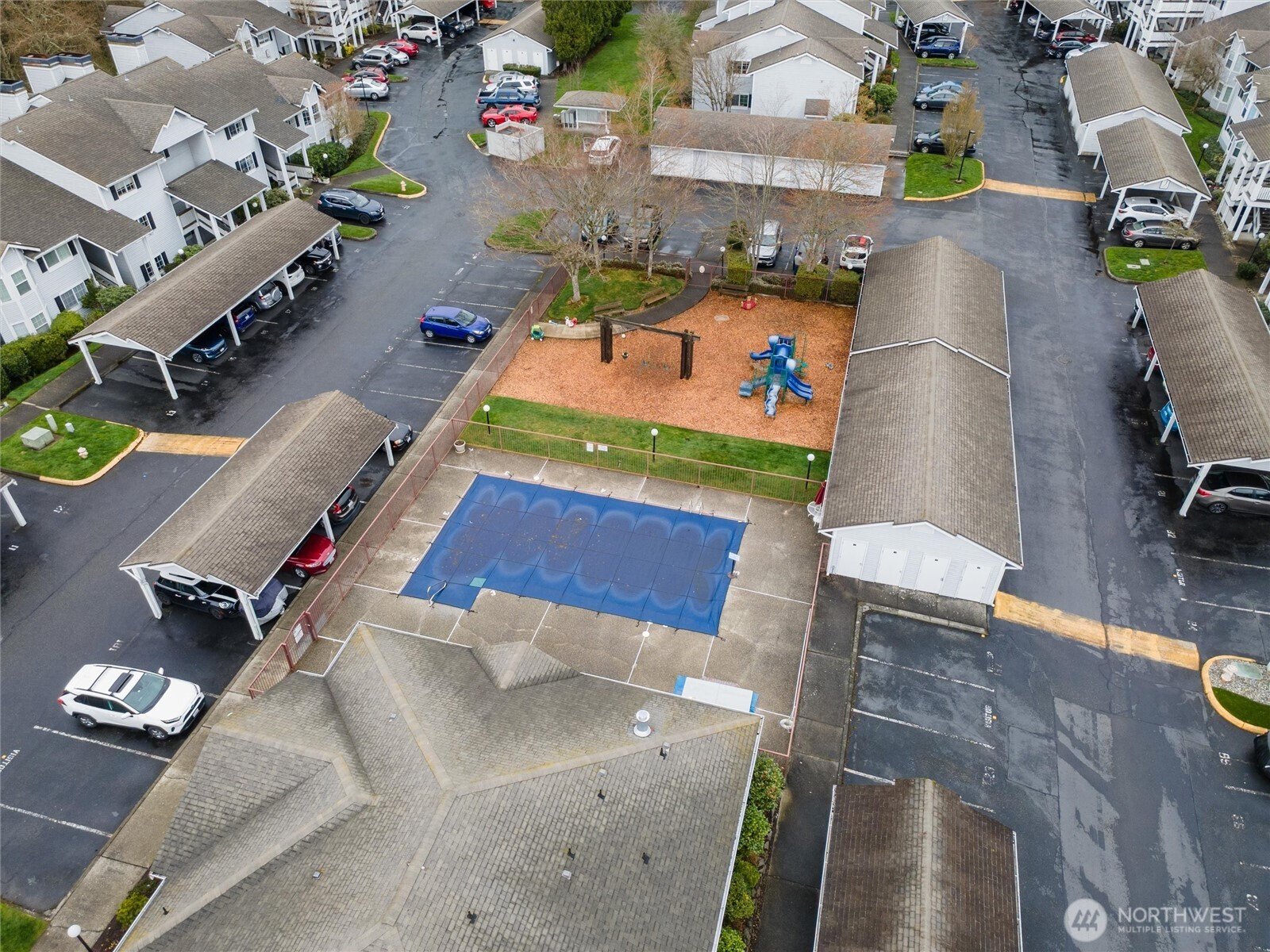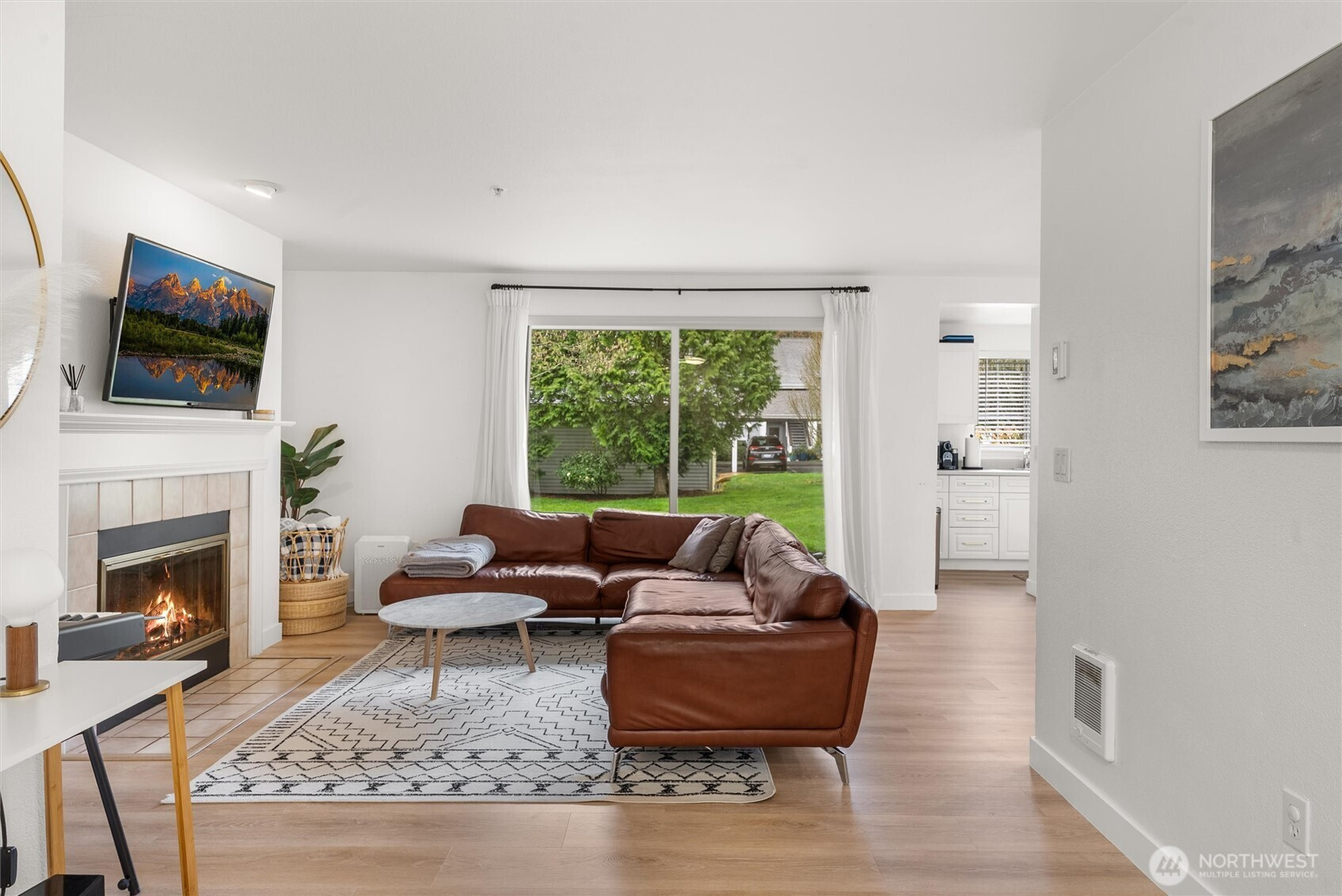 Beautiful & updated 3-bedroom condo located in the desirable Markland Woods community! This ground-floor corner unit offers space, comfort, and recent updates. The spacious living room opens to the dining area and features a cozy fireplace. Recent improvements include new luxury vinyl plank flooring in the main living areas, kitchen, and bathrooms, updated trim, and brand-new bathroom mirrors and light fixtures, giving the home a refreshed, move-in-ready feel. The kitchen offers plenty of cabinet storage with convenient slide-out shelves. The primary bedroom features a walk-in closet and en-suite bathroom. Generously sized bedrooms provide flexibility for guests or home office space. Additional highlights include a spacious laundry room with cabinets and freezer, 1-car garage, 1-car carport, and extra storage by the garage. Enjoy the ground-floor corner location with a patio that backs to an open area. Strong HOA with dues that include water, sewer, and garbage. Community amenities include an outdoor pool, cabana, gym, playground, sauna, and more. Conveniently located near shopping, restaurants, parks, and everyday amenities. Just minutes to Mountlake Terrace & Lynnwood Transit Centers for easy commuting. Welcome home!