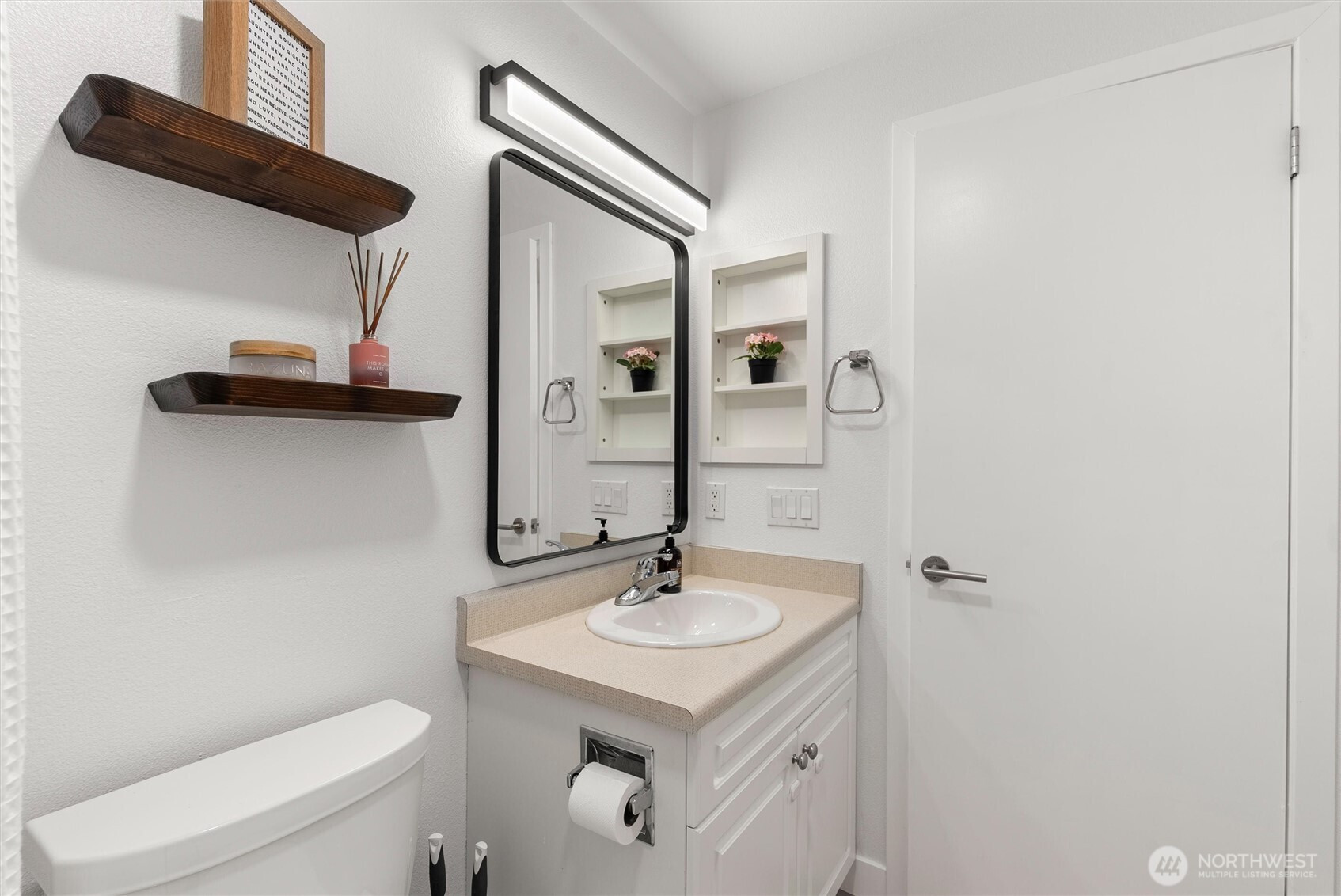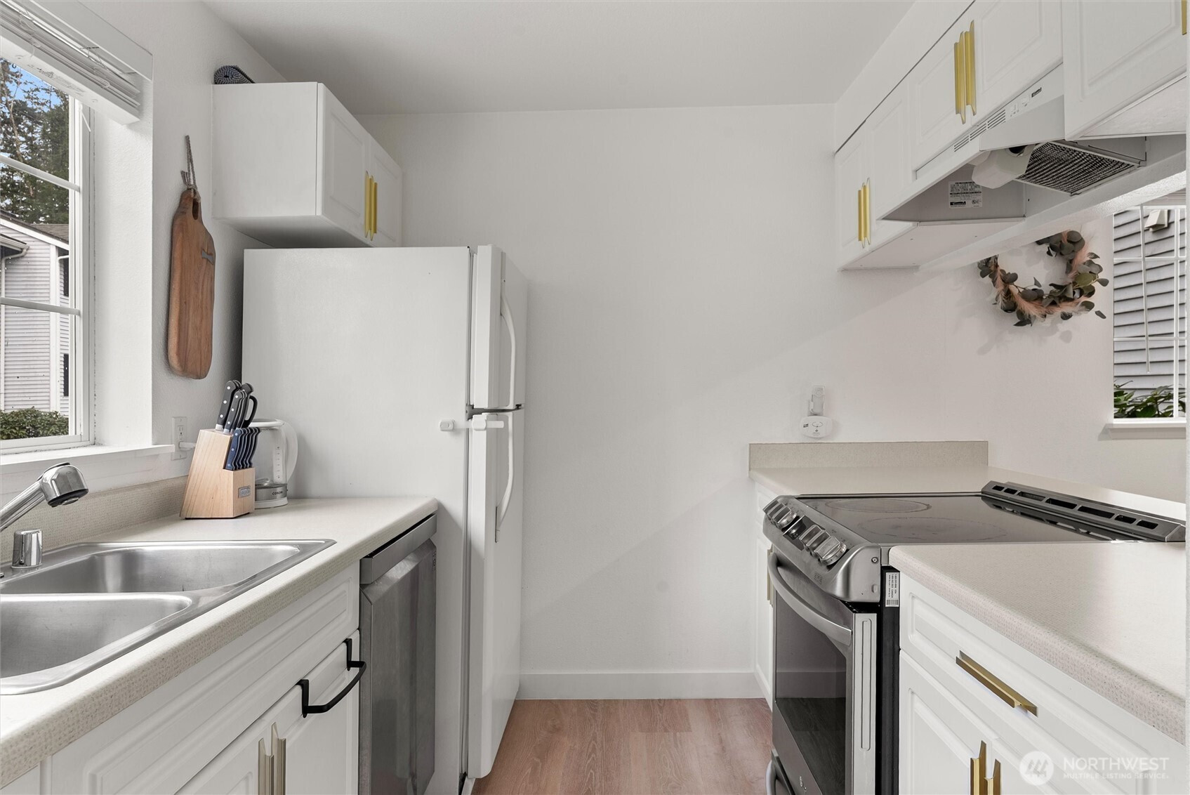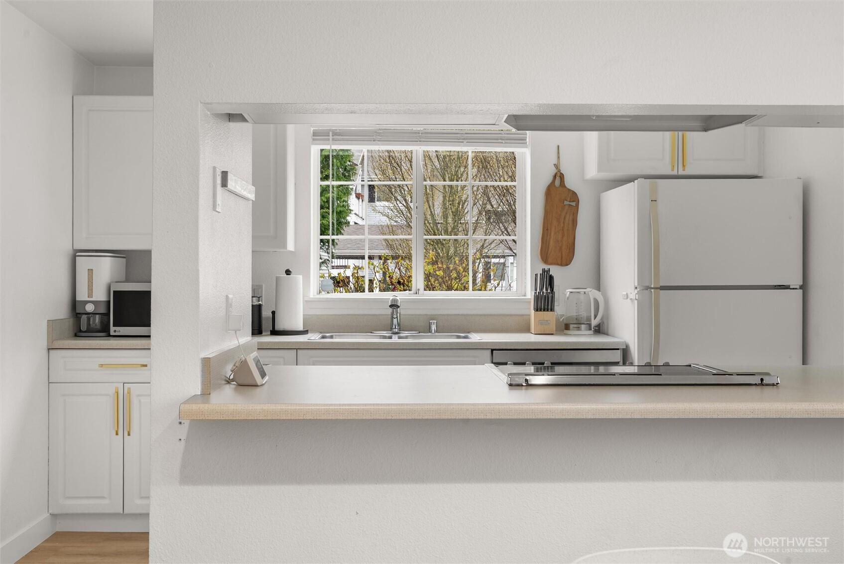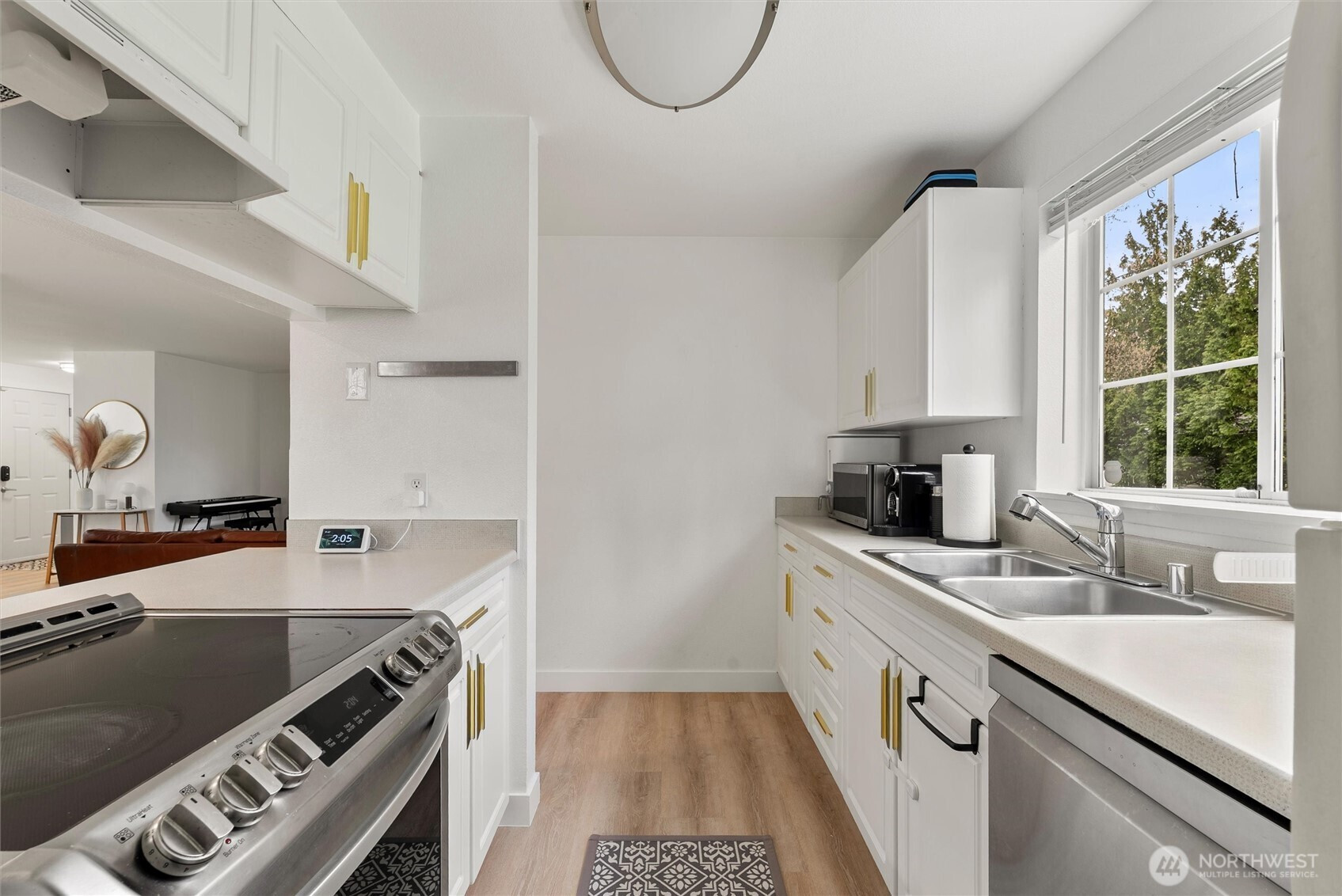 Beautiful & updated 3-bedroom condo located in the desirable Markland Woods community! This ground-floor corner unit offers space, comfort, and recent updates. The spacious living room opens to the dining area and features a cozy fireplace. Recent improvements include new luxury vinyl plank flooring in the main living areas, kitchen, and bathrooms, updated trim, and brand-new bathroom mirrors and light fixtures, giving the home a refreshed, move-in-ready feel. The kitchen offers plenty of cabinet storage with convenient slide-out shelves. The primary bedroom features a walk-in closet and en-suite bathroom. Generously sized bedrooms provide flexibility for guests or home office space. Additional highlights include a spacious laundry room with cabinets and freezer, 1-car garage, 1-car carport, and extra storage by the garage. Enjoy the ground-floor corner location with a patio that backs to an open area. Strong HOA with dues that include water, sewer, and garbage. Community amenities include an outdoor pool, cabana, gym, playground, sauna, and more. Conveniently located near shopping, restaurants, parks, and everyday amenities. Just minutes to Mountlake Terrace & Lynnwood Transit Centers for easy commuting. Welcome home!