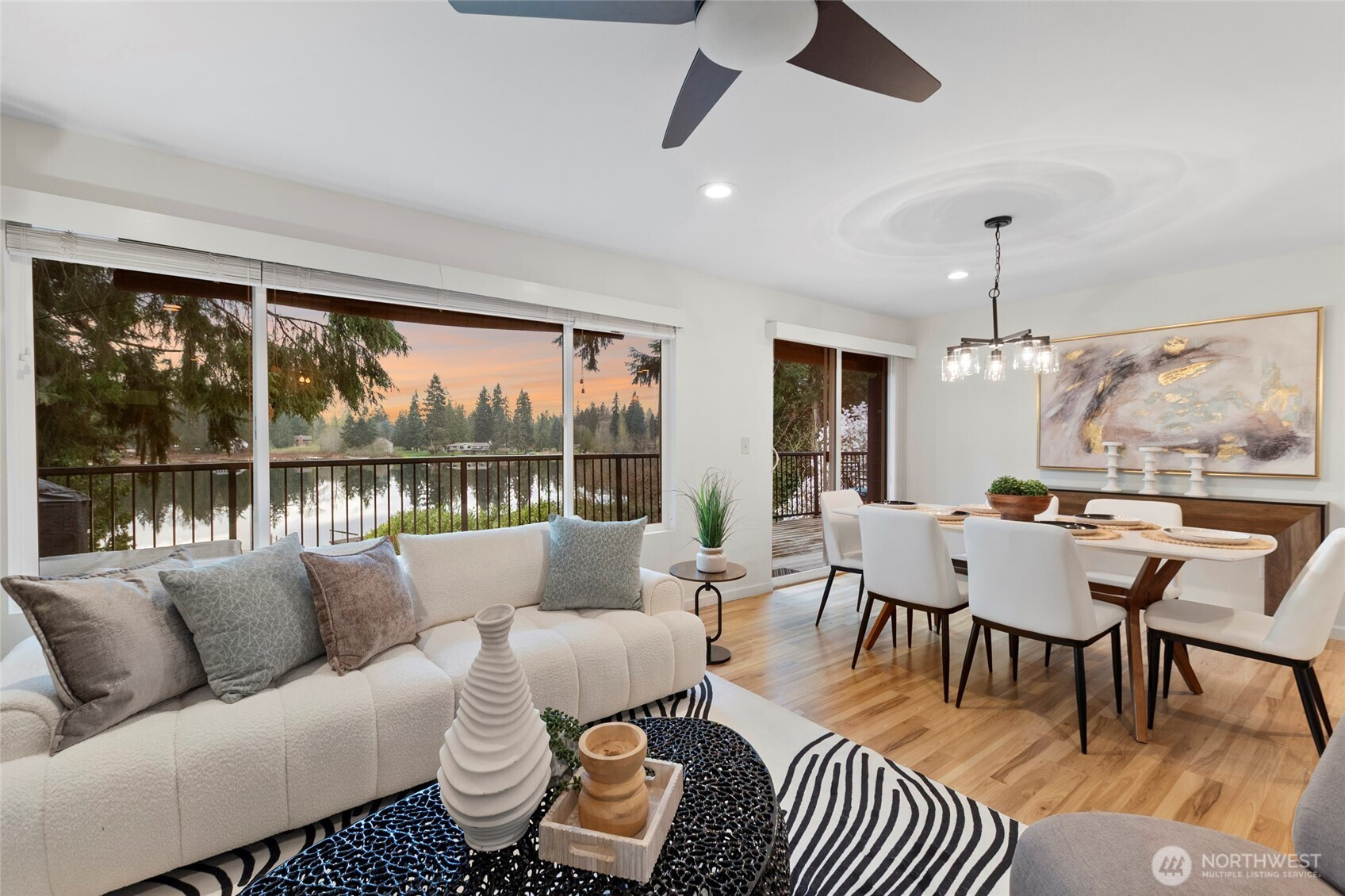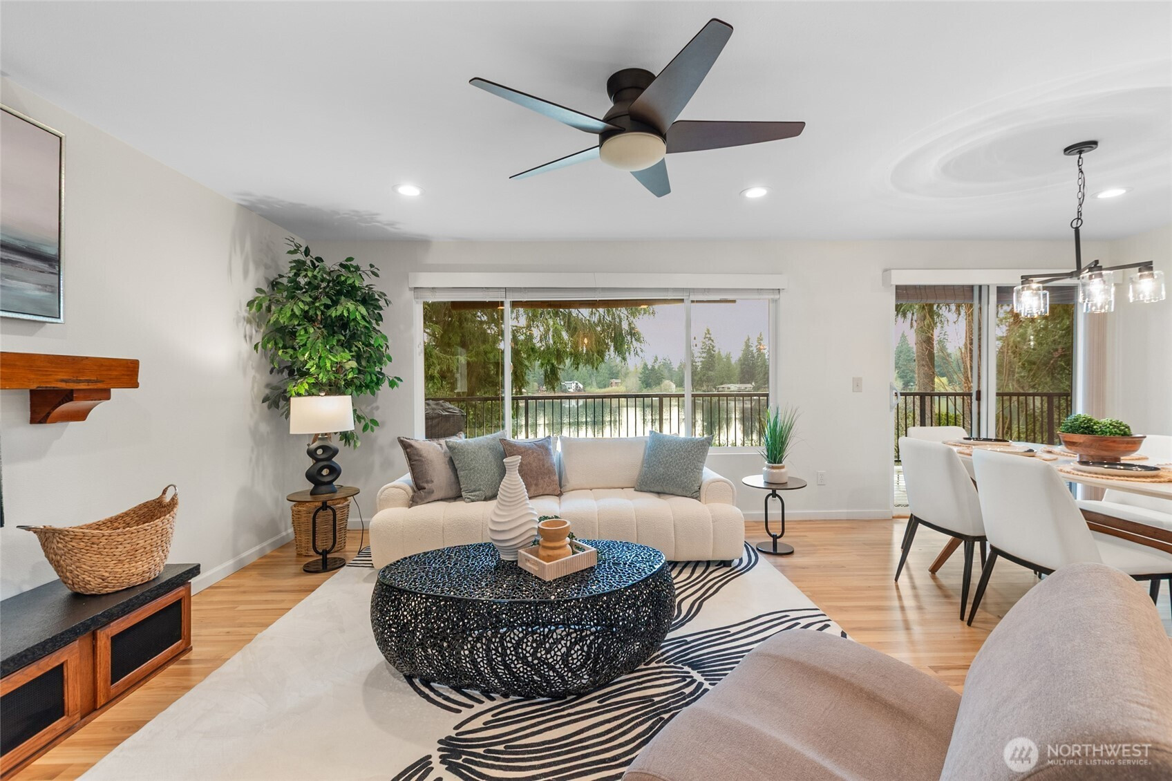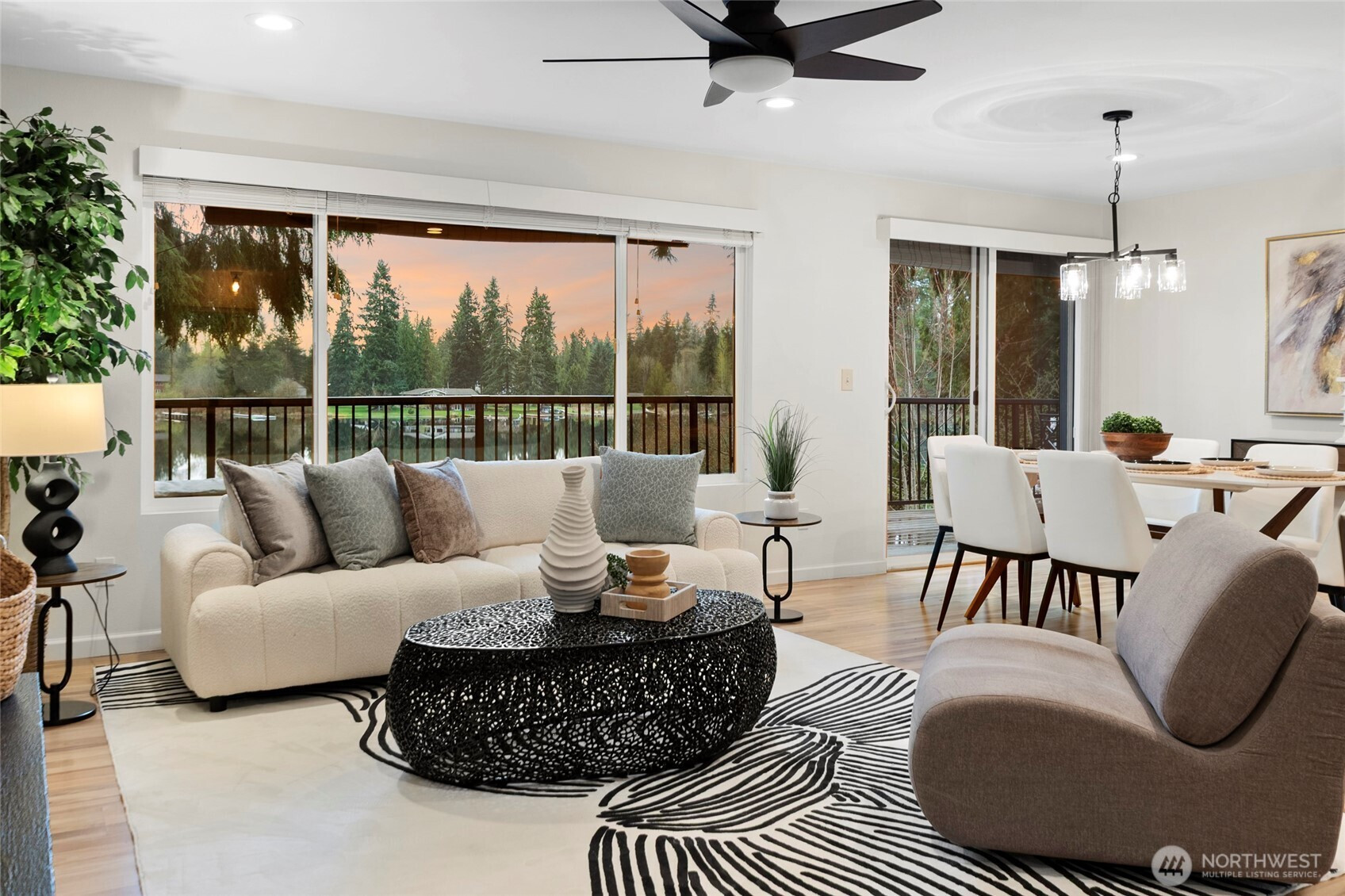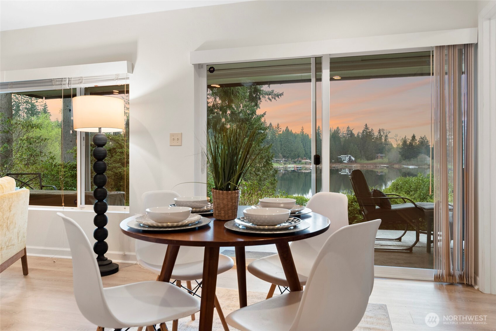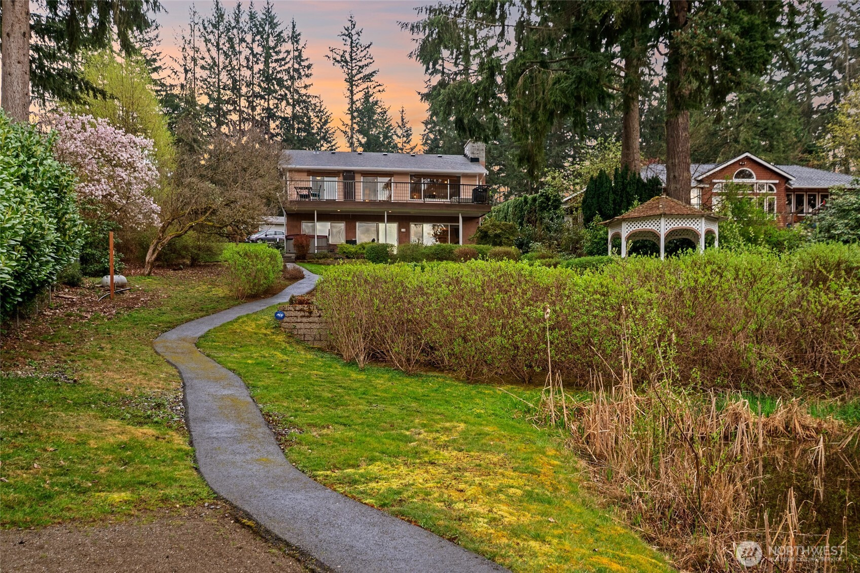Waterfront retreat on Echo Lake with sweeping lake views from the main level, lower level, primary suite, and guest bedroom. Tucked away in a peaceful, park-like setting, this impeccably maintained home offers a flexible layout ideal for ADU, multi-gen living, or Airbnb potential. Freshly painted, pre-inspected, and thoughtfully updated throughout. The main level features a full kitchen, light-filled living spaces, and a versatile flex or den perfect for a home office, media room, or guest retreat. The lower level offers additional living space with a rec room, partial kitchen, 2nd laundry room with storage, and private living potential. Designed for effortless indoor-outdoor living, enjoy expansive upper and lower decks, Trex decking (upper deck & dock) , and paved path leading to the water’s edge. Unwind in the hot tub on the lower deck while taking in stunning sunset views, or relax in the gazebo set closer to the lake. Evenings are best spent around the firepit, surrounded by lush landscaping on a beautifully maintained 34,412 sq ft lot. Two powered outbuildings offer added flexibility for hobbies or storage. Echo Lake offers a true recreational lifestyle with boating (non-gas motors), fishing, kayaking, paddleboarding, and swimming. Echo Falls Golf Course is just 3 miles away, with wineries, restaurants, and shopping nearby, offering the perfect balance of privacy and convenience. A private lakeside retreat where your best summer begins! 100% move-in Ready! A Must See!