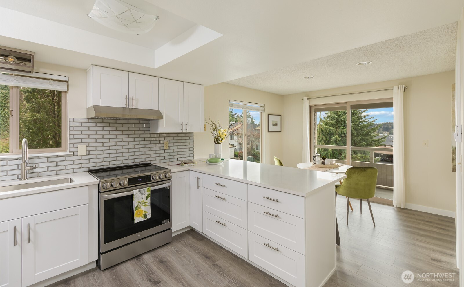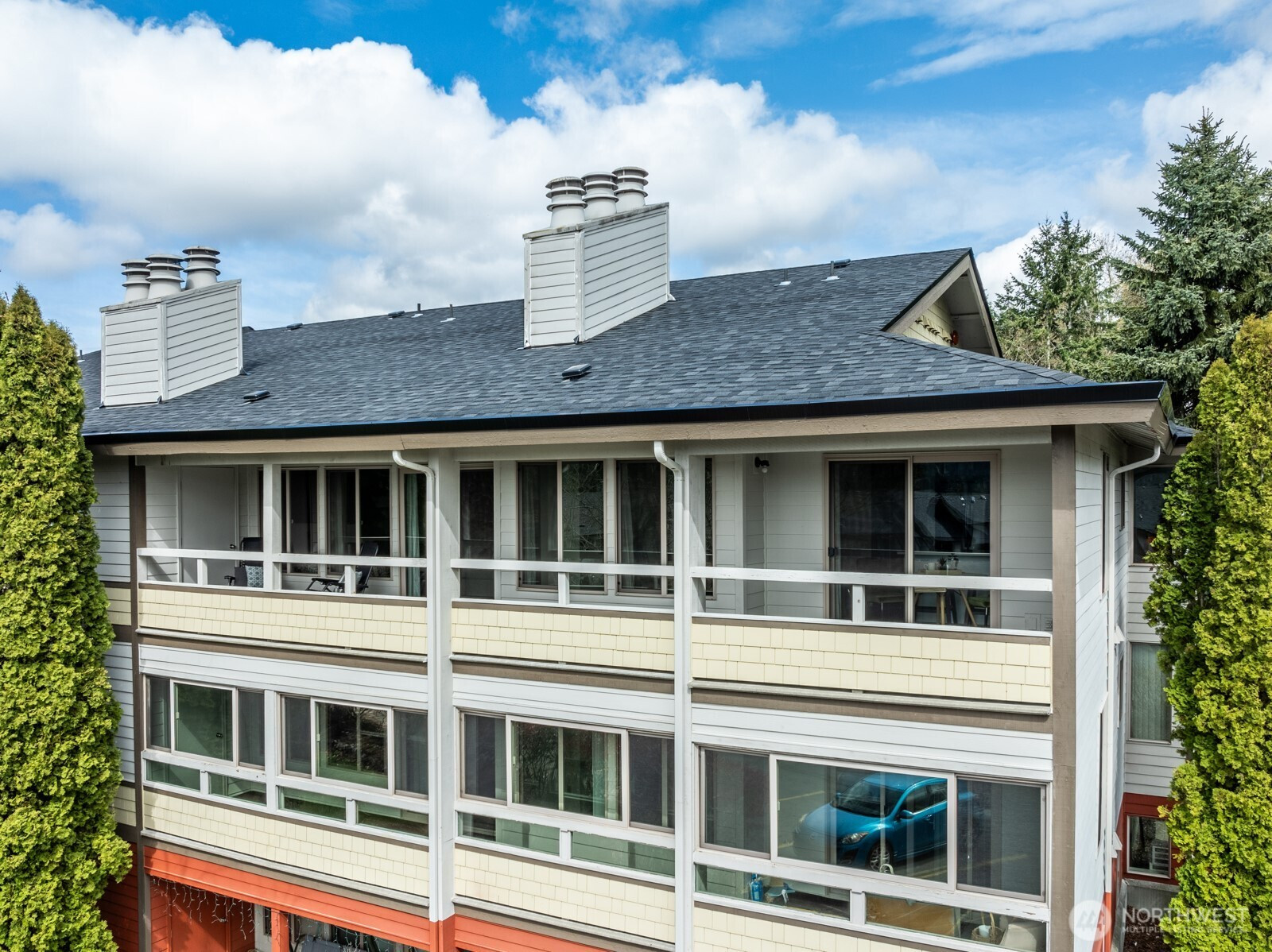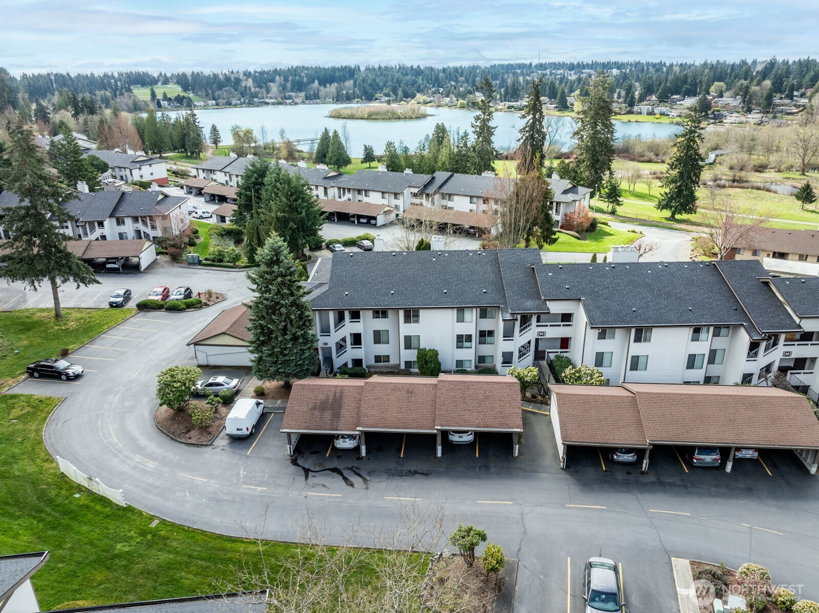 Top-floor corner unit with Lake Ballinger views minutes from the new Mountlake Terrace light rail station. This 2-bed condo with a dedicated office is ideal for both commuters and remote workers. Large windows, and a private balcony bring in natural light and showcase the peaceful lake setting. The kitchen and bathroom have been tastefully updated with modern finishes. Enjoy a spacious 1,422 sq ft layout with flexible living and work-from-home options. One assigned covered parking spot plus plenty of guest parking. Community amenities include pool, clubhouse, walking paths, and well-maintained grounds. Easy access to I-5, transit, shops, and dining. Quiet, move-in ready, and loaded with value in a prime location near transit connections.