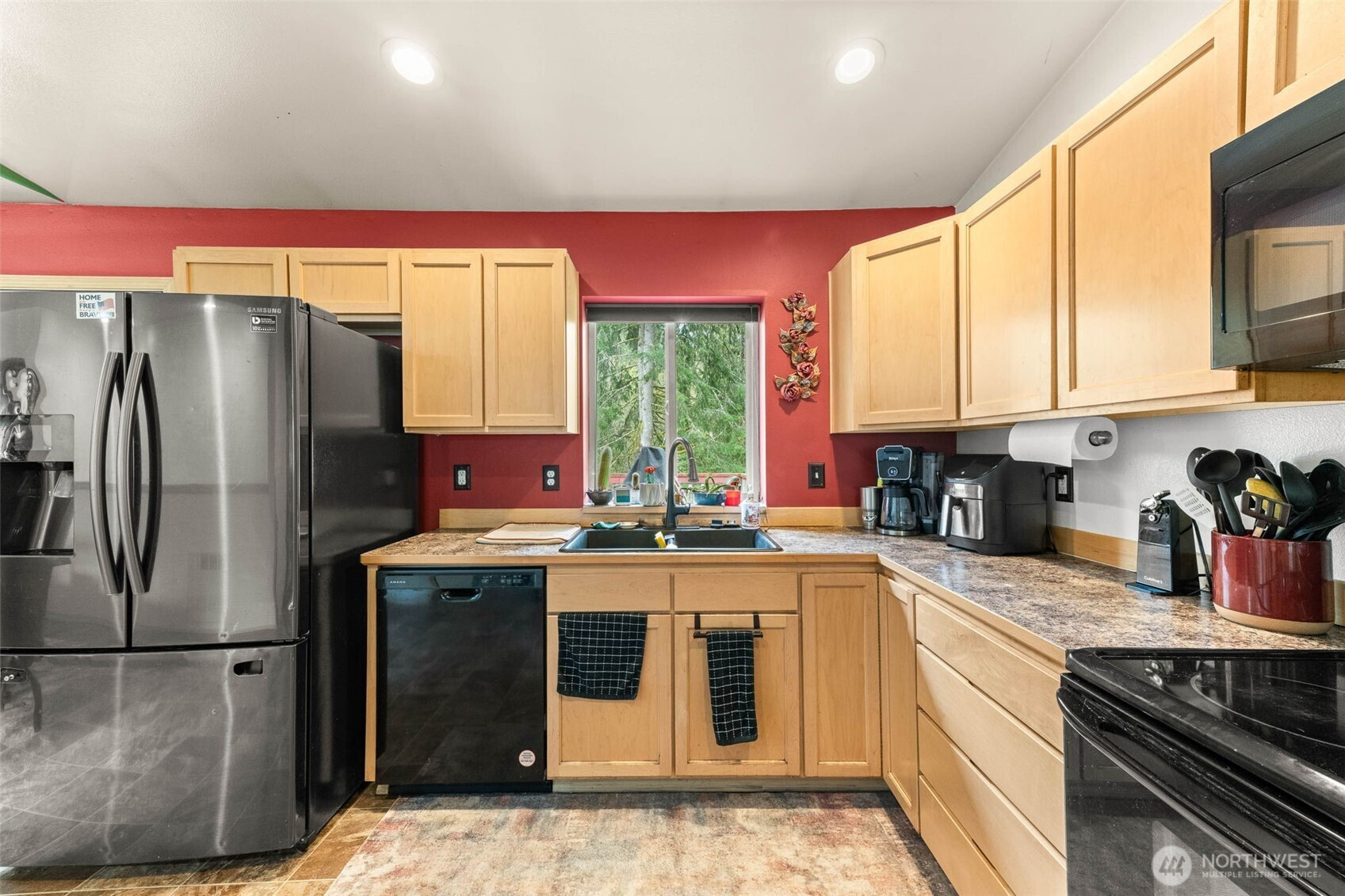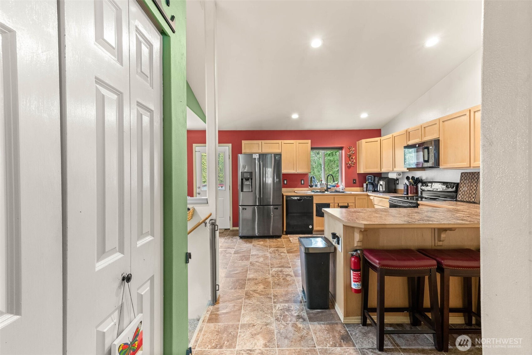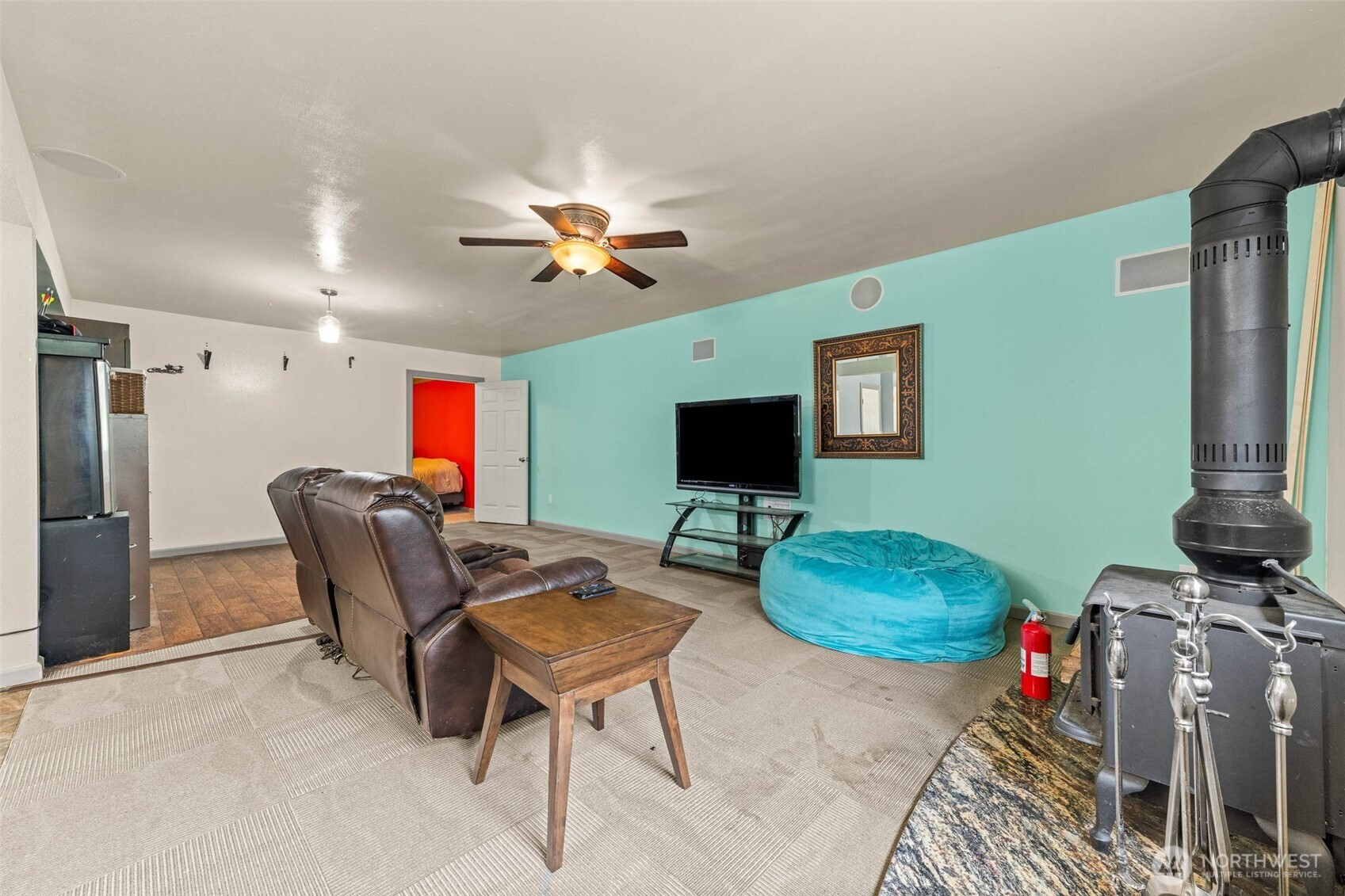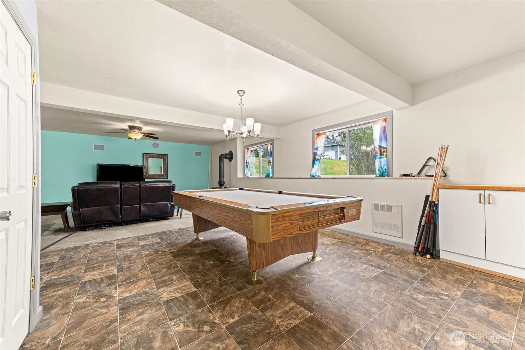 Step into a rare blend of space, style, and versatility with this expansive 2,880 sq ft daylight rambler tucked on a private acre at the end of a quiet cul-de-sac. Designed for the way you live today, this home delivers an open-concept flow anchored by a large, functional kitchen and dining space—perfect for hosting, gathering, and everyday living. Vaulted ceilings elevate the main level, while a cozy wood-burning stove adds warmth and character.The main floor features two spacious bedrooms plus a private primary suite with its own bath, creating a comfortable and intuitive layout. Downstairs unlocks a whole new level of opportunity with a massive rec room, second woodstove, dedicated office, fourth bedroom, and full bath—ideal for multi-generational living, work-from-home flexibility, or entertaining.Step outside and unwind on the elevated back deck overlooking your own secluded, tree-lined oasis complete with a fire pit and gazebo—your personal escape just steps from home. Additional highlights include a massive storage area under the garage with exterior access, RV parking, room for all your toys, and generator-ready wiring for peace of mind.With a newer roof (2021), newer water heater (2020), and extras like firewood and a pool table included, this home is dialed in and ready to impress. Space, privacy, and lifestyle—this one delivers it all.
