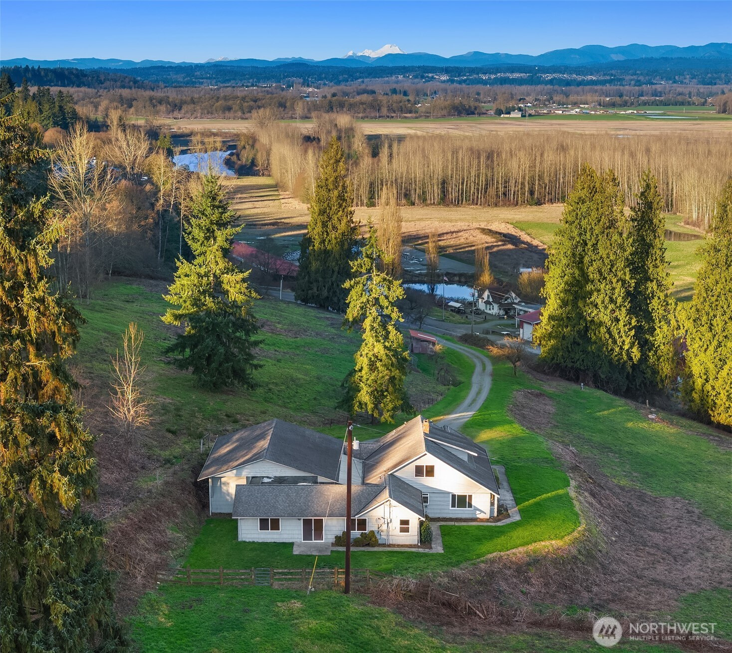 Expansive Acreage, Panoramic Horizons, Limitless Possibility. A rare 18.72-acre Monroe legacy estate set against sweeping Cascade views from Mount Baker to Mount Rainier. Open pastures and fertile ground create a living landscape rich with possibility. Held by the same family for decades, this property blends history, stewardship, and future opportunity.The one-and-a-half–story home offers warmth and versatility, highlighted by a generous attached reception hall ideal for gatherings, retreats, creative work, or extended living. Expansive windows frame panoramic sunrises and sunsets across rolling countryside.The scale and configuration present potential for multiple lots, offering flexibility for investment, development, or the creation of a private compound. Ideally suited for multigenerational living, additional residences or guest dwellings could provide independence and privacy while sharing a connected estate setting. An extraordinary canvas of land, lifestyle, and long-term potential.