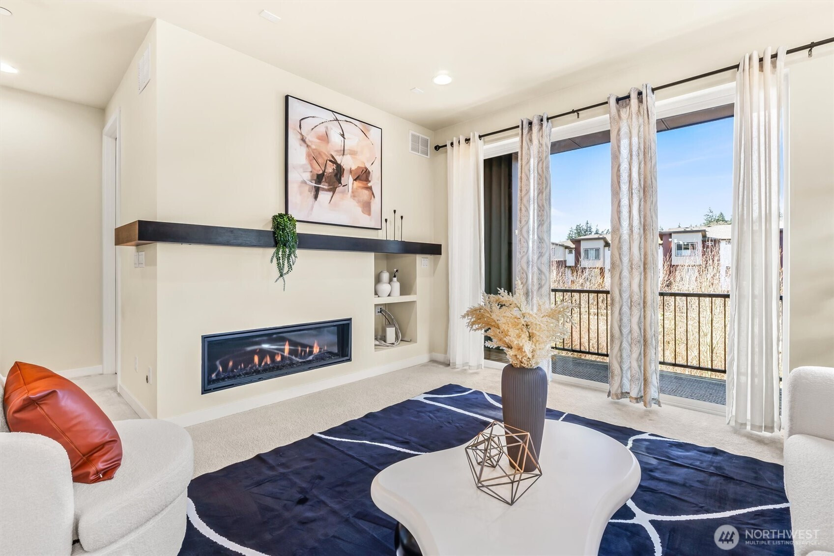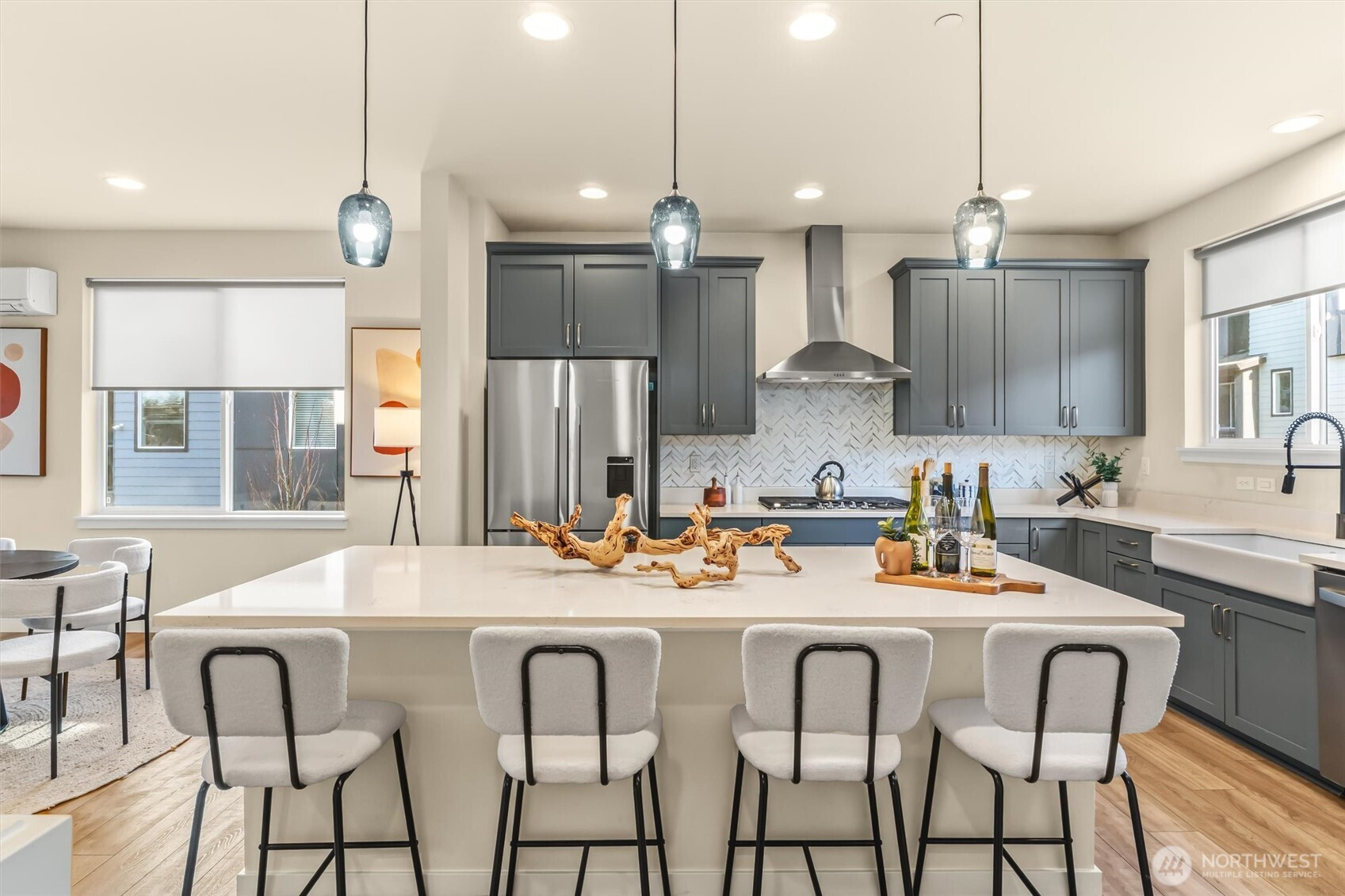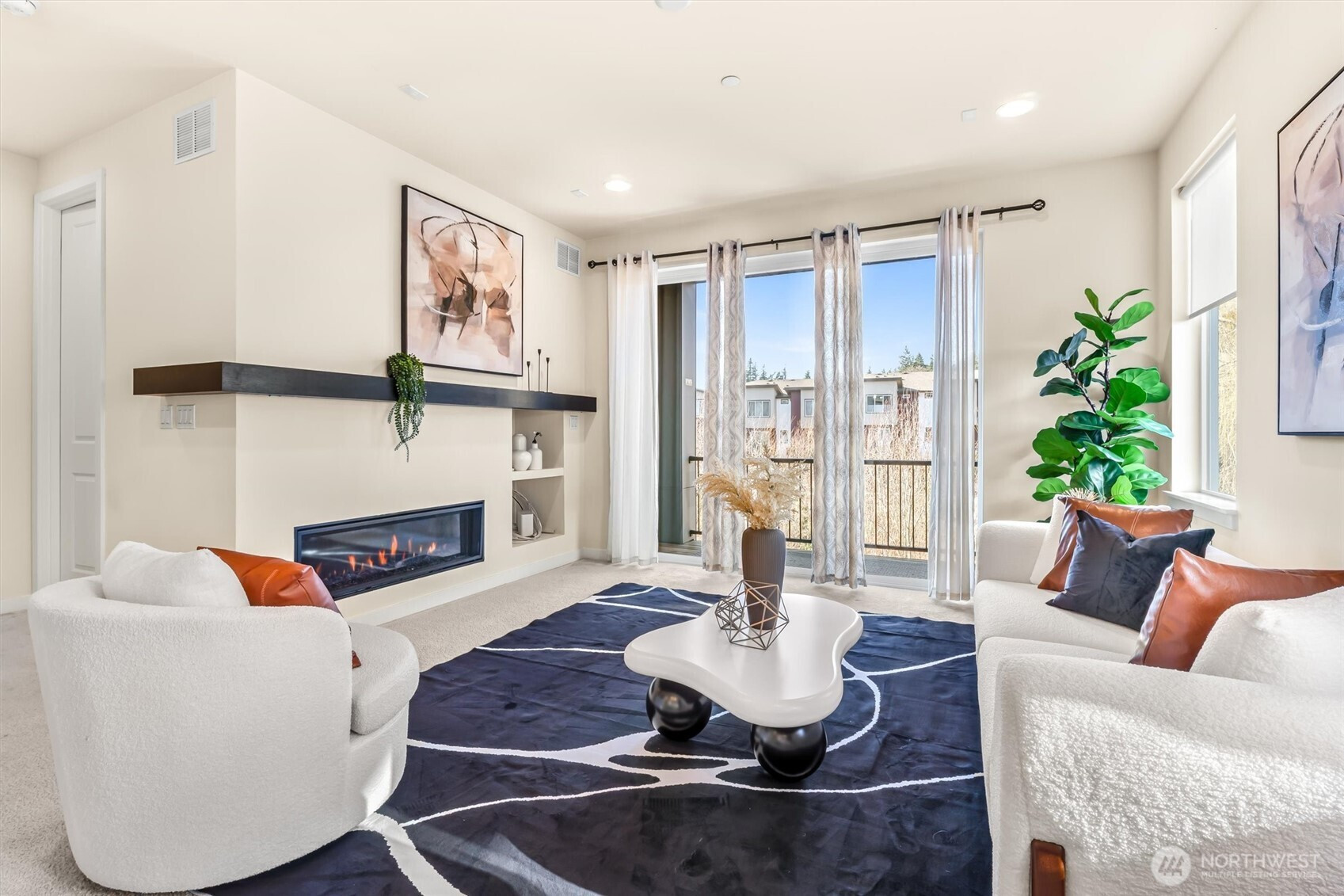 Don’t miss this stunning 4-bedroom, 3.25-bath townhome in sought-after Urbane Village II, right in the heart of Bothell. Spacious 2,249 sq ft, this light-filled East West facing home offers a highly functional layout with thoughtful upgrades throughout. The main level features an open-concept living and dining area, perfect for entertaining, with engineered hardwood floors, a cozy gas fireplace, and abundant natural light. The chef’s kitchen boasts beautiful sage green cabinetry, upgraded quartz counters, stainless steel appliances, an oversized island with ample storage. Step out to the covered deck ideal for year-round entertaining with privacy overseeing GREENBELT. A guest bedroom on the lower level includes an attached ¾ bath, making it perfect for visitors or a private home office. Upstairs, you’ll find two additional spacious bedrooms, a laundry area, and a luxurious primary suite featuring vaulted ceilings, a spa-inspired bath & a custom walk-in closet by California Closets. Highlights include custom desk/work area Ring doorbell, Wi-Fi–enabled garage door opener & front door lock, plus an energy-efficient Mini split A/C system. In ceiling surround sound wiring. EV car charger. POE for wifi on each level. 2-car garage & extra storage. Mins from Bothell Landing, UW Bothell, parks, dining, & 405—perfect blend of modern living and unbeatable location. No rental cap. Top rated NSD schools Shelton View Elementary. Low Hoa. Fee simple townhome you own the land. Welcome Home.