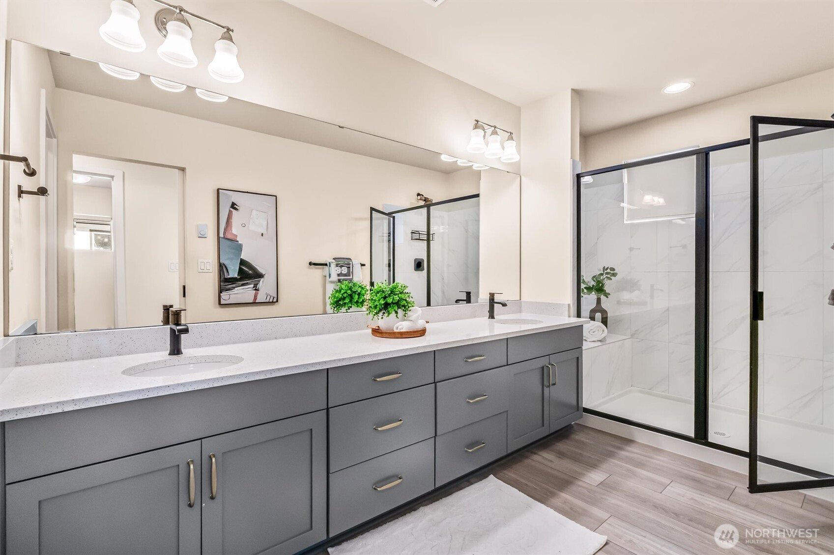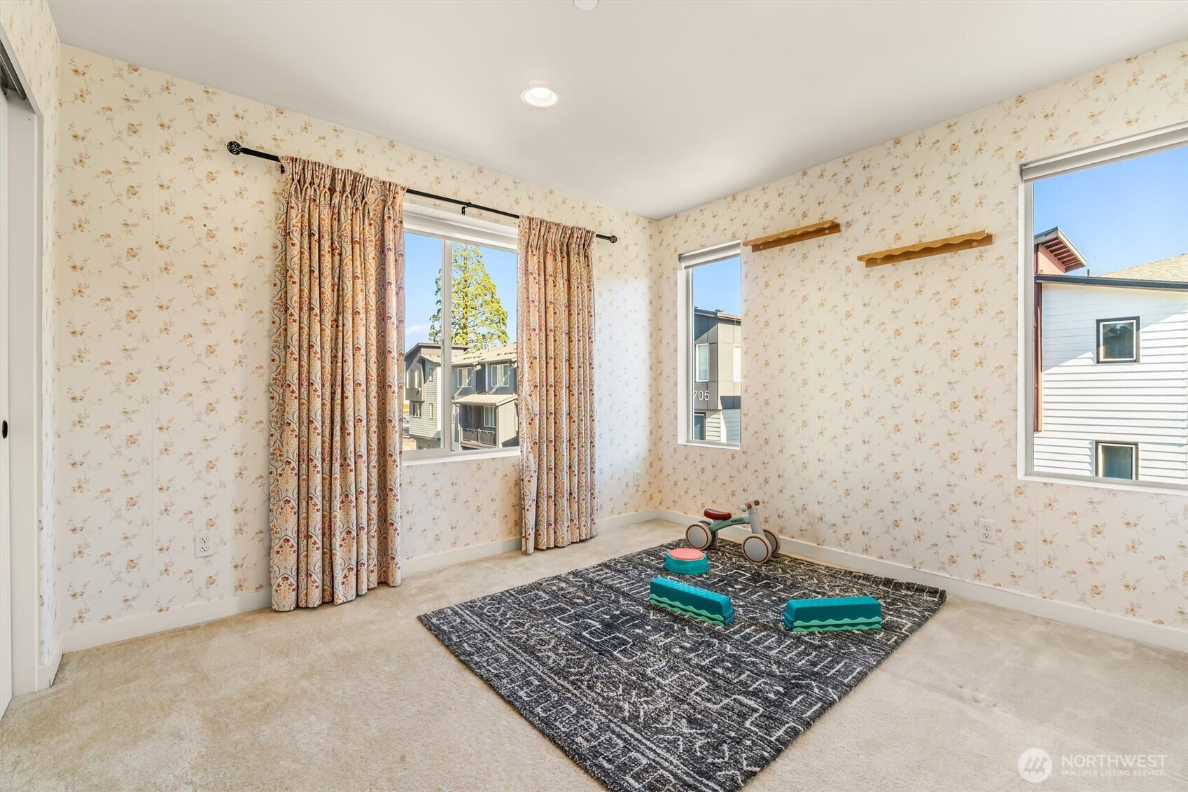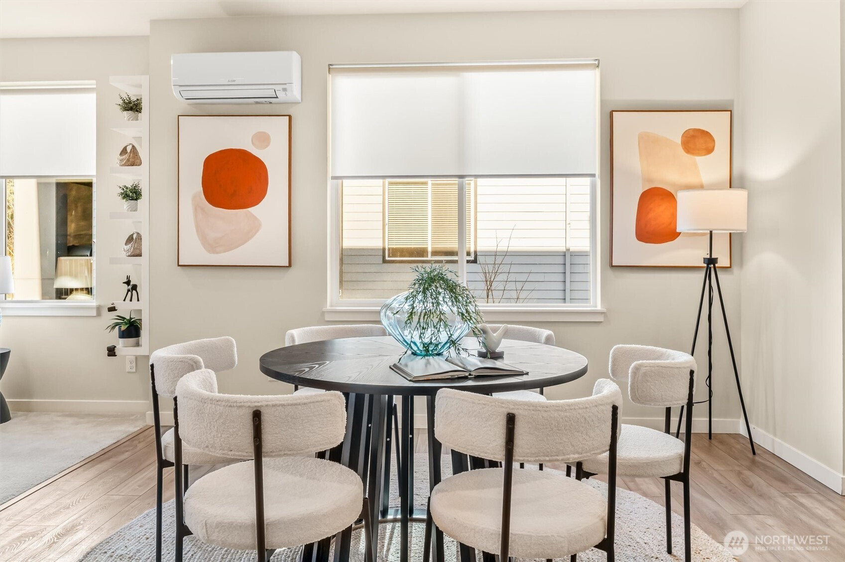 Don’t miss this stunning 4-bedroom, 3.25-bath townhome in sought-after Urbane Village II, right in the heart of Bothell. Spacious 2,249 sq ft, this light-filled East West facing home offers a highly functional layout with thoughtful upgrades throughout. The main level features an open-concept living and dining area, perfect for entertaining, with engineered hardwood floors, a cozy gas fireplace, and abundant natural light. The chef’s kitchen boasts beautiful sage green cabinetry, upgraded quartz counters, stainless steel appliances, an oversized island with ample storage. Step out to the covered deck ideal for year-round entertaining with privacy overseeing GREENBELT. A guest bedroom on the lower level includes an attached ¾ bath, making it perfect for visitors or a private home office. Upstairs, you’ll find two additional spacious bedrooms, a laundry area, and a luxurious primary suite featuring vaulted ceilings, a spa-inspired bath & a custom walk-in closet by California Closets. Highlights include custom desk/work area Ring doorbell, Wi-Fi–enabled garage door opener & front door lock, plus an energy-efficient Mini split A/C system. In ceiling surround sound wiring. EV car charger. POE for wifi on each level. 2-car garage & extra storage. Mins from Bothell Landing, UW Bothell, parks, dining, & 405—perfect blend of modern living and unbeatable location. No rental cap. Top rated NSD schools Shelton View Elementary. Low Hoa. Fee simple townhome you own the land. Welcome Home.