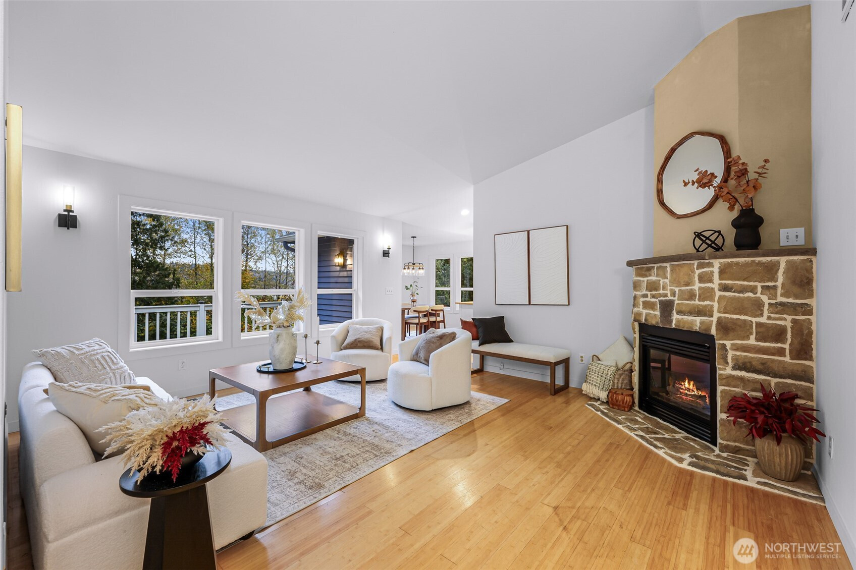 (503) 893-8874Exceptional property located on a private lot on a ridge line, offering stunning views overlooking the Snoqualmie Valley & Cascade Mts. This home is situated directly on a greenbelt in a quiet cul-de-sac, providing both privacy & tranquility. The residence features a primary bedroom conveniently located on the main floor, along w/ 3 additional large bedrooms & 2 3/4 baths. For added functionality, the home includes a dedicated office space & a media room complete w/ snack bar, perfect for entertainment. Additional amenities include 2 cozy fireplaces, beautiful hardwood floors, & vaulted ceilings. The property also boasts 2 huge decks, a fire pit, & a 2-car garage equipped w/ a built-in workbench. The home has been pre-inspected.