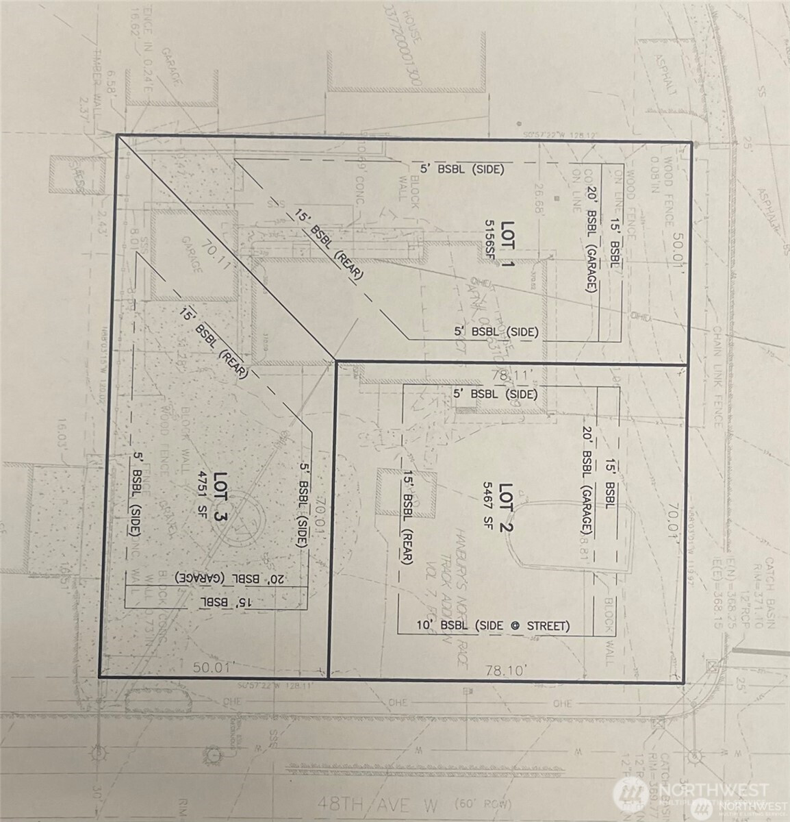Large Property allows for 3 Building Lots, each with two residences under new Mountlake Terrace Ordinance. Lot has been surveyed, and a Geotechnical Evaluation is available. Two preliminary designs are also available showing three building parcel configurations. Mountlake Terrace passed the new design ordinances this summer with a strong desire to expand building options. Existing House on property is a 4 Bedroom, 2 Bath 1,866 Sq Ft., which could be revitalized into a Rental Property.