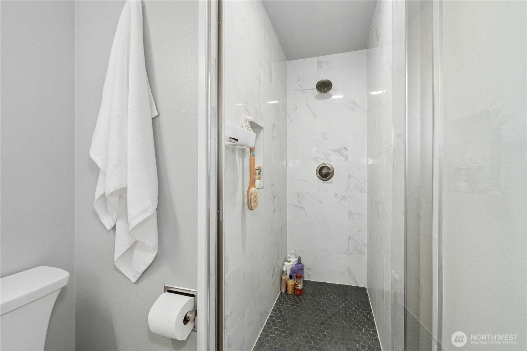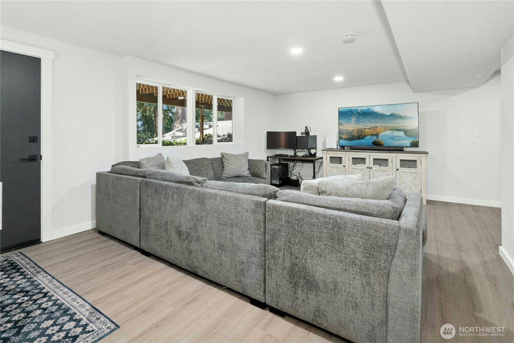 Beautifully updated daylight rambler with high-end finishes throughout! Enjoy over 2,400 sq ft on two levels, featuring a newer kitchen and baths with custom rustic cherry cabinets by Chesky Woodworks. The living room is filled with natural light thanks to two 8’ sliders that open to a spacious Trex deck and a lovely paver patio with privacy fencing—perfect for entertaining. The main floor offers three bedrooms, including a primary suite with a large tile shower. Lower level includes a generous rec room with fireplace, additional bedroom, office, storage/hobby room, and utility room. The two-car garage features a rear glass door that opens to the patio for seamless indoor/outdoor living. Private, level backyard with established landscaping. New roof, new furnace with UV filter, new lower-level flooring, EV wired, and new driveway. Close to shopping, restaurants, parks, trails, schools, and offers easy access to highways and freeways. Septic has been inspected and updated recently.