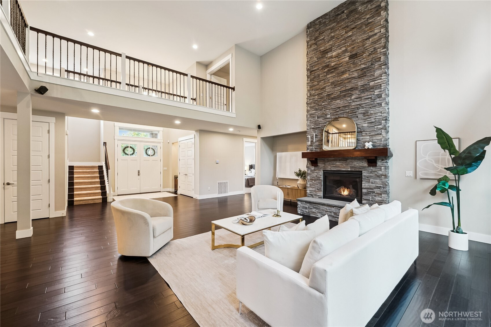 Presenting Aspen Hills coveted neighborhood *5 BR*Den*bonus room*HUGE 3 car garage + an additional 2 car garage*Hardwood floors throughout most of the home*Heat Pump*Covered patio w/heaters & fireplace*Floor to ceiling stone fireplace in your great room w/17" ceilings & a wall of windows bringing the outdoors in*Chef's kitchen s/dbl ovens, gas cooktop w/hood, oversized island/eating bar*butler pantry w/bev refer, HUGE walk-in pantry & spacious dining w/wainscotting*main floor guest suite & den w/closet*dreamy primary suite with vaulted ceilings, spa like bath & HUGE walk-in closet! Oversized bonus/loft, 3 additional spacious, full bath & laundry complete the 2nd floor*RV parking*Solid core doors*Whole house generator*ALL appliances included