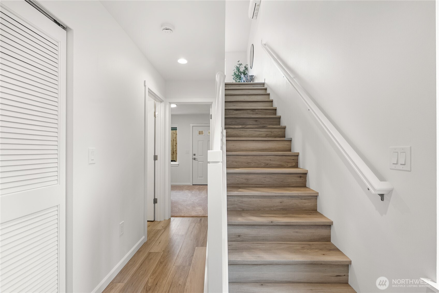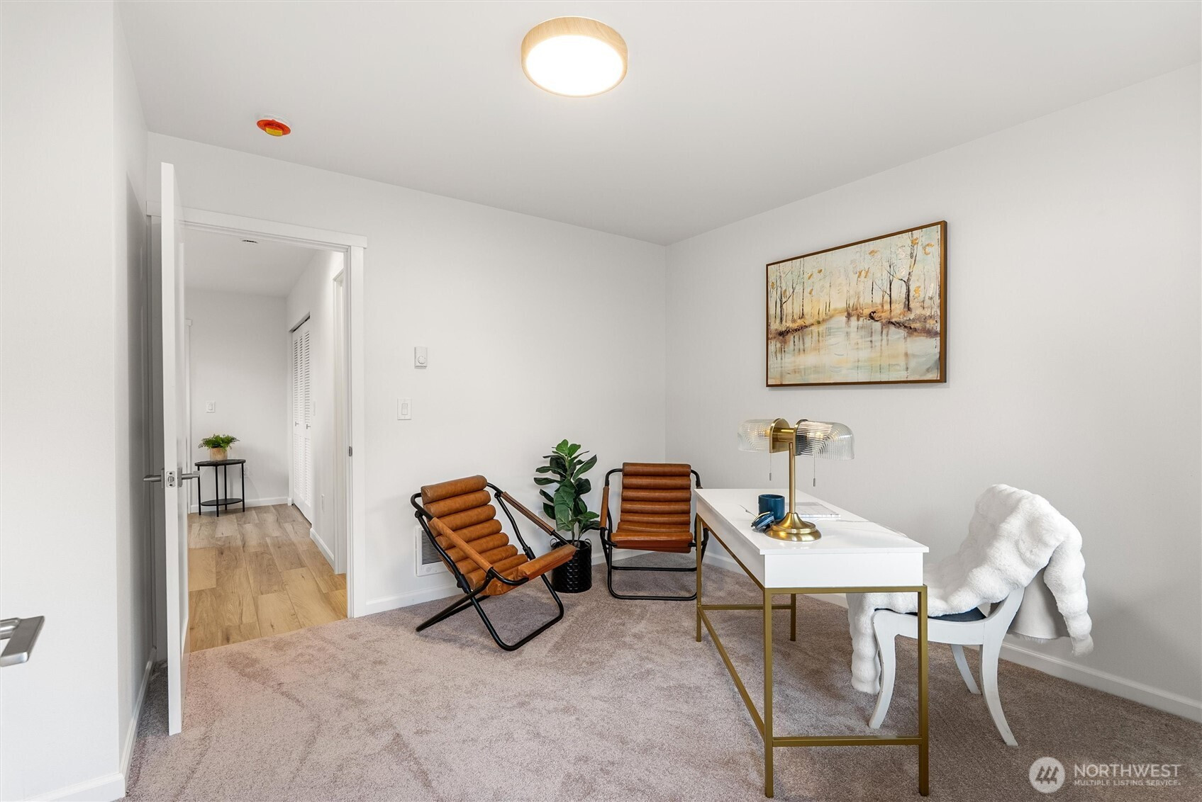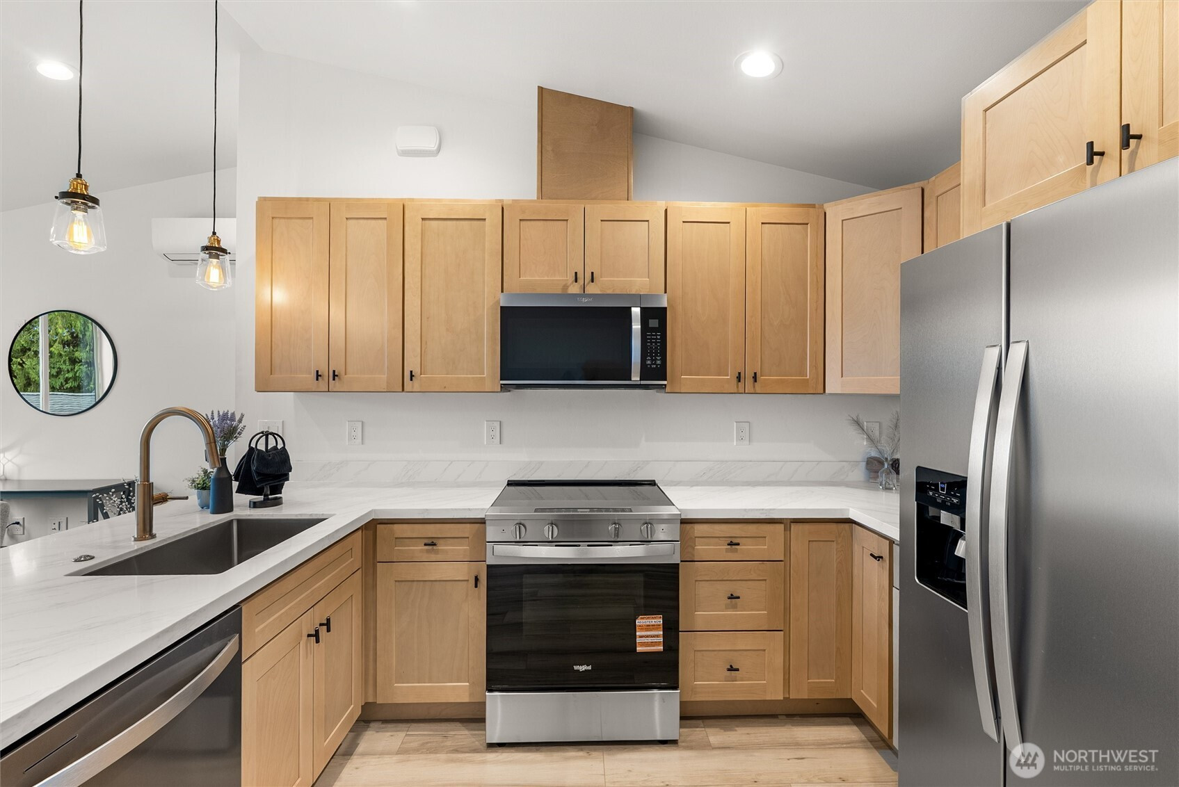 Brand-new construction condo loaded with thoughtful upgrades! This just under 1,000 sq ft home offers 3 bedrooms and 2 full baths, plus a rare oversized single-car garage (over 20’ deep and 15’ wide) so you can comfortably park and still open your doors. Includes a 220 EV outlet and direct access into the home—something most condos don’t offer. Enjoy added privacy with your own patio, screened by a new 8-ft fence, and enhanced soundproofing with upgraded double-wall construction. Interior features include quartz counters in kitchen and baths, upgraded lighting and extra storage including under-stair space. All kitchen cabinets are solid wood and soft close. All appliances are included, washer, dryer, refrigerator, range, microwave, dishwasher, disposal, and garage door opener. Nestled in a peaceful neighborhood and with incredibly low HOA dues under $10/month.