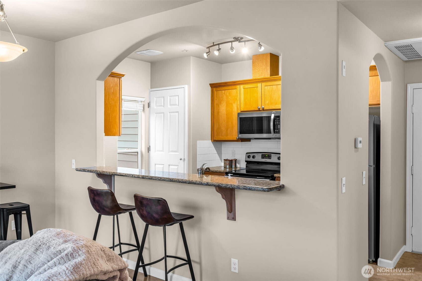 Clean and bright condo with view of the Everett waterfront! Desirable top floor, end unit with secure, assigned underground parking and elevator. Secure front entrance. Spacious interior features living room with gas fireplace, dining space and kitchen upgraded with slab granite counters and Stainless Appliances. All appliances including washer/dryer stay! Laminate flooring and freshly painted. Located near historic downtown Everett within walking distance to shopping, parks and more!
