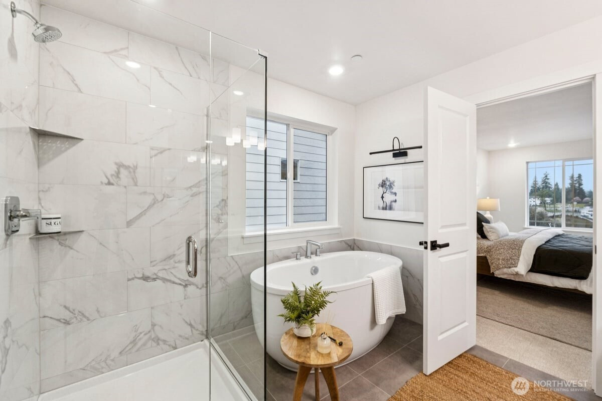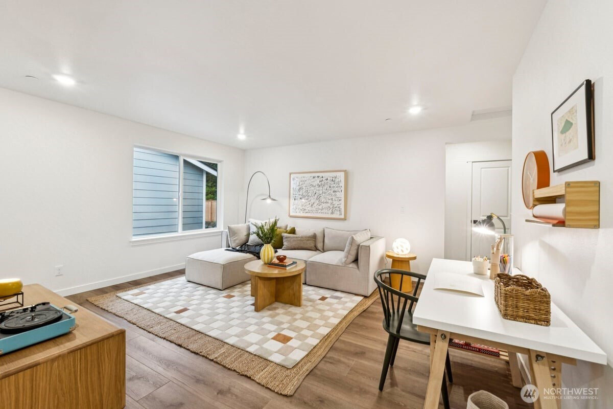 (503) 893-8874Discover the perfect balance of style, space & comfort in this 2746sf home. Spacious open concept on main floor invites gathering & entertaining, featuring great room w/cozy fireplace & chef-inspired gourmet kitchen w/quartz counters & backsplash & stainless steel appliances. The large main floor has a large bedroom & bath for guests or convenient space for work. Enjoy the privacy and separation this plan provides, ideal for households that value personal space or multigenerational living. Oversized Primary Bathroom with ensuite and huge walk-in closet. Built for comfort & efficiency w/luxury vinyl plank flooring, Energy Star Certification, heat pump w/ A/C, LED lighting, EV charger & many other upgraded finishes. Fully fenced & landscaped yard w/covered patio. Northshore schools & minutes to downtown Bothell.