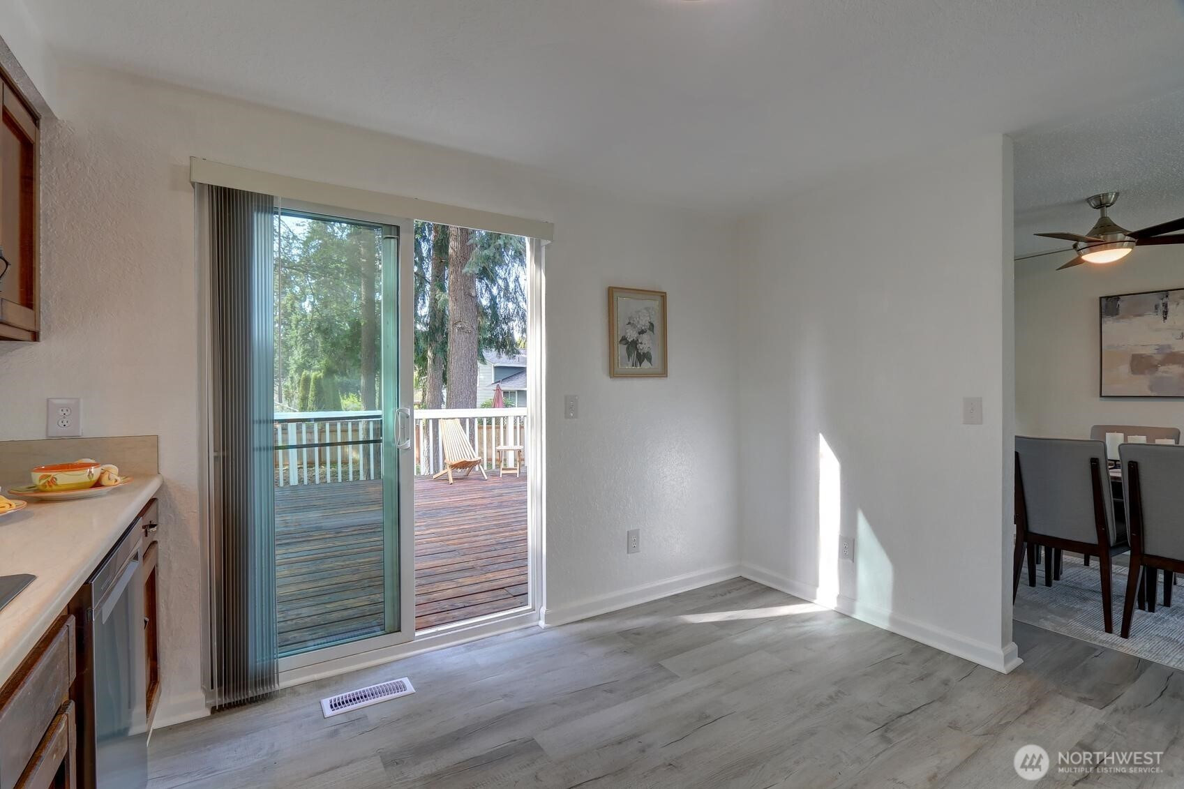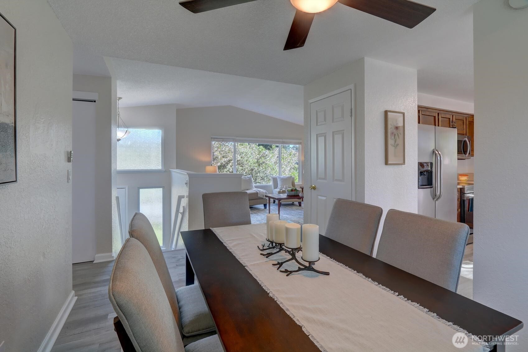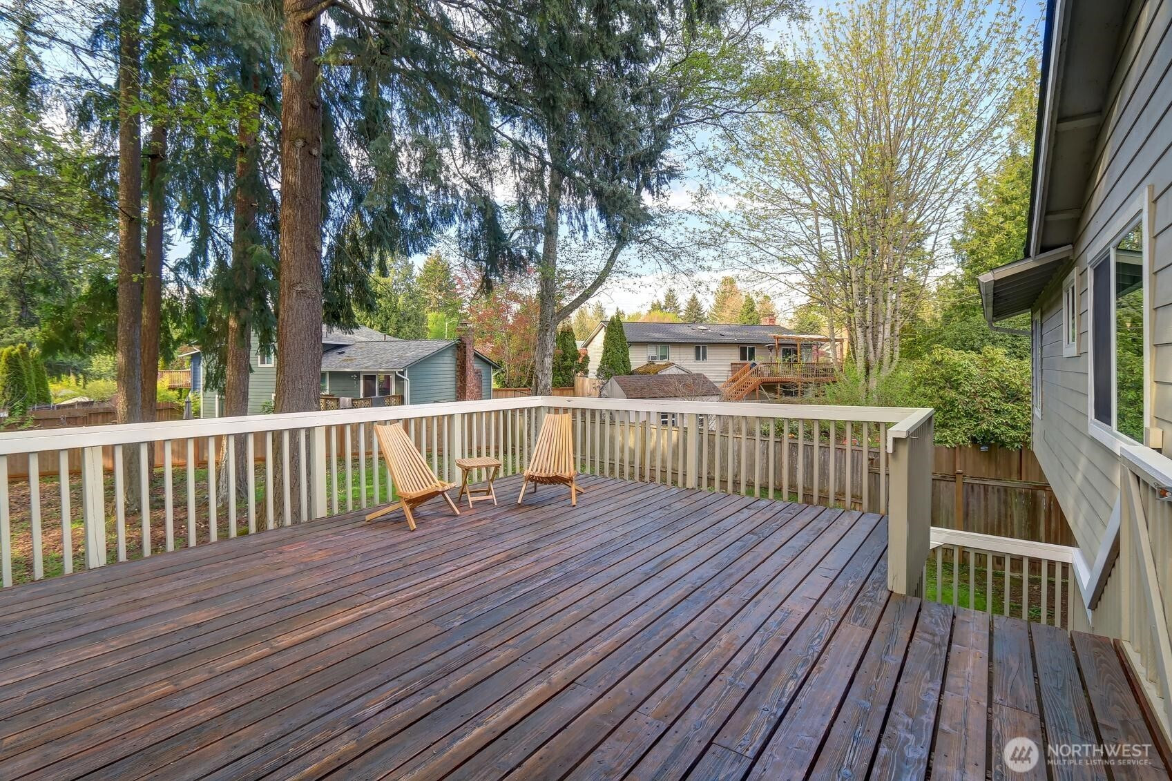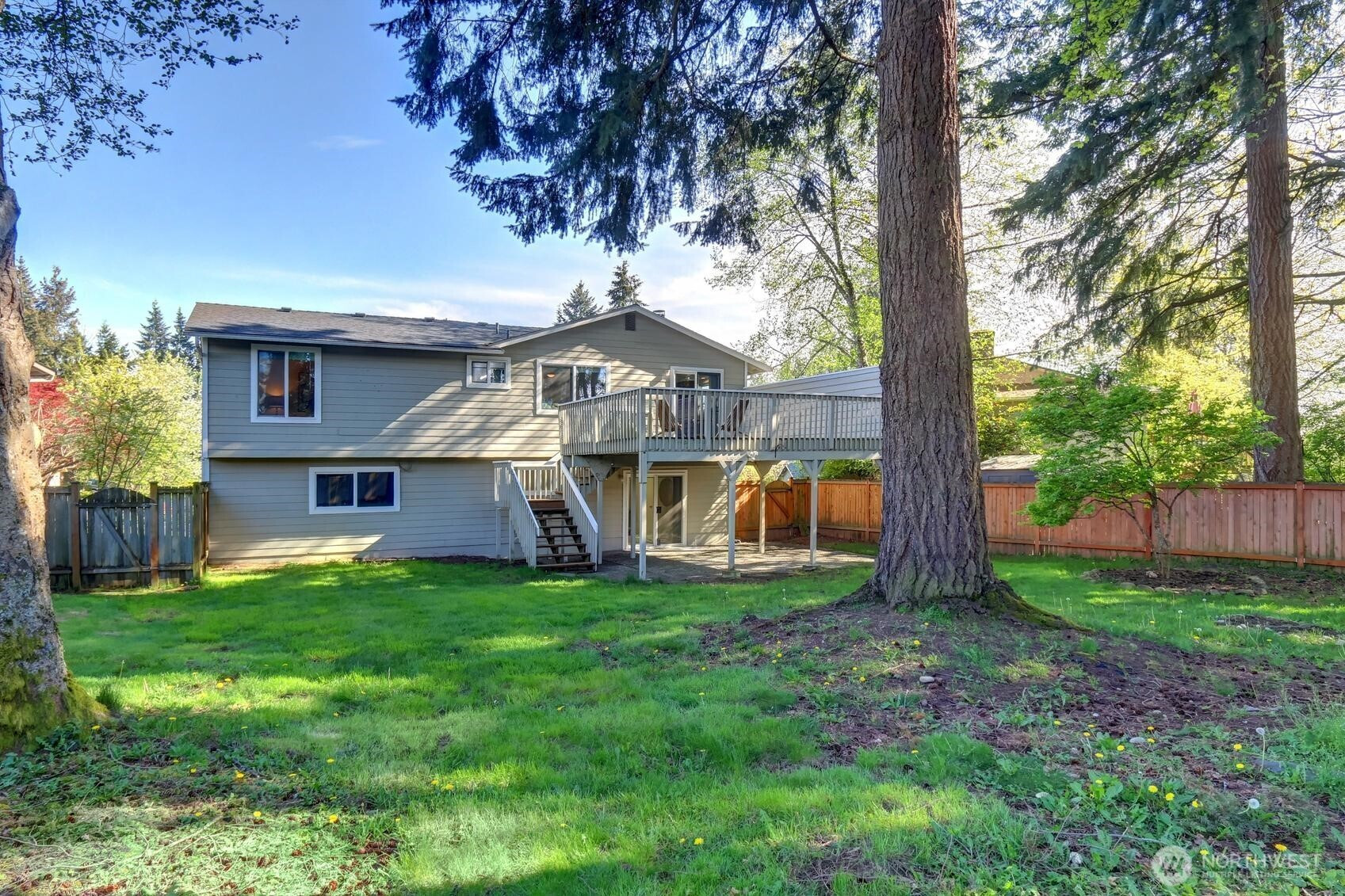 Light-filled and beautifully updated three bedroom mid-entry home nestled at the end of a quiet cul-de-sac. Built in 1978 and completely remodeled inside, this home shines with fresh paint and new laminate hardwood flooring throughout. The spacious kitchen features stainless steel appliances, built-in microwave, double sink, and ample room for an eating area or future center island. Formal dining room flows seamlessly into the bright living room with vaulted ceiling and cozy wood-burning fireplace. Downstairs rec room could be converted to fourth bedroom if desired. And don’t miss the big, multi purpose storage room down here. Enjoy outdoor living on the expansive 17 x 19 ft deck with full railing and staircase, leading to a large, fully fenced backyard – perfect for pets, gardening, or entertaining. The yard is a standout feature with mature evergreens and plenty of space to make it your own. Oversize garage offers incredible functionality with a utility sink, abundant shelving, and a hidden storage room. A rare combination of space, updates and privacy in a desirable cul-de-sac setting - this home is move-in ready and a must see!