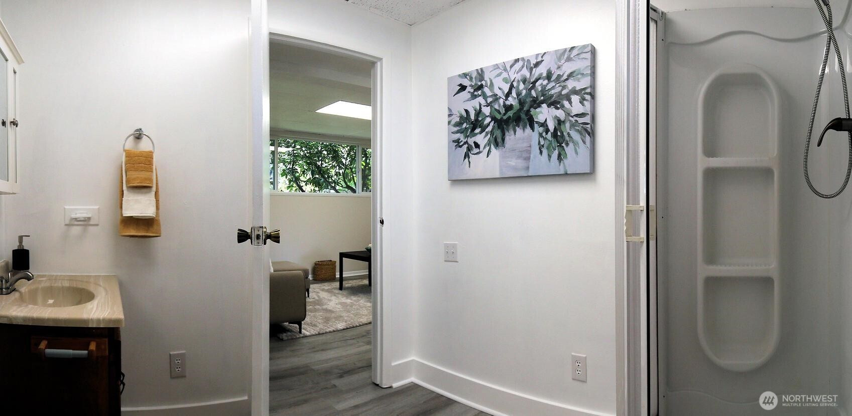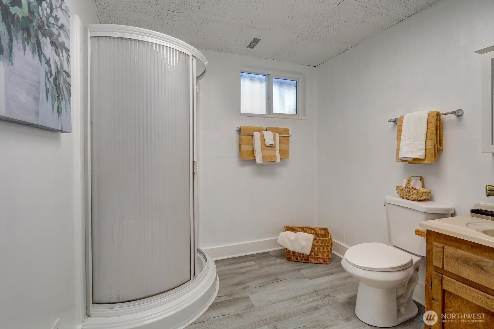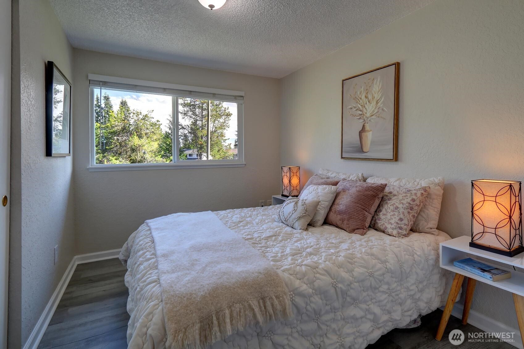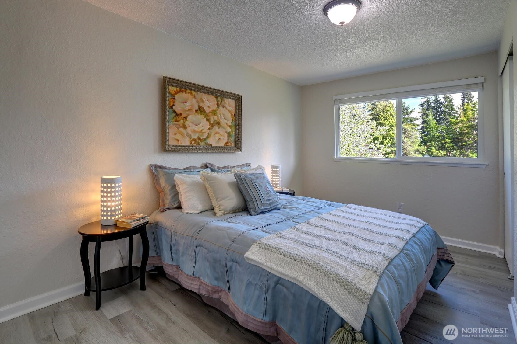 Light-filled and beautifully updated three bedroom mid-entry home nestled at the end of a quiet cul-de-sac. Built in 1978 and completely remodeled inside, this home shines with fresh paint and new laminate hardwood flooring throughout. The spacious kitchen features stainless steel appliances, built-in microwave, double sink, and ample room for an eating area or future center island. Formal dining room flows seamlessly into the bright living room with vaulted ceiling and cozy wood-burning fireplace. Downstairs rec room could be converted to fourth bedroom if desired. And don’t miss the big, multi purpose storage room down here. Enjoy outdoor living on the expansive 17 x 19 ft deck with full railing and staircase, leading to a large, fully fenced backyard – perfect for pets, gardening, or entertaining. The yard is a standout feature with mature evergreens and plenty of space to make it your own. Oversize garage offers incredible functionality with a utility sink, abundant shelving, and a hidden storage room. A rare combination of space, updates and privacy in a desirable cul-de-sac setting - this home is move-in ready and a must see!