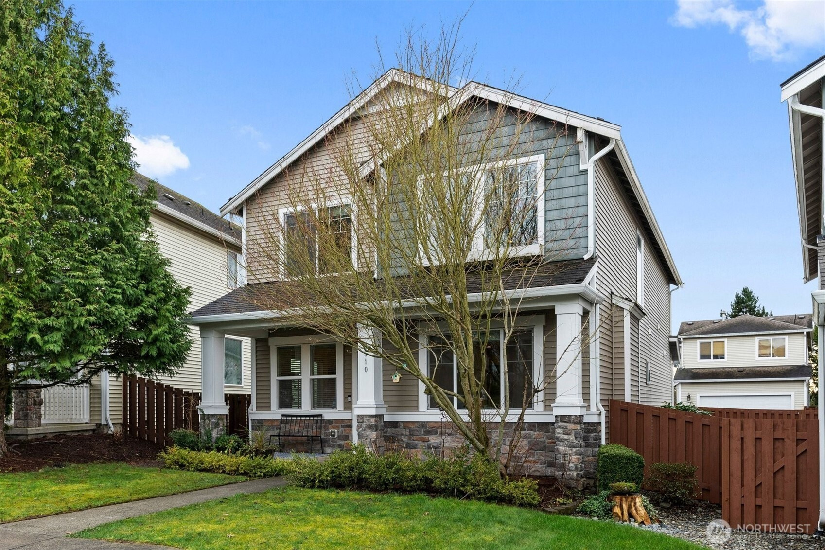 Beautifully maintained Crosswater home near the community playground. A light-filled vaulted entry and hardwood floors throughout the main level lead to a stunning remodeled kitchen that opens to comfortable living spaces. The living and dining area features a cozy gas fireplace. Upstairs offers 3 bedrooms including a spacious primary suite with a 5-piece bath, walk-in closet, and a walk-in laundry room. Enjoy a covered patio and fully fenced backyard with great usable space. Easy access to Hwy 9 and I-5.